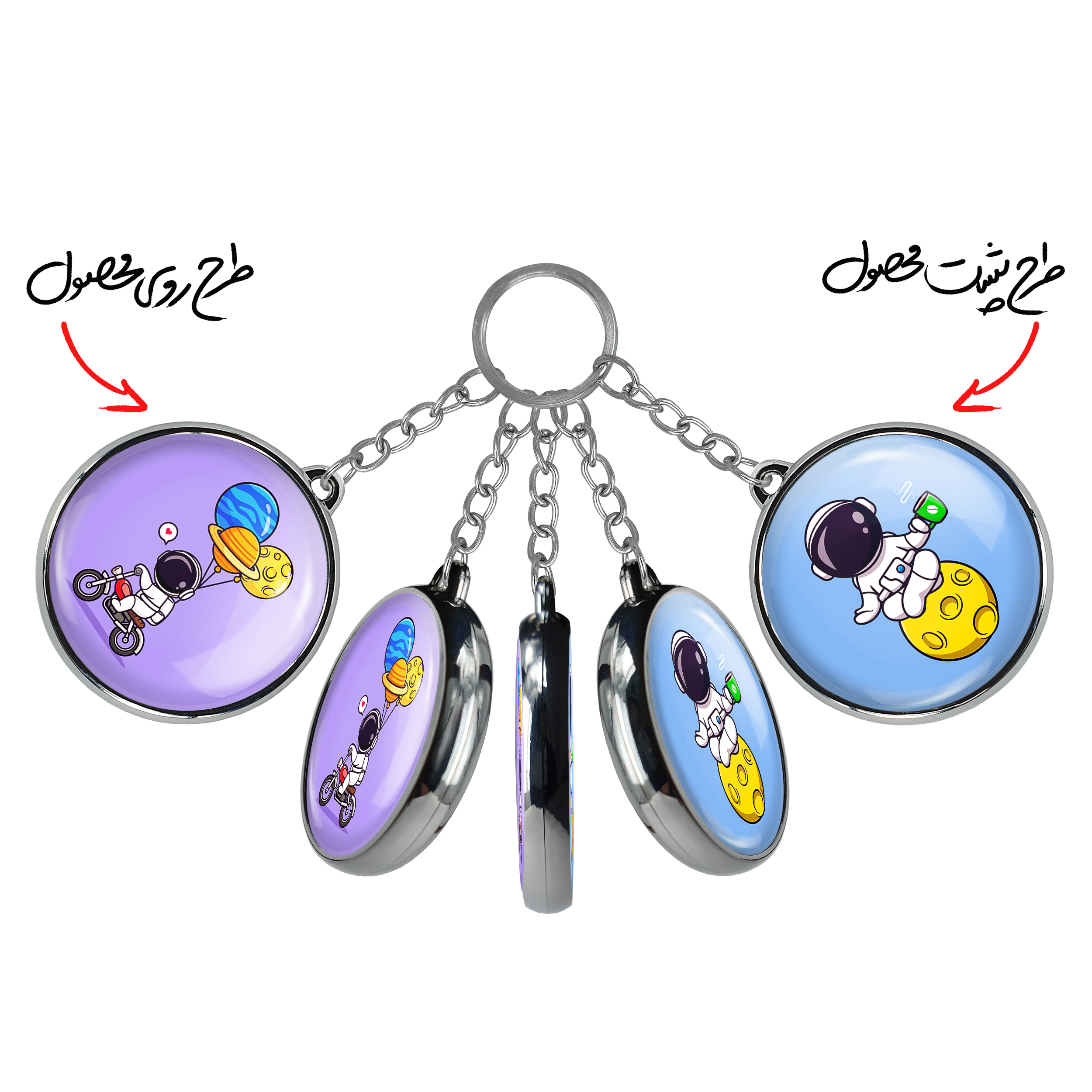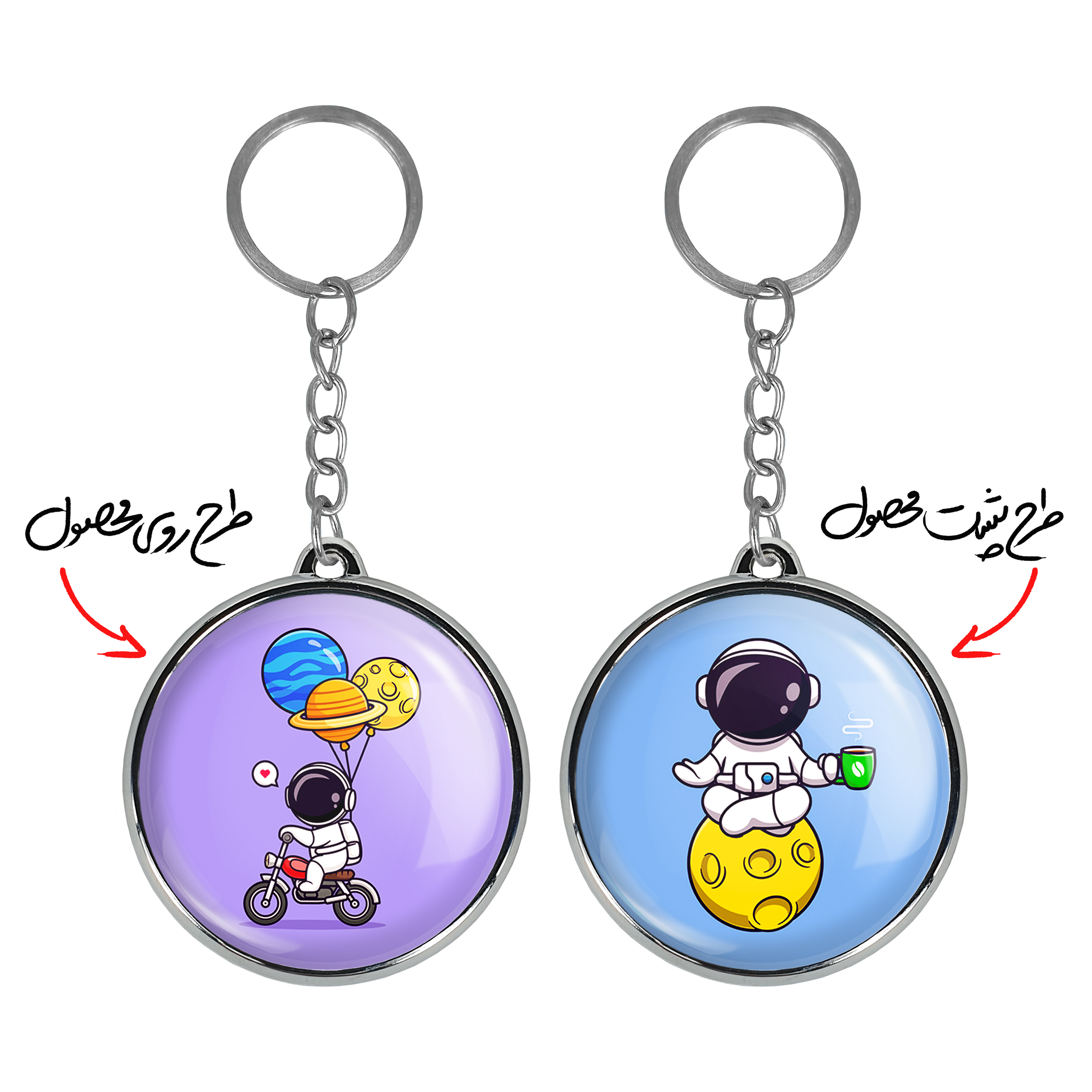 جاکلیدی دوطرفه فضانوردخندالو محصولی کاربردی و جدید است که در هر دو سمت محصول، تصویری متفاوت اما از یک موضوع چاپ شده و تفاوت اصلی آن با جاکلیدی های یک طرفه در همین است که هر دو سمت پشت و روی جاکلیدی، طرحی دیدنی و جذاب دارد.