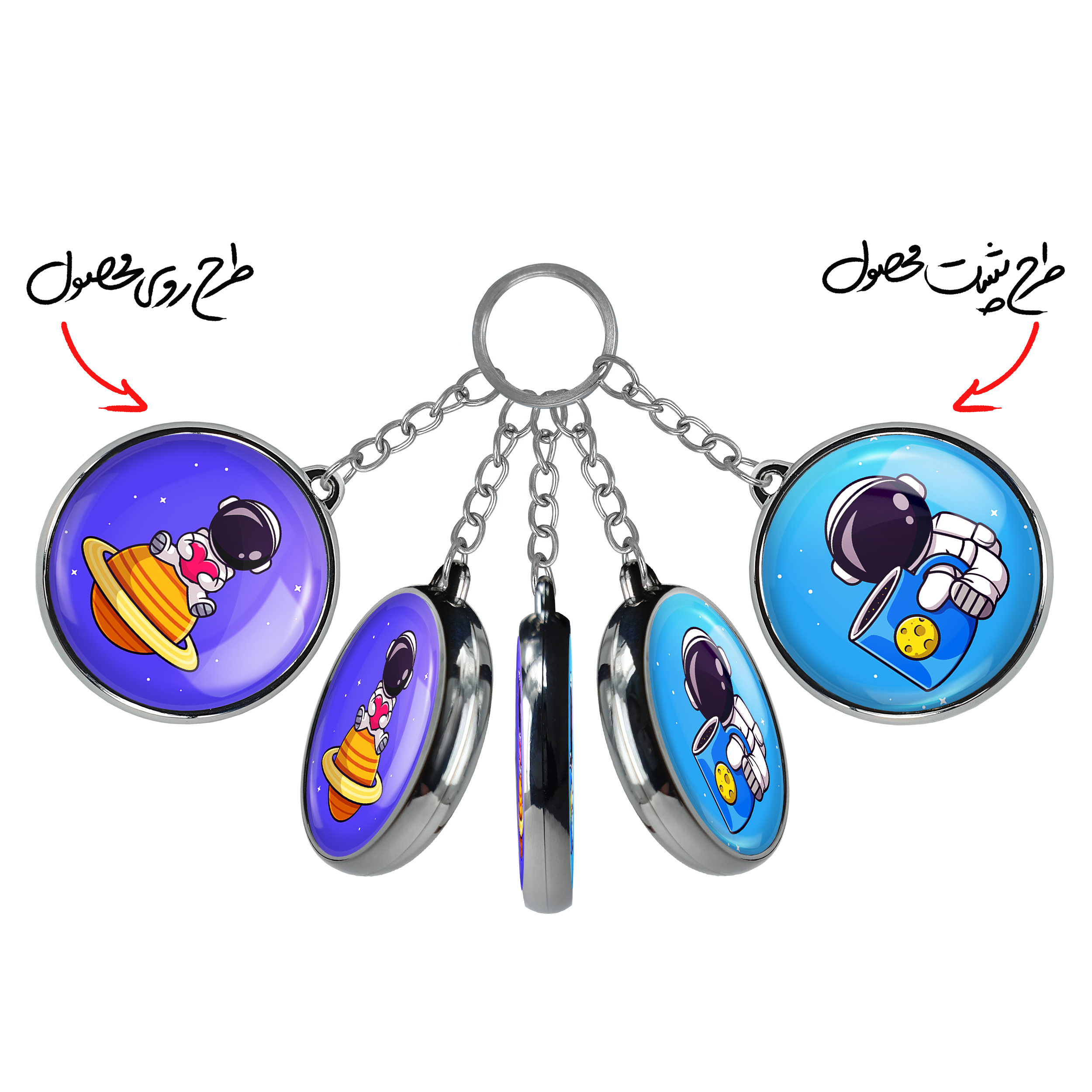 جاکلیدی دوطرفه فضانوردخندالو محصولی کاربردی و جدید است که در هر دو سمت محصول، تصویری متفاوت اما از یک موضوع چاپ شده و تفاوت اصلی آن با جاکلیدی های یک طرفه در همین است که هر دو سمت پشت و روی جاکلیدی، طرحی دیدنی و جذاب دارد. همچنین رینگ بکار برده شده برای دور طرح ها آبکاری کروم درجه یک و رنگ ثابت است و برخلاف سایر محصولات مشابه، از رنگ های متفرقه و یا سفید استفاده نشده، که این مهم، زیبایی محصول نهایی را چند برابر کرده است. جاکلیدی های دوطرفه فضانوردبا استفاده از روکش سلفون براق ضدخش تولید شده که خاصیت ضدخش بودن آن عمر مفید استفاده از جاکلیدی ها را افزایش میدهد. چاپ جاکلیدی ها با دستگاه های استاندارد و با بهترین سطح کیفیت صورت گرفته و طرح با شفافیتی مثال زدنی و با سلفون چسبی تولید شده است که باعث شده محصول نهایی بدون شکست نور دیده شود. همچنین بسته بندی جذاب و مینیمال جاکلیدی دوطرفه فضانورد، آنها را محصولی مناسب هدیه کرده است. زنجیر و حلقه بکار برده شده در جاکلیدی خندالو از نوع حلقه ضخیم و محکم بوده و حین استفاده آسیب نمی بیند.