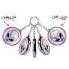جاکلیدی دوطرفه فضایی خندالو محصولی کاربردی و جدید است که در هر دو سمت محصول، تصویری متفاوت اما از یک موضوع چاپ شده و تفاوت اصلی آن با جاکلیدی های یک طرفه در همین است که هر دو سمت پشت و روی جاکلیدی، طرحی دیدنی و جذاب دارد. همچنین رینگ بکار برده شده برای دور طرح ها آبکاری کروم درجه یک و رنگ ثابت است و برخلاف سایر محصولات مشابه، از رنگ های متفرقه و یا سفید استفاده نشده، که این مهم، زیبایی محصول نهایی را چند برابر کرده است. جاکلیدی های دوطرفه فضایی با استفاده از روکش سلفون براق ضدخش تولید شده که خاصیت ضدخش بودن آن عمر مفید استفاده از جاکلیدی ها را افزایش میدهد. چاپ جاکلیدی ها با دستگاه های استاندارد و با بهترین سطح کیفیت صورت گرفته و طرح با شفافیتی مثال زدنی و با سلفون چسبی تولید شده است که باعث شده محصول نهایی بدون شکست نور دیده شود. همچنین بسته بندی جذاب و مینیمال جاکلیدی دوطرفه فضایی ، آنها را محصولی مناسب هدیه کرده است. زنجیر و حلقه بکار برده شده در جاکلیدی خندالو از نوع حلقه ضخیم و محکم بوده و حین استفاده آسیب نمی بیند.