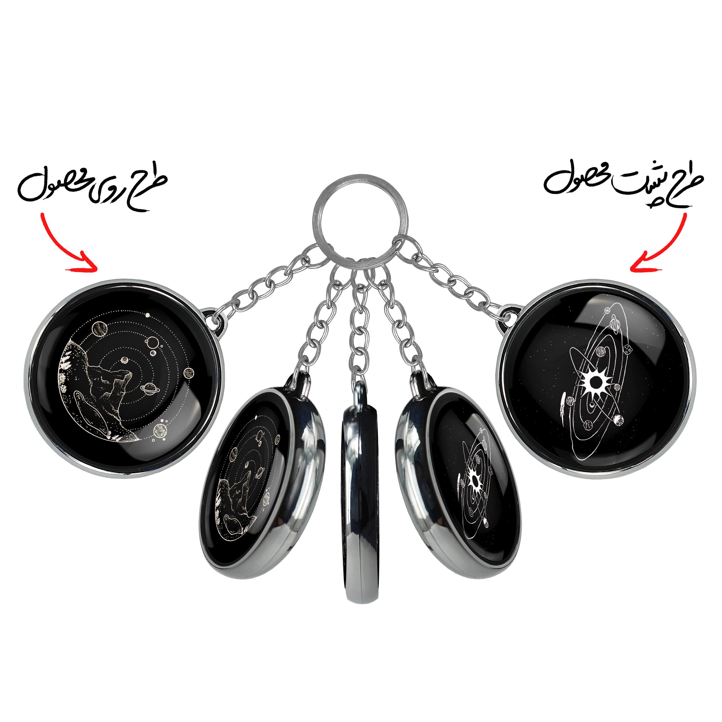 جاکلیدی دوطرفه فضاییخندالو محصولی کاربردی و جدید است که در هر دو سمت محصول، تصویری متفاوت اما از یک موضوع چاپ شده و تفاوت اصلی آن با جاکلیدی های یک طرفه در همین است که هر دو سمت پشت و روی جاکلیدی، طرحی دیدنی و جذاب دارد.