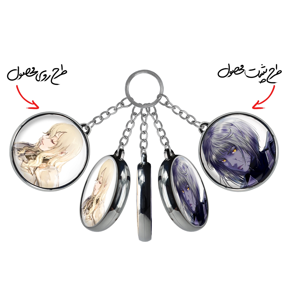 جاکلیدی دوطرفه فلورا انیمه کلیمور خندالو محصولی کاربردی و جدید است که در هر دو سمت محصول، تصویری متفاوت اما از یک موضوع چاپ شده و تفاوت اصلی آن با جاکلیدی های یک طرفه در همین است که هر دو سمت پشت و روی جاکلیدی، طرحی دیدنی و جذاب دارد. همچنین رینگ بکار برده شده برای دور طرح ها آبکاری کروم درجه یک و رنگ ثابت است و برخلاف سایر محصولات مشابه، از رنگ های متفرقه و یا سفید استفاده نشده، که این مهم، زیبایی محصول نهایی را چند برابر کرده است. جاکلیدی های دوطرفه فلورا انیمه کلیمور با استفاده از روکش سلفون براق ضدخش تولید شده که خاصیت ضدخش بودن آن عمر مفید استفاده از جاکلیدی ها را افزایش میدهد. چاپ جاکلیدی ها با دستگاه های استاندارد و با بهترین سطح کیفیت صورت گرفته و طرح با شفافیتی مثال زدنی و با سلفون چسبی تولید شده است که باعث شده محصول نهایی بدون شکست نور دیده شود. همچنین بسته بندی جذاب و مینیمال جاکلیدی دوطرفه فلورا انیمه کلیمور، آنها را محصولی مناسب هدیه کرده است. زنجیر و حلقه بکار برده شده در جاکلیدی خندالو از نوع حلقه ضخیم و محکم بوده و حین استفاده آسیب نمی بیند.