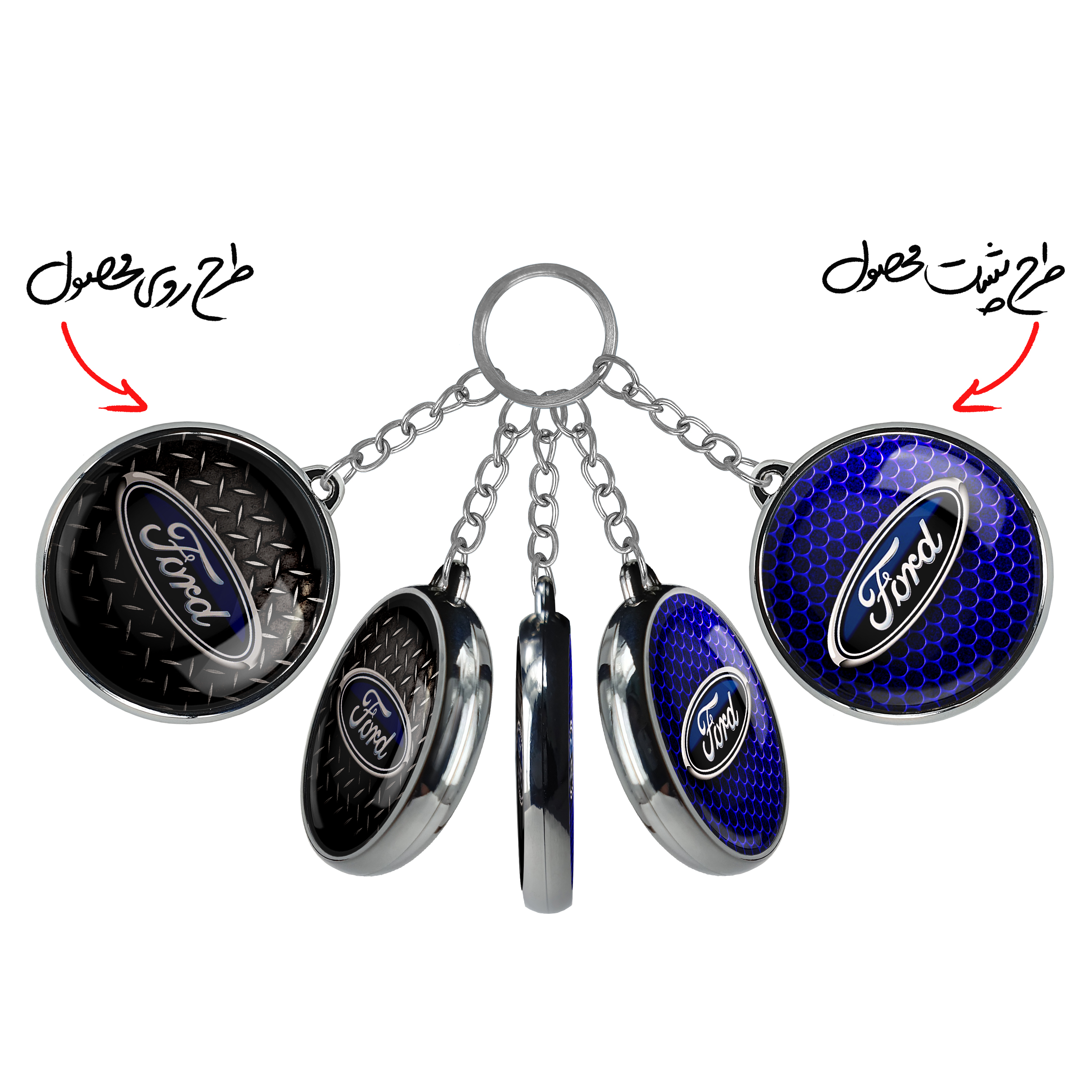 جاکلیدی دوطرفه فورد Fordخندالو محصولی کاربردی و جدید است که در هر دو سمت محصول، تصویری متفاوت اما از یک موضوع چاپ شده و تفاوت اصلی آن با جاکلیدی های یک طرفه در همین است که هر دو سمت پشت و روی جاکلیدی، طرحی دیدنی و جذاب دارد.