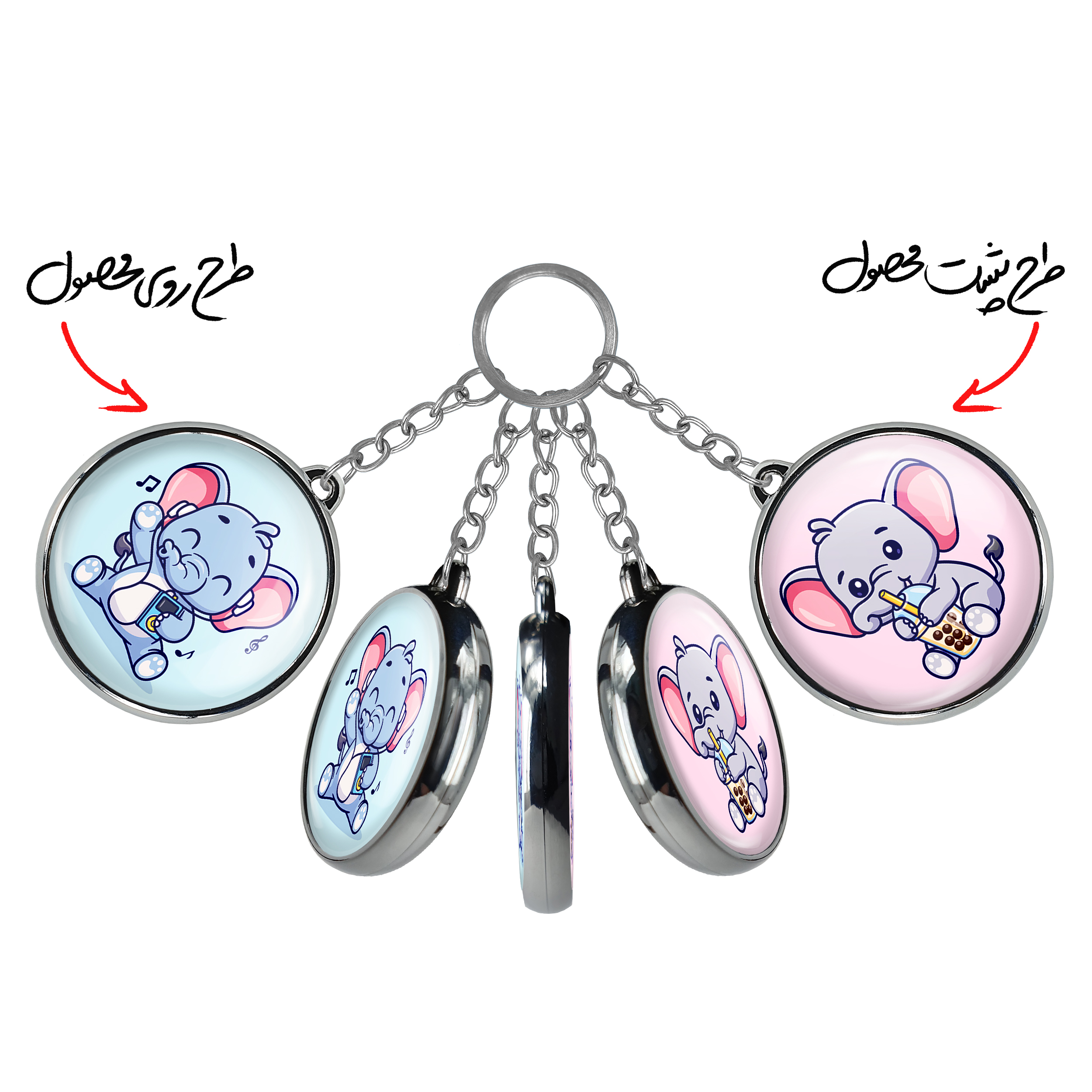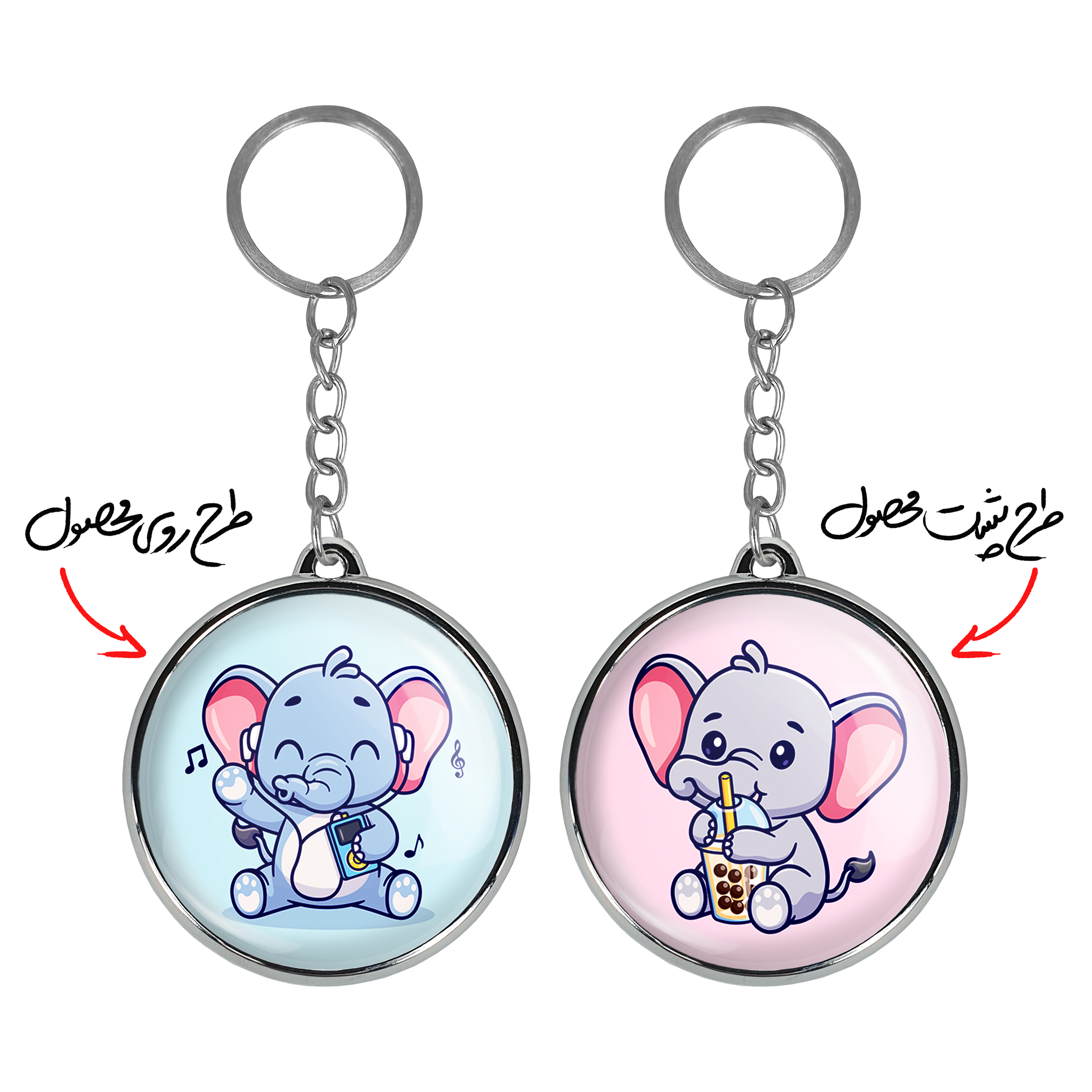 جاکلیدی دوطرفه فیل کوچولوخندالو محصولی کاربردی و جدید است که در هر دو سمت محصول، تصویری متفاوت اما از یک موضوع چاپ شده و تفاوت اصلی آن با جاکلیدی های یک طرفه در همین است که هر دو سمت پشت و روی جاکلیدی، طرحی دیدنی و جذاب دارد.