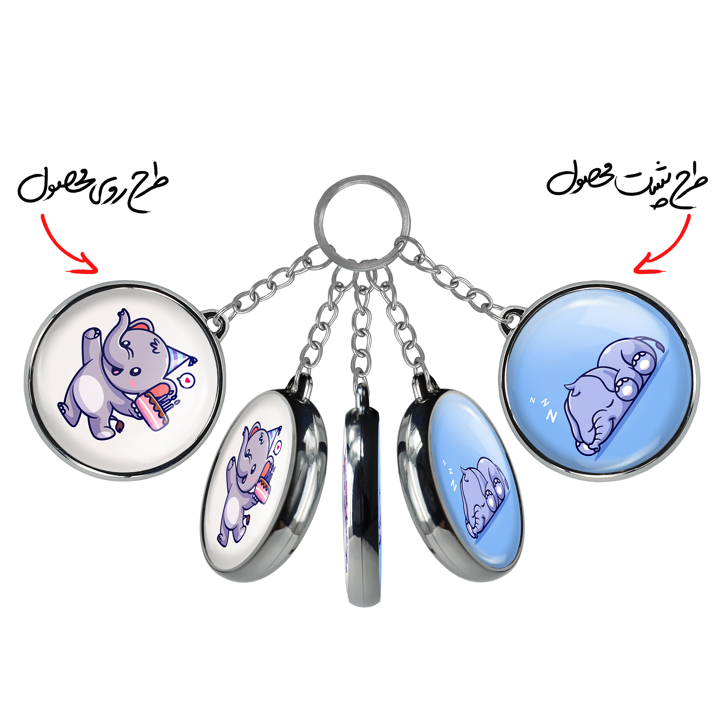 جاکلیدی دوطرفه فیل کوچولوخندالو محصولی کاربردی و جدید است که در هر دو سمت محصول، تصویری متفاوت اما از یک موضوع چاپ شده و تفاوت اصلی آن با جاکلیدی های یک طرفه در همین است که هر دو سمت پشت و روی جاکلیدی، طرحی دیدنی و جذاب دارد.