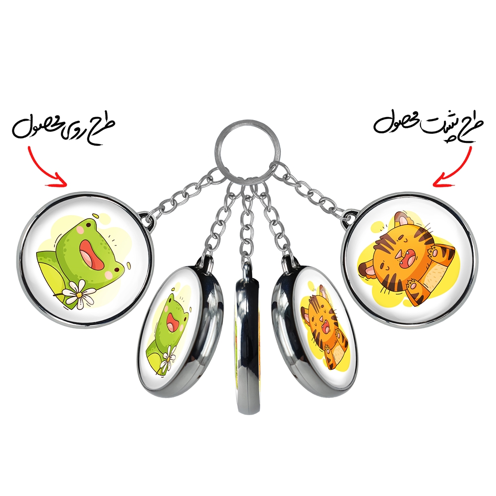 جاکلیدی دوطرفه قورباغه حیوانات بامزه خندالو محصولی کاربردی و جدید است که در هر دو سمت محصول، تصویری متفاوت اما از یک موضوع چاپ شده و تفاوت اصلی آن با جاکلیدی های یک طرفه در همین است که هر دو سمت پشت و روی جاکلیدی، طرحی دیدنی و جذاب دارد. همچنین رینگ بکار برده شده برای دور طرح ها آبکاری کروم درجه یک و رنگ ثابت است و برخلاف سایر محصولات مشابه، از رنگ های متفرقه و یا سفید استفاده نشده، که این مهم، زیبایی محصول نهایی را چند برابر کرده است. جاکلیدی های دوطرفه قورباغه حیوانات بامزه با استفاده از روکش سلفون براق ضدخش تولید شده که خاصیت ضدخش بودن آن عمر مفید استفاده از جاکلیدی ها را افزایش میدهد. چاپ جاکلیدی ها با دستگاه های استاندارد و با بهترین سطح کیفیت صورت گرفته و طرح با شفافیتی مثال زدنی و با سلفون چسبی تولید شده است که باعث شده محصول نهایی بدون شکست نور دیده شود. همچنین بسته بندی جذاب و مینیمال جاکلیدی دوطرفه قورباغه حیوانات بامزه، آنها را محصولی مناسب هدیه کرده است. زنجیر و حلقه بکار برده شده در جاکلیدی خندالو از نوع حلقه ضخیم و محکم بوده و حین استفاده آسیب نمی بیند.