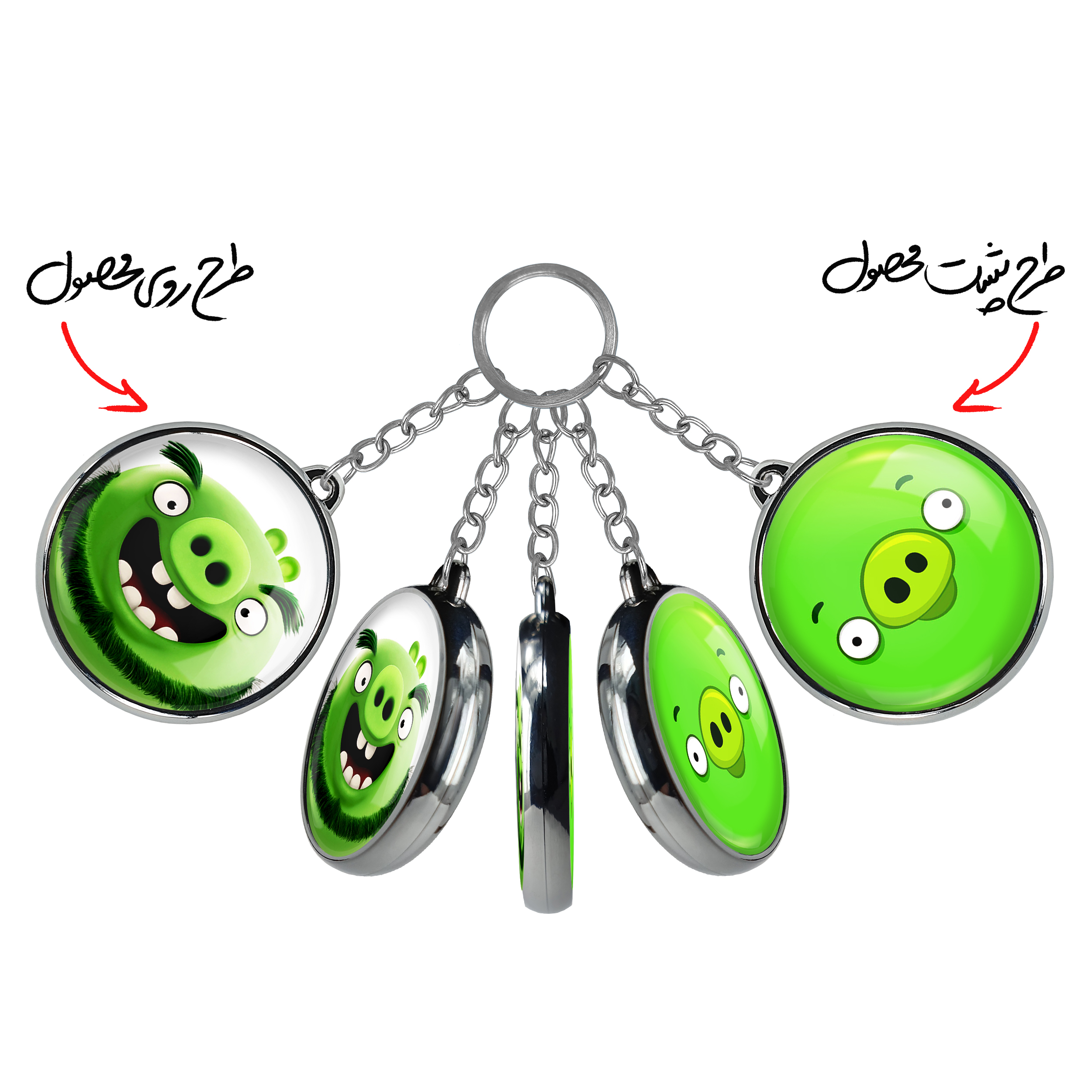 جاکلیدی دوطرفه لئونارد پرندگان خشمگین Angry Birds خندالو محصولی کاربردی و جدید است که در هر دو سمت محصول، تصویری متفاوت اما از یک موضوع چاپ شده و تفاوت اصلی آن با جاکلیدی های یک طرفه در همین است که هر دو سمت پشت و روی جاکلیدی، طرحی دیدنی و جذاب دارد. همچنین رینگ بکار برده شده برای دور طرح ها آبکاری کروم درجه یک و رنگ ثابت است و برخلاف سایر محصولات مشابه، از رنگ های متفرقه و یا سفید استفاده نشده، که این مهم، زیبایی محصول نهایی را چند برابر کرده است. جاکلیدی های دوطرفه لئونارد پرندگان خشمگین Angry Birds با استفاده از روکش سلفون براق ضدخش تولید شده که خاصیت ضدخش بودن آن عمر مفید استفاده از جاکلیدی ها را افزایش میدهد. چاپ جاکلیدی ها با دستگاه های استاندارد و با بهترین سطح کیفیت صورت گرفته و طرح با شفافیتی مثال زدنی و با سلفون چسبی تولید شده است که باعث شده محصول نهایی بدون شکست نور دیده شود. همچنین بسته بندی جذاب و مینیمال جاکلیدی دوطرفه لئونارد پرندگان خشمگین Angry Birds ، آنها را محصولی مناسب هدیه کرده است. زنجیر و حلقه بکار برده شده در جاکلیدی خندالو از نوع حلقه ضخیم و محکم بوده و حین استفاده آسیب نمی بیند.