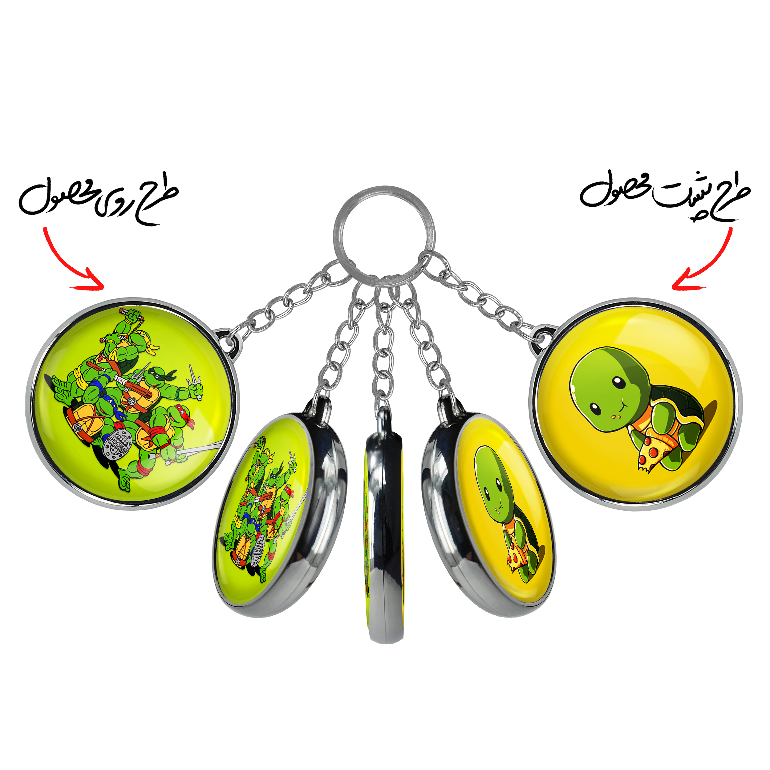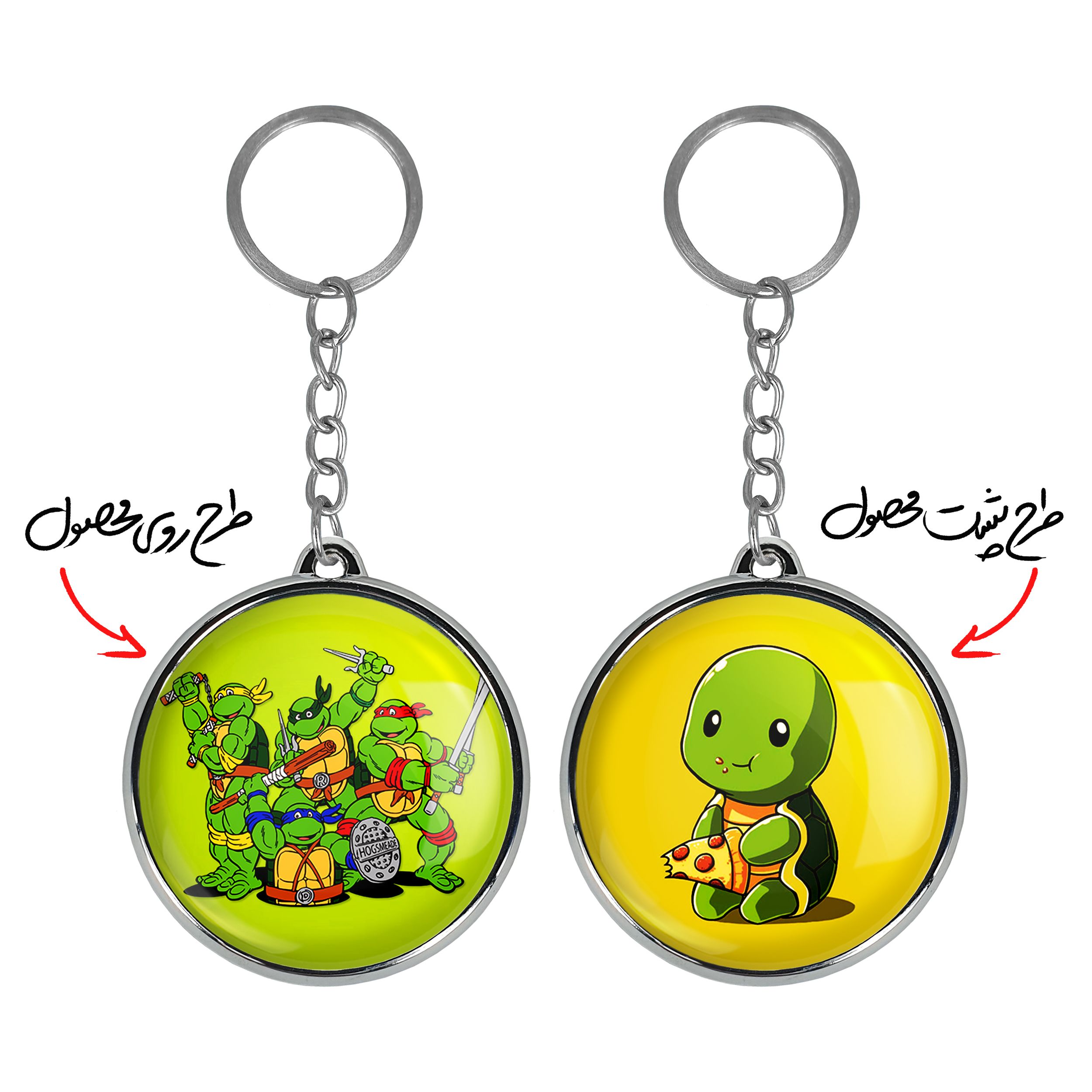 جاکلیدی دوطرفه لاکپشت های نینجا خندالو محصولی کاربردی و جدید است که در هر دو سمت محصول، تصویری متفاوت اما از یک موضوع چاپ شده و تفاوت اصلی آن با جاکلیدی های یک طرفه در همین است که هر دو سمت پشت و روی جاکلیدی، طرحی دیدنی و جذاب دارد.