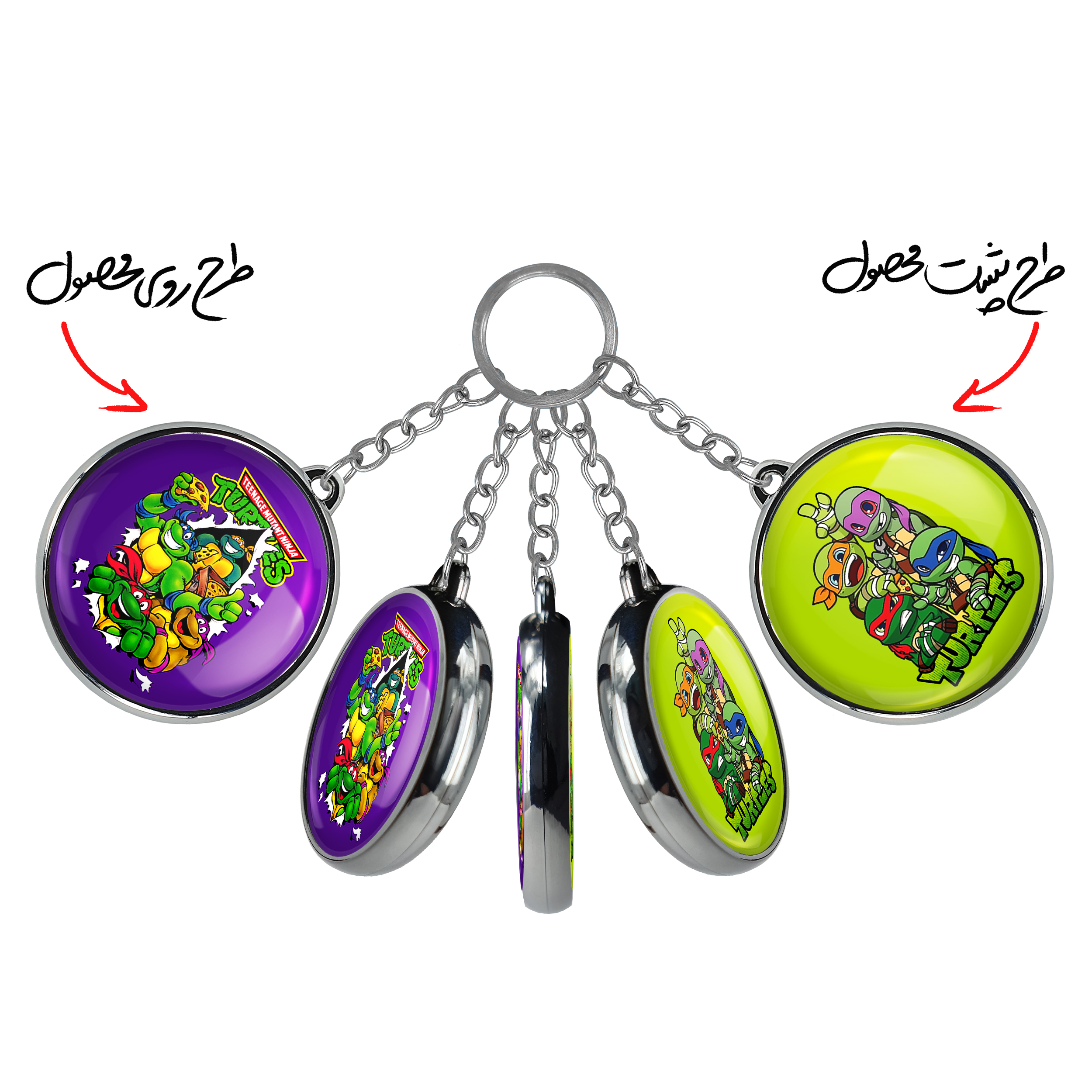 جاکلیدی دوطرفه لاکپشت های نینجا خندالو محصولی کاربردی و جدید است که در هر دو سمت محصول، تصویری متفاوت اما از یک موضوع چاپ شده و تفاوت اصلی آن با جاکلیدی های یک طرفه در همین است که هر دو سمت پشت و روی جاکلیدی، طرحی دیدنی و جذاب دارد.