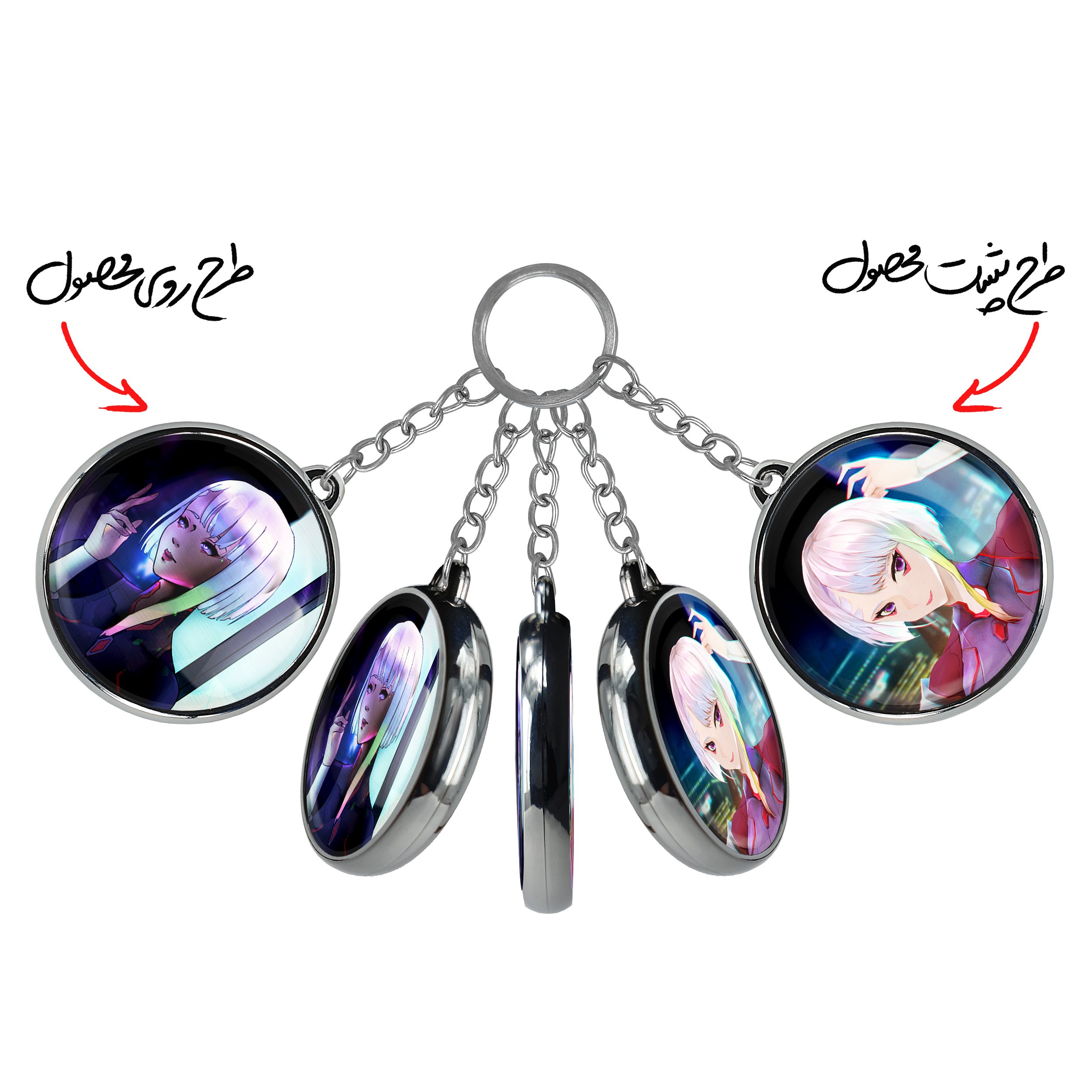جاکلیدی دوطرفه لوسی انیمه سایبرپانکخندالو محصولی کاربردی و جدید است که در هر دو سمت محصول، تصویری متفاوت اما از یک موضوع چاپ شده و تفاوت اصلی آن با جاکلیدی های یک طرفه در همین است که هر دو سمت پشت و روی جاکلیدی، طرحی دیدنی و جذاب دارد.