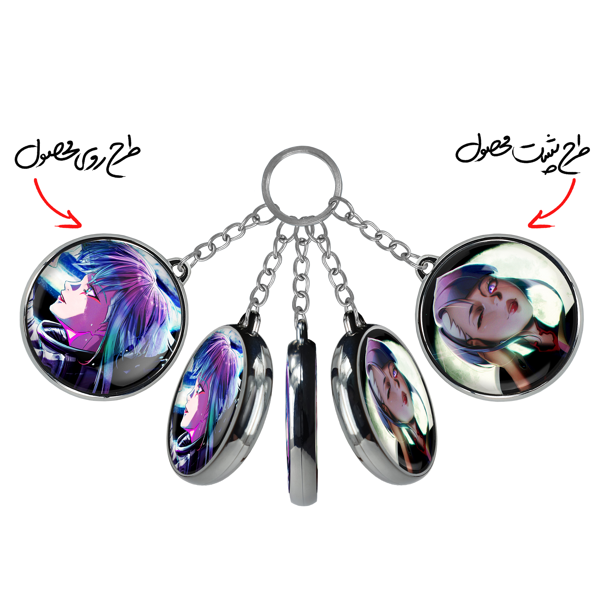 جاکلیدی دوطرفه لوسی انیمه سایبرپانکخندالو محصولی کاربردی و جدید است که در هر دو سمت محصول، تصویری متفاوت اما از یک موضوع چاپ شده و تفاوت اصلی آن با جاکلیدی های یک طرفه در همین است که هر دو سمت پشت و روی جاکلیدی، طرحی دیدنی و جذاب دارد.