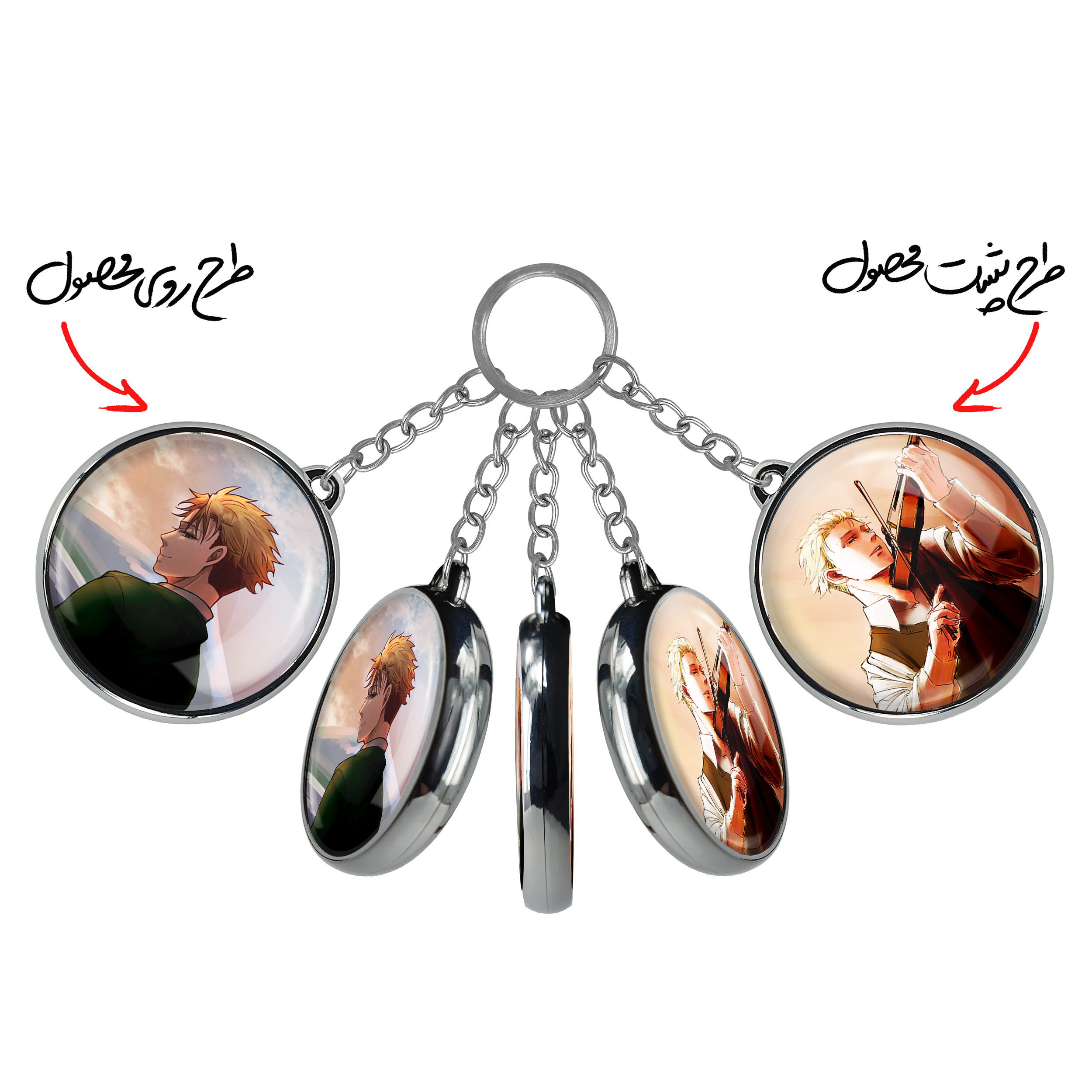 جاکلیدی دوطرفه لوید فورجر انیمه اسپای ایکس فمیلی Spy x Familyخندالو محصولی کاربردی و جدید است که در هر دو سمت محصول، تصویری متفاوت اما از یک موضوع چاپ شده و تفاوت اصلی آن با جاکلیدی های یک طرفه در همین است که هر دو سمت پشت و روی جاکلیدی، طرحی دیدنی و جذاب دارد. همچنین رینگ بکار برده شده برای دور طرح ها آبکاری کروم درجه یک و رنگ ثابت است و برخلاف سایر محصولات مشابه، از رنگ های متفرقه و یا سفید استفاده نشده، که این مهم، زیبایی محصول نهایی را چند برابر کرده است. جاکلیدی های دوطرفه لوید فورجر انیمه اسپای ایکس فمیلی Spy x Familyبا استفاده از روکش سلفون براق ضدخش تولید شده که خاصیت ضدخش بودن آن عمر مفید استفاده از جاکلیدی ها را افزایش میدهد. چاپ جاکلیدی ها با دستگاه های استاندارد و با بهترین سطح کیفیت صورت گرفته و طرح با شفافیتی مثال زدنی و با سلفون چسبی تولید شده است که باعث شده محصول نهایی بدون شکست نور دیده شود. همچنین بسته بندی جذاب و مینیمال جاکلیدی دوطرفه لوید فورجر انیمه اسپای ایکس فمیلی Spy x Family، آنها را محصولی مناسب هدیه کرده است. زنجیر و حلقه بکار برده شده در جاکلیدی خندالو از نوع حلقه ضخیم و محکم بوده و حین استفاده آسیب نمی بیند.
