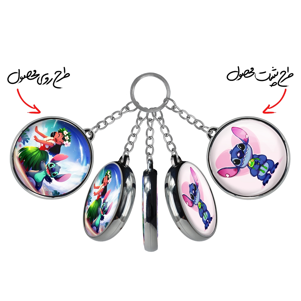 جاکلیدی دوطرفه لیلو و استیچ خندالو محصولی کاربردی و جدید است که در هر دو سمت محصول، تصویری متفاوت اما از یک موضوع چاپ شده و تفاوت اصلی آن با جاکلیدی های یک طرفه در همین است که هر دو سمت پشت و روی جاکلیدی، طرحی دیدنی و جذاب دارد. همچنین رینگ بکار برده شده برای دور طرح ها آبکاری کروم درجه یک و رنگ ثابت است و برخلاف سایر محصولات مشابه، از رنگ های متفرقه و یا سفید استفاده نشده، که این مهم، زیبایی محصول نهایی را چند برابر کرده است. جاکلیدی های دوطرفه لیلو و استیچ با استفاده از روکش سلفون براق ضدخش تولید شده که خاصیت ضدخش بودن آن عمر مفید استفاده از جاکلیدی ها را افزایش میدهد. چاپ جاکلیدی ها با دستگاه های استاندارد و با بهترین سطح کیفیت صورت گرفته و طرح با شفافیتی مثال زدنی و با سلفون چسبی تولید شده است که باعث شده محصول نهایی بدون شکست نور دیده شود. همچنین بسته بندی جذاب و مینیمال جاکلیدی دوطرفه لیلو و استیچ، آنها را محصولی مناسب هدیه کرده است. زنجیر و حلقه بکار برده شده در جاکلیدی خندالو از نوع حلقه ضخیم و محکم بوده و حین استفاده آسیب نمی بیند.