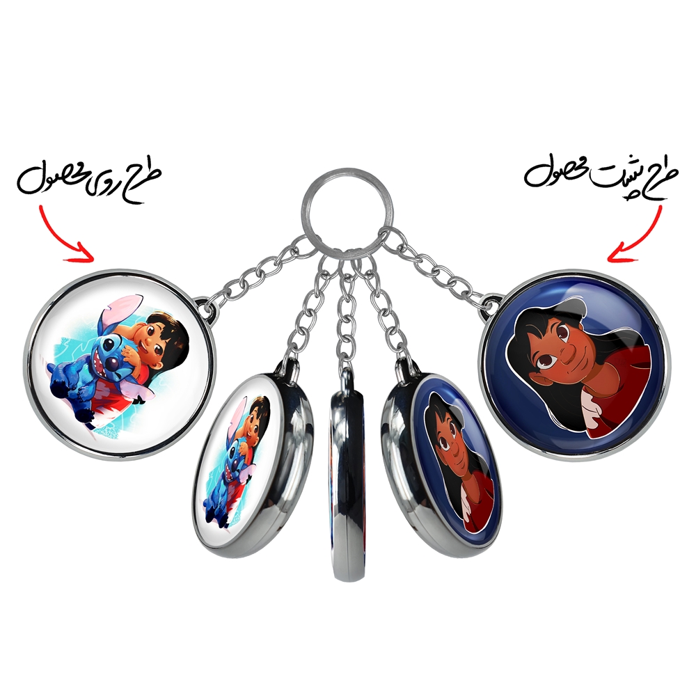 جاکلیدی دوطرفه لیلو و استیچ خندالو محصولی کاربردی و جدید است که در هر دو سمت محصول، تصویری متفاوت اما از یک موضوع چاپ شده و تفاوت اصلی آن با جاکلیدی های یک طرفه در همین است که هر دو سمت پشت و روی جاکلیدی، طرحی دیدنی و جذاب دارد. همچنین رینگ بکار برده شده برای دور طرح ها آبکاری کروم درجه یک و رنگ ثابت است و برخلاف سایر محصولات مشابه، از رنگ های متفرقه و یا سفید استفاده نشده، که این مهم، زیبایی محصول نهایی را چند برابر کرده است. جاکلیدی های دوطرفه لیلو و استیچ با استفاده از روکش سلفون براق ضدخش تولید شده که خاصیت ضدخش بودن آن عمر مفید استفاده از جاکلیدی ها را افزایش میدهد. چاپ جاکلیدی ها با دستگاه های استاندارد و با بهترین سطح کیفیت صورت گرفته و طرح با شفافیتی مثال زدنی و با سلفون چسبی تولید شده است که باعث شده محصول نهایی بدون شکست نور دیده شود. همچنین بسته بندی جذاب و مینیمال جاکلیدی دوطرفه لیلو و استیچ، آنها را محصولی مناسب هدیه کرده است. زنجیر و حلقه بکار برده شده در جاکلیدی خندالو از نوع حلقه ضخیم و محکم بوده و حین استفاده آسیب نمی بیند.