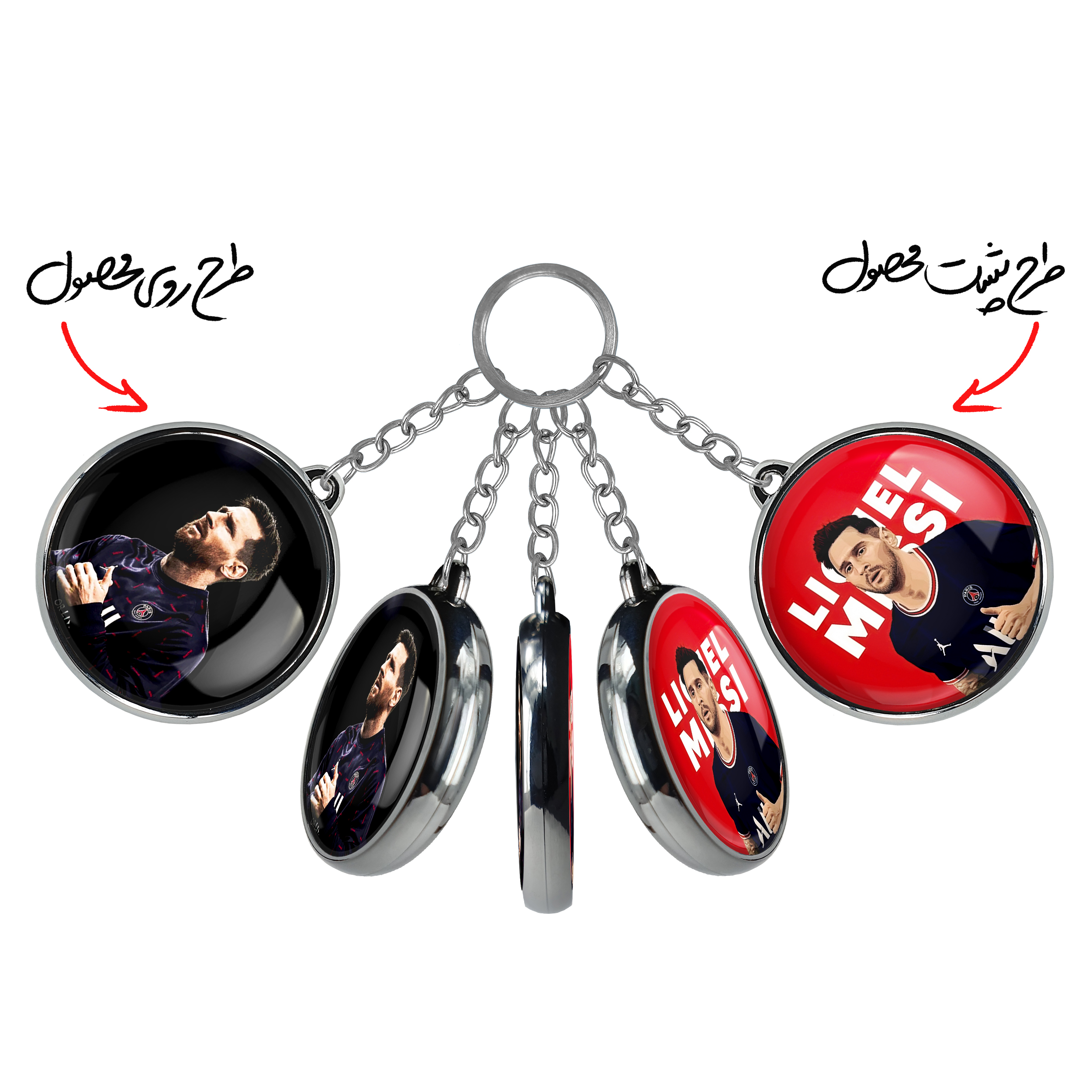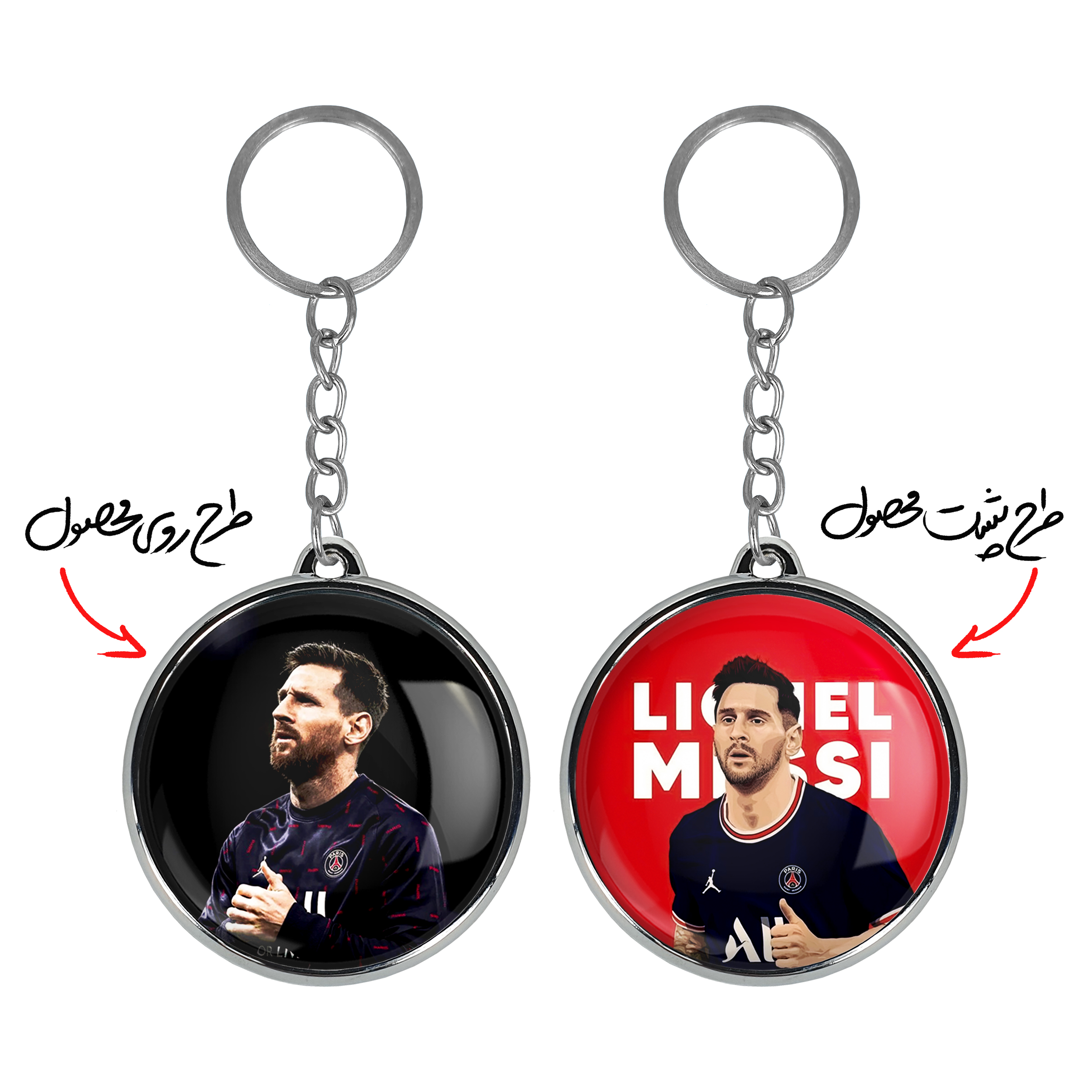 جاکلیدی دوطرفه لیونل مسی خندالو محصولی کاربردی و جدید است که در هر دو سمت محصول، تصویری متفاوت اما از یک موضوع چاپ شده و تفاوت اصلی آن با جاکلیدی های یک طرفه در همین است که هر دو سمت پشت و روی جاکلیدی، طرحی دیدنی و جذاب دارد.