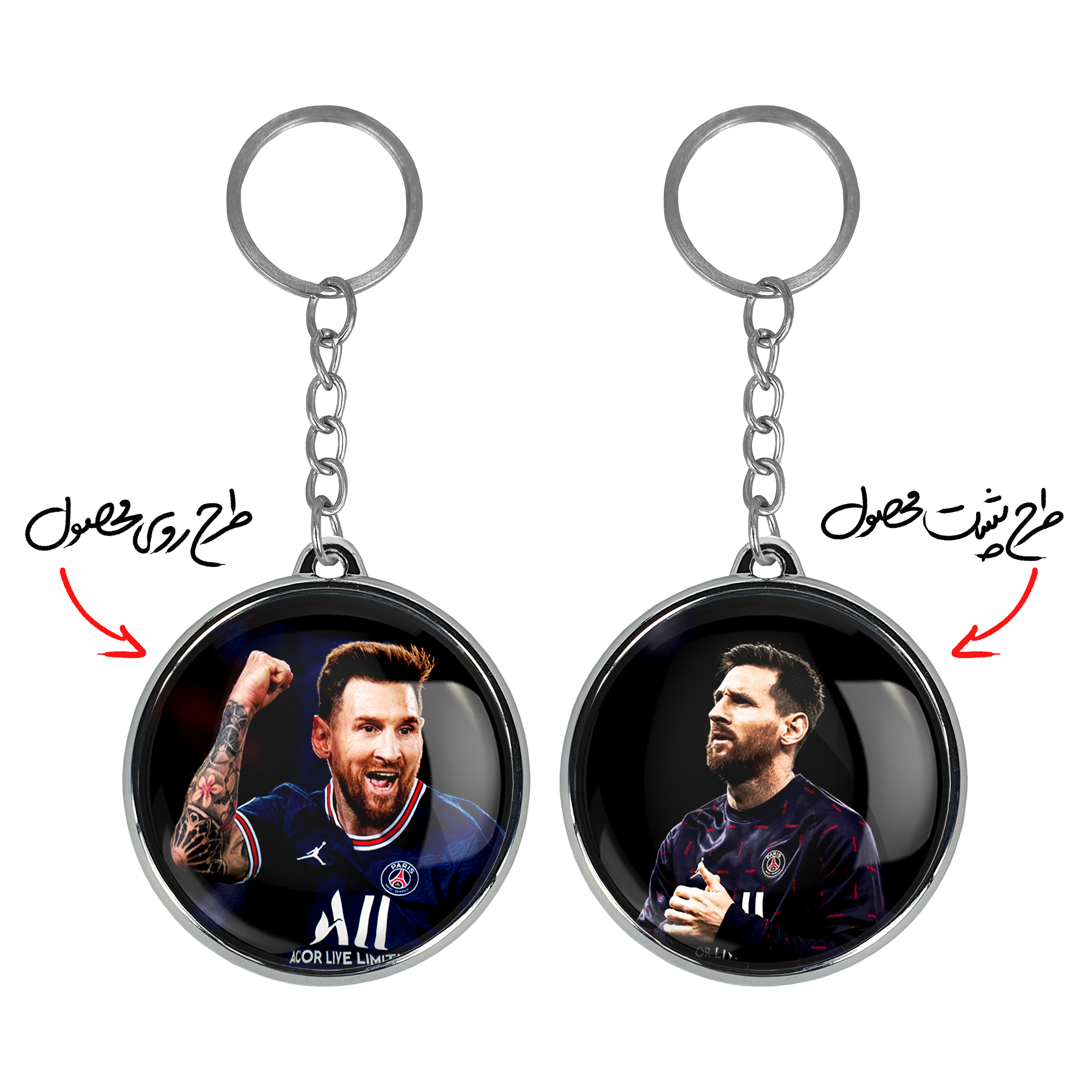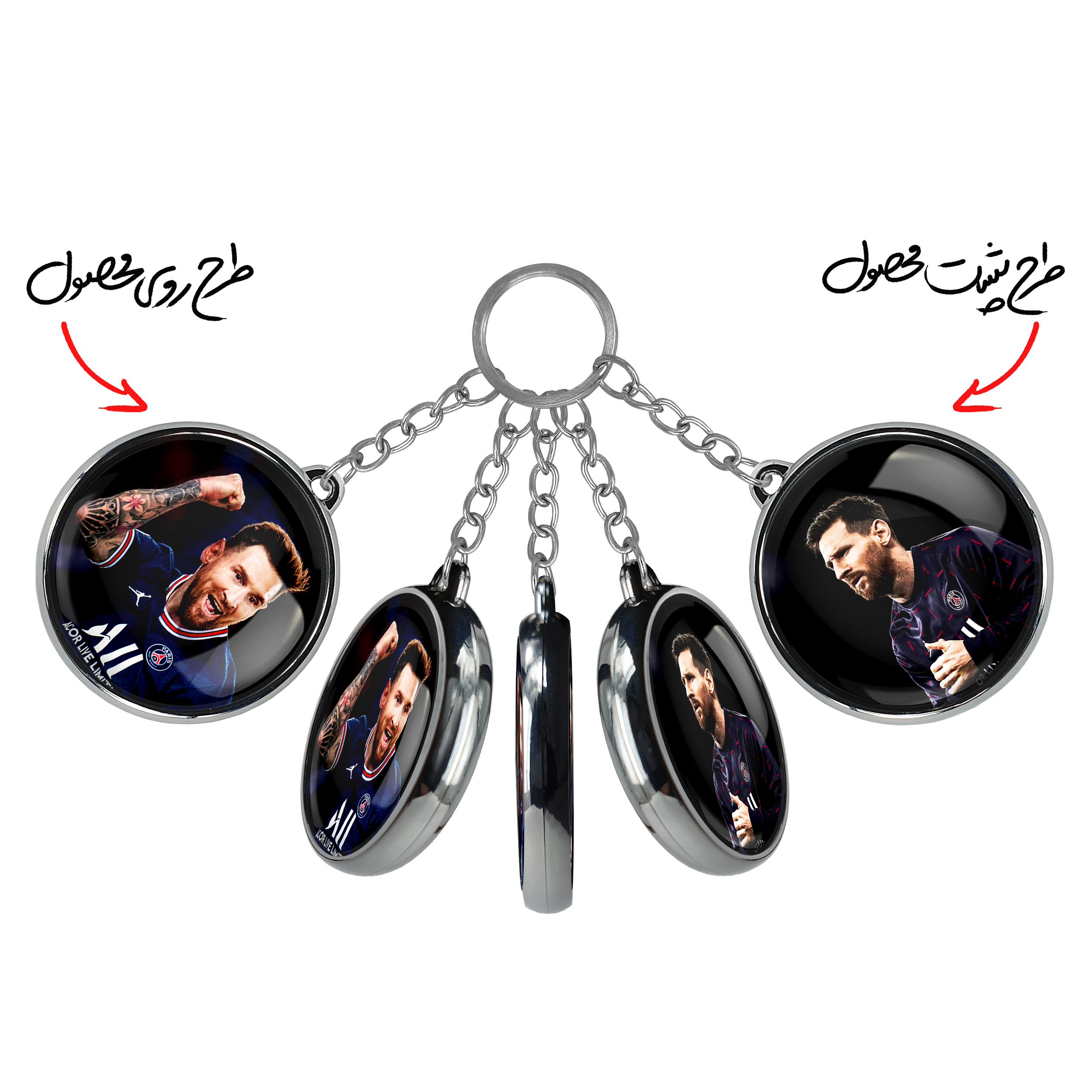جاکلیدی دوطرفه لیونل مسی خندالو محصولی کاربردی و جدید است که در هر دو سمت محصول، تصویری متفاوت اما از یک موضوع چاپ شده و تفاوت اصلی آن با جاکلیدی های یک طرفه در همین است که هر دو سمت پشت و روی جاکلیدی، طرحی دیدنی و جذاب دارد.