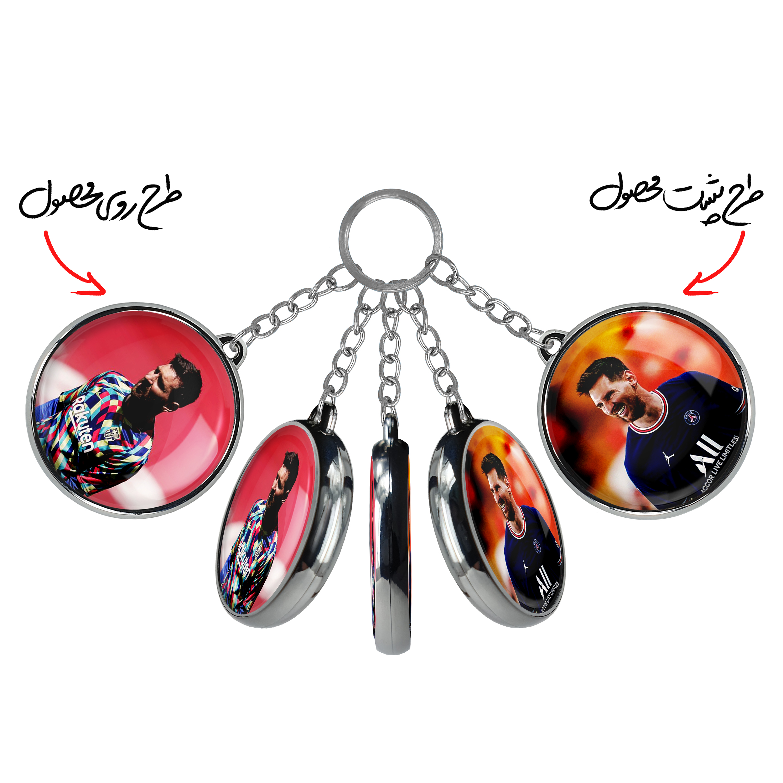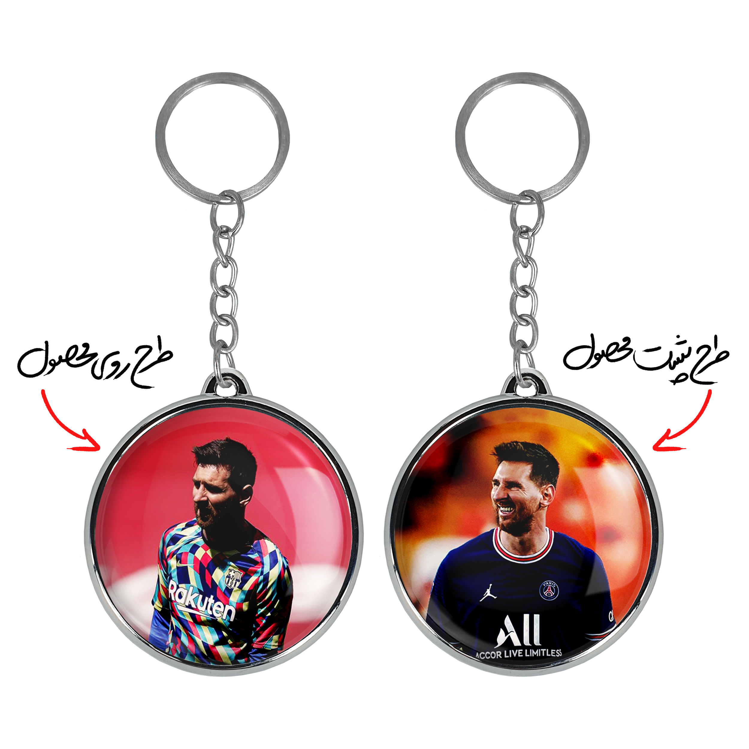 جاکلیدی دوطرفه لیونل مسی خندالو محصولی کاربردی و جدید است که در هر دو سمت محصول، تصویری متفاوت اما از یک موضوع چاپ شده و تفاوت اصلی آن با جاکلیدی های یک طرفه در همین است که هر دو سمت پشت و روی جاکلیدی، طرحی دیدنی و جذاب دارد.