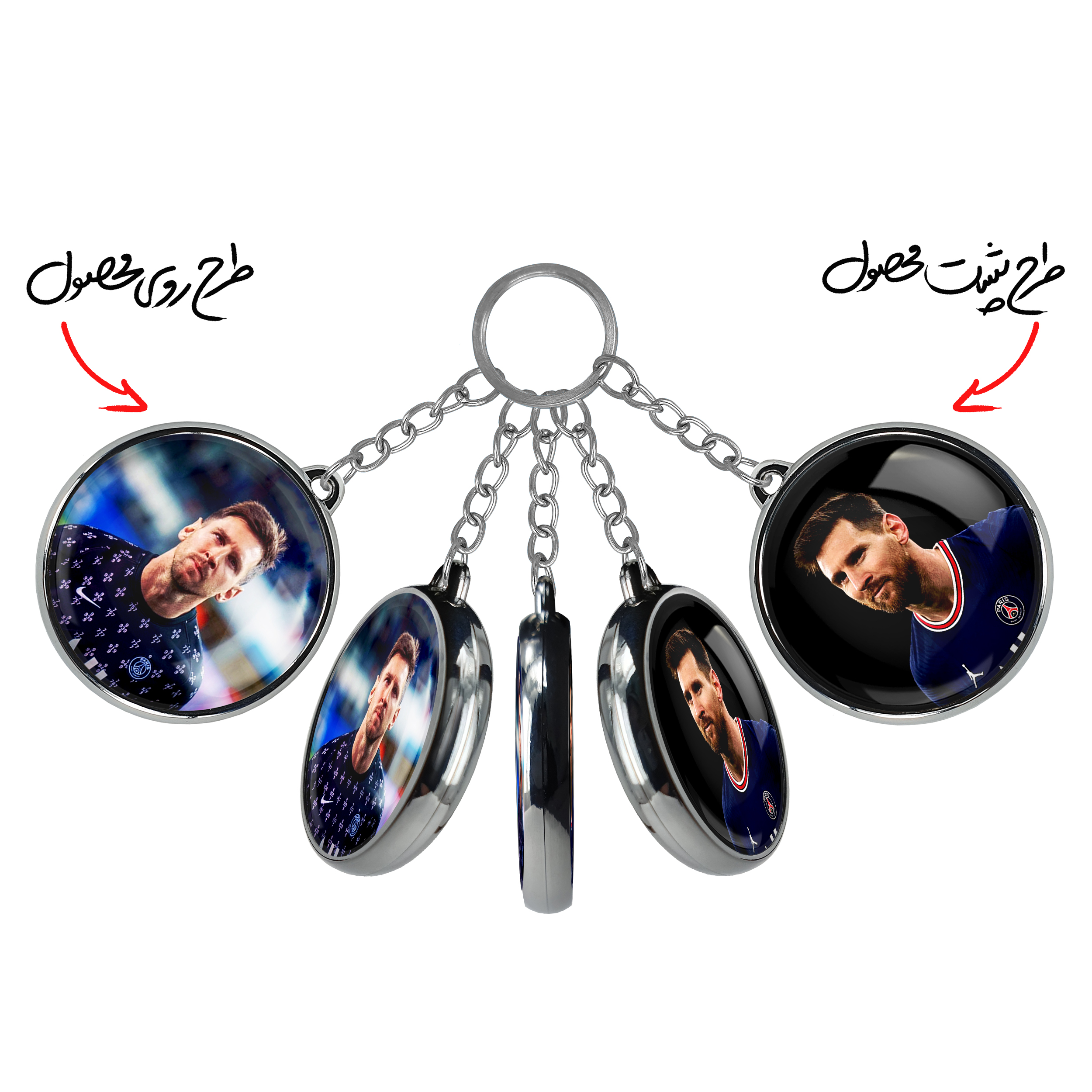 جاکلیدی دوطرفه لیونل مسی خندالو محصولی کاربردی و جدید است که در هر دو سمت محصول، تصویری متفاوت اما از یک موضوع چاپ شده و تفاوت اصلی آن با جاکلیدی های یک طرفه در همین است که هر دو سمت پشت و روی جاکلیدی، طرحی دیدنی و جذاب دارد.