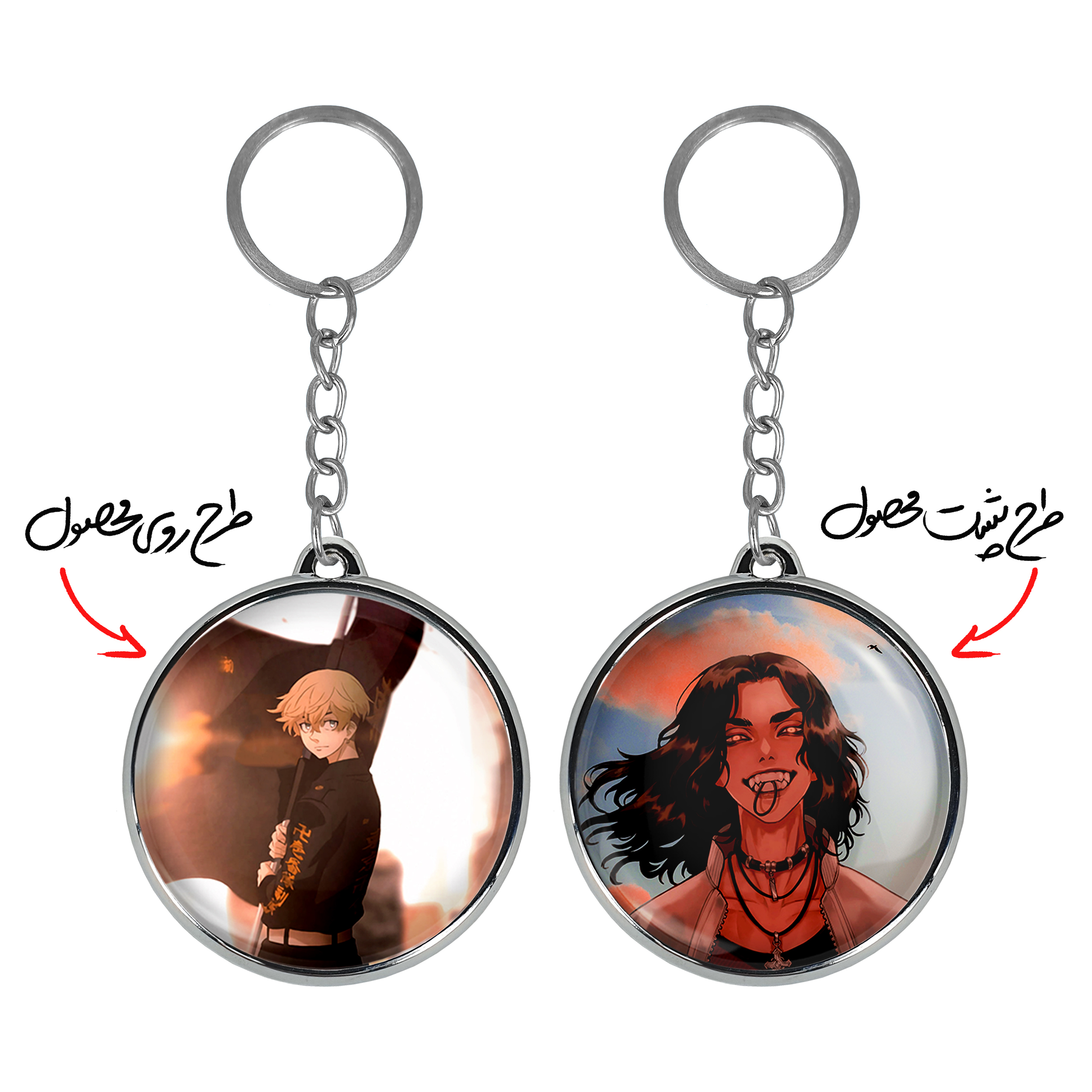 جاکلیدی دوطرفه ماتسونو چیفویو انیمه توکیو ریونجرز خندالو محصولی کاربردی و جدید است که در هر دو سمت محصول، تصویری متفاوت اما از یک موضوع چاپ شده و تفاوت اصلی آن با جاکلیدی های یک طرفه در همین است که هر دو سمت پشت و روی جاکلیدی، طرحی دیدنی و جذاب دارد. همچنین رینگ بکار برده شده برای دور طرح ها آبکاری کروم درجه یک و رنگ ثابت است و برخلاف سایر محصولات مشابه، از رنگ های متفرقه و یا سفید استفاده نشده، که این مهم، زیبایی محصول نهایی را چند برابر کرده است. جاکلیدی های دوطرفه ماتسونو چیفویو انیمه توکیو ریونجرز با استفاده از روکش سلفون براق ضدخش تولید شده که خاصیت ضدخش بودن آن عمر مفید استفاده از جاکلیدی ها را افزایش میدهد. چاپ جاکلیدی ها با دستگاه های استاندارد و با بهترین سطح کیفیت صورت گرفته و طرح با شفافیتی مثال زدنی و با سلفون چسبی تولید شده است که باعث شده محصول نهایی بدون شکست نور دیده شود. همچنین بسته بندی جذاب و مینیمال جاکلیدی دوطرفه ماتسونو چیفویو انیمه توکیو ریونجرز ، آنها را محصولی مناسب هدیه کرده است. زنجیر و حلقه بکار برده شده در جاکلیدی خندالو از نوع حلقه ضخیم و محکم بوده و حین استفاده آسیب نمی بیند.