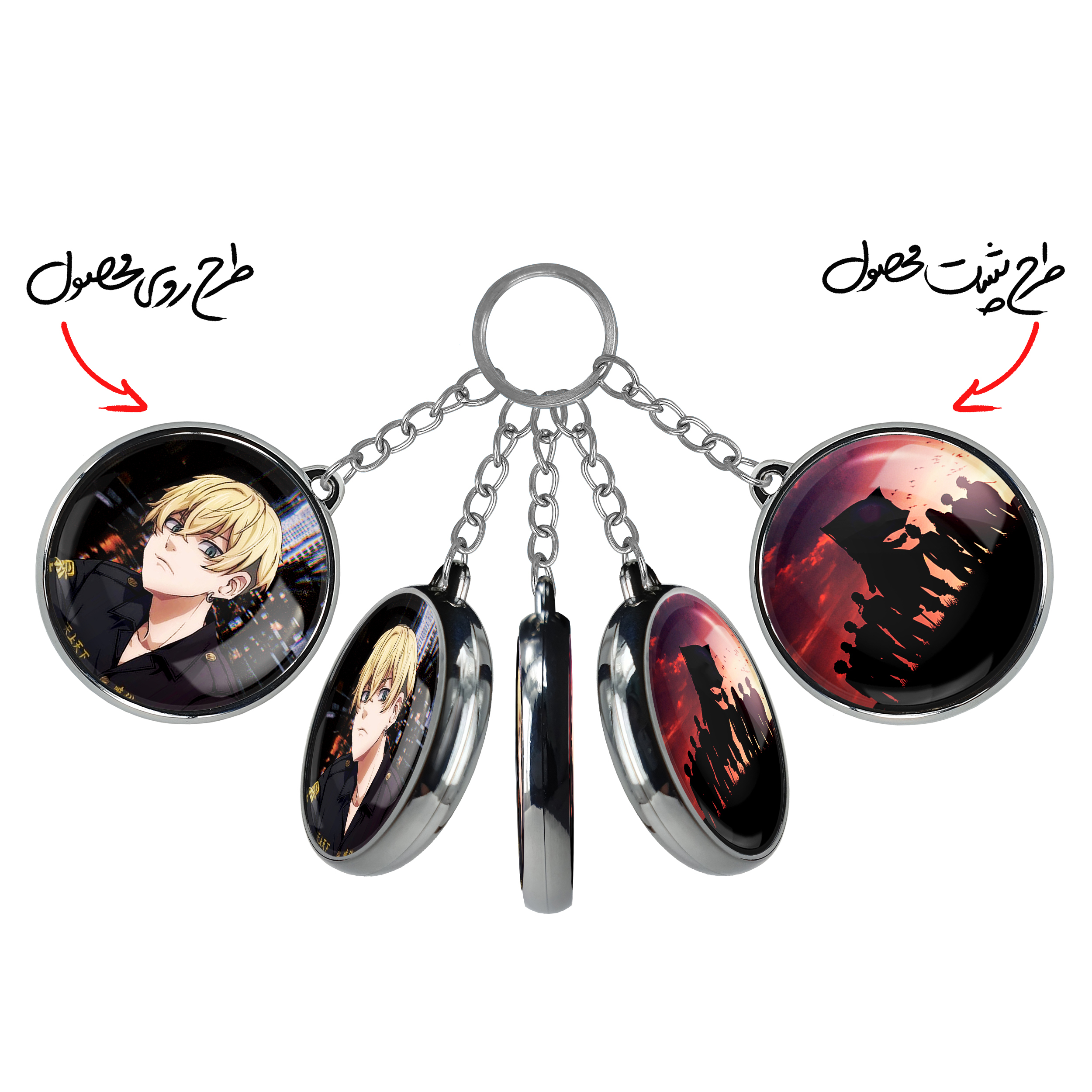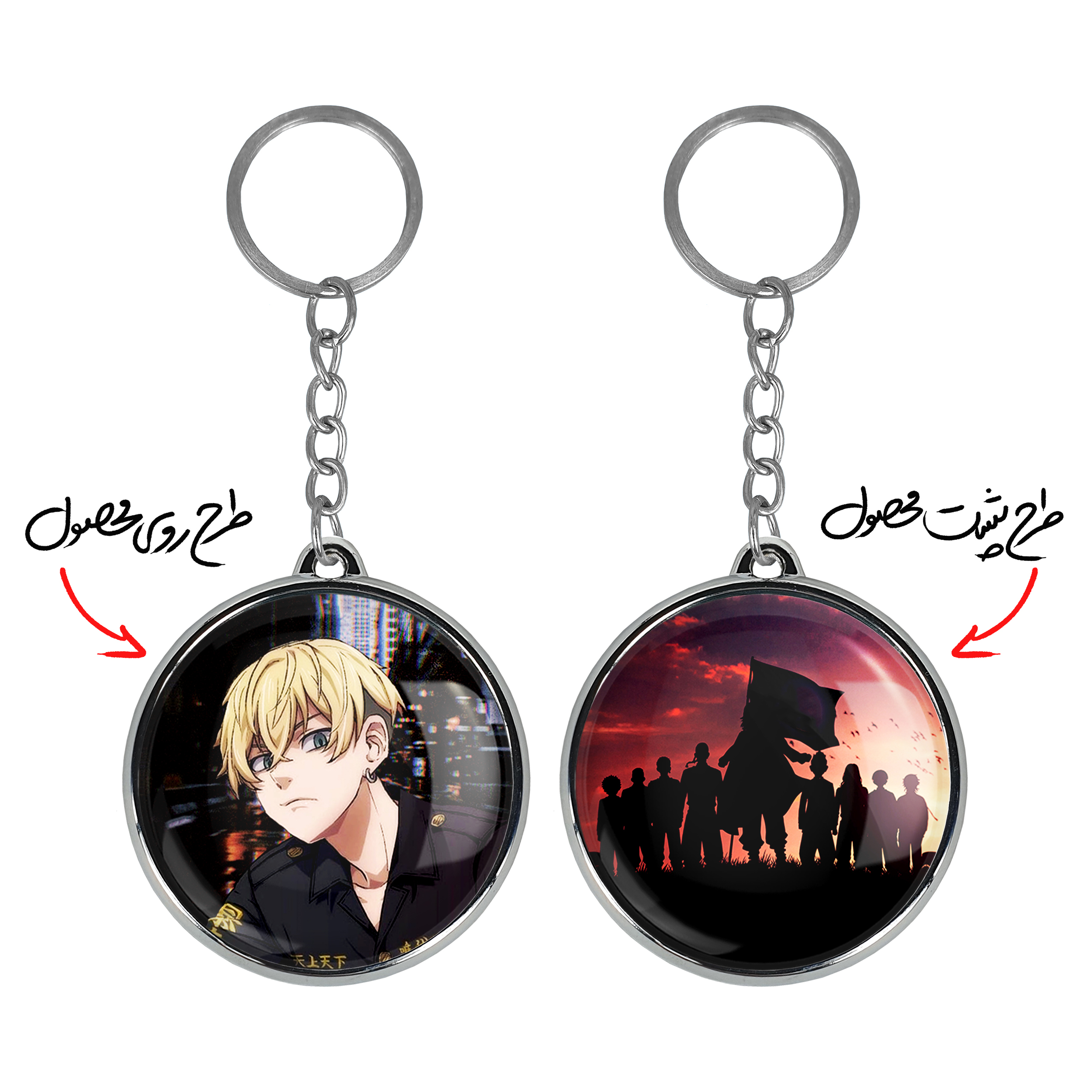 جاکلیدی دوطرفه ماتسونو چیفویو انیمه توکیو ریونجرز خندالو محصولی کاربردی و جدید است که در هر دو سمت محصول، تصویری متفاوت اما از یک موضوع چاپ شده و تفاوت اصلی آن با جاکلیدی های یک طرفه در همین است که هر دو سمت پشت و روی جاکلیدی، طرحی دیدنی و جذاب دارد. همچنین رینگ بکار برده شده برای دور طرح ها آبکاری کروم درجه یک و رنگ ثابت است و برخلاف سایر محصولات مشابه، از رنگ های متفرقه و یا سفید استفاده نشده، که این مهم، زیبایی محصول نهایی را چند برابر کرده است. جاکلیدی های دوطرفه ماتسونو چیفویو انیمه توکیو ریونجرز با استفاده از روکش سلفون براق ضدخش تولید شده که خاصیت ضدخش بودن آن عمر مفید استفاده از جاکلیدی ها را افزایش میدهد. چاپ جاکلیدی ها با دستگاه های استاندارد و با بهترین سطح کیفیت صورت گرفته و طرح با شفافیتی مثال زدنی و با سلفون چسبی تولید شده است که باعث شده محصول نهایی بدون شکست نور دیده شود. همچنین بسته بندی جذاب و مینیمال جاکلیدی دوطرفه ماتسونو چیفویو انیمه توکیو ریونجرز ، آنها را محصولی مناسب هدیه کرده است. زنجیر و حلقه بکار برده شده در جاکلیدی خندالو از نوع حلقه ضخیم و محکم بوده و حین استفاده آسیب نمی بیند.