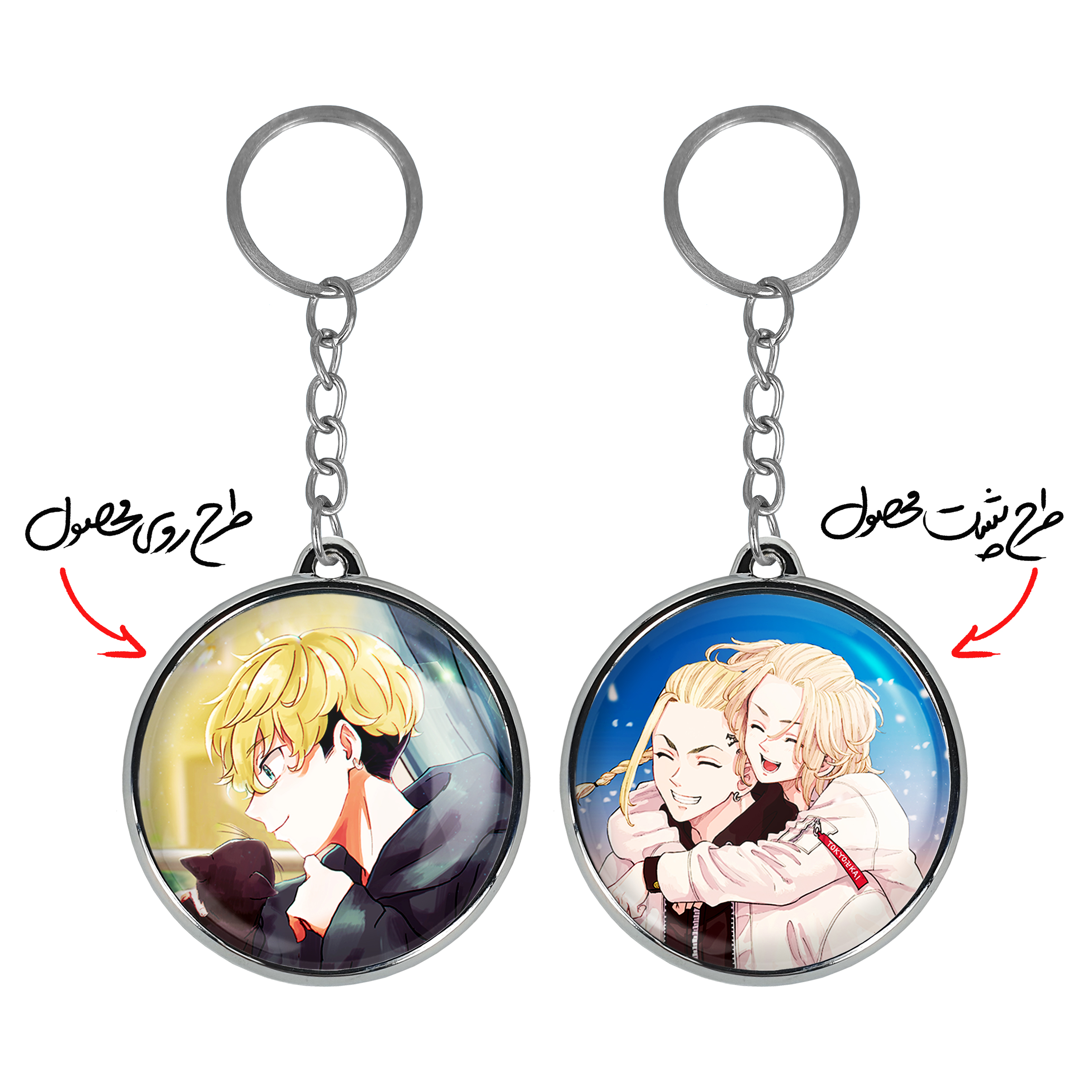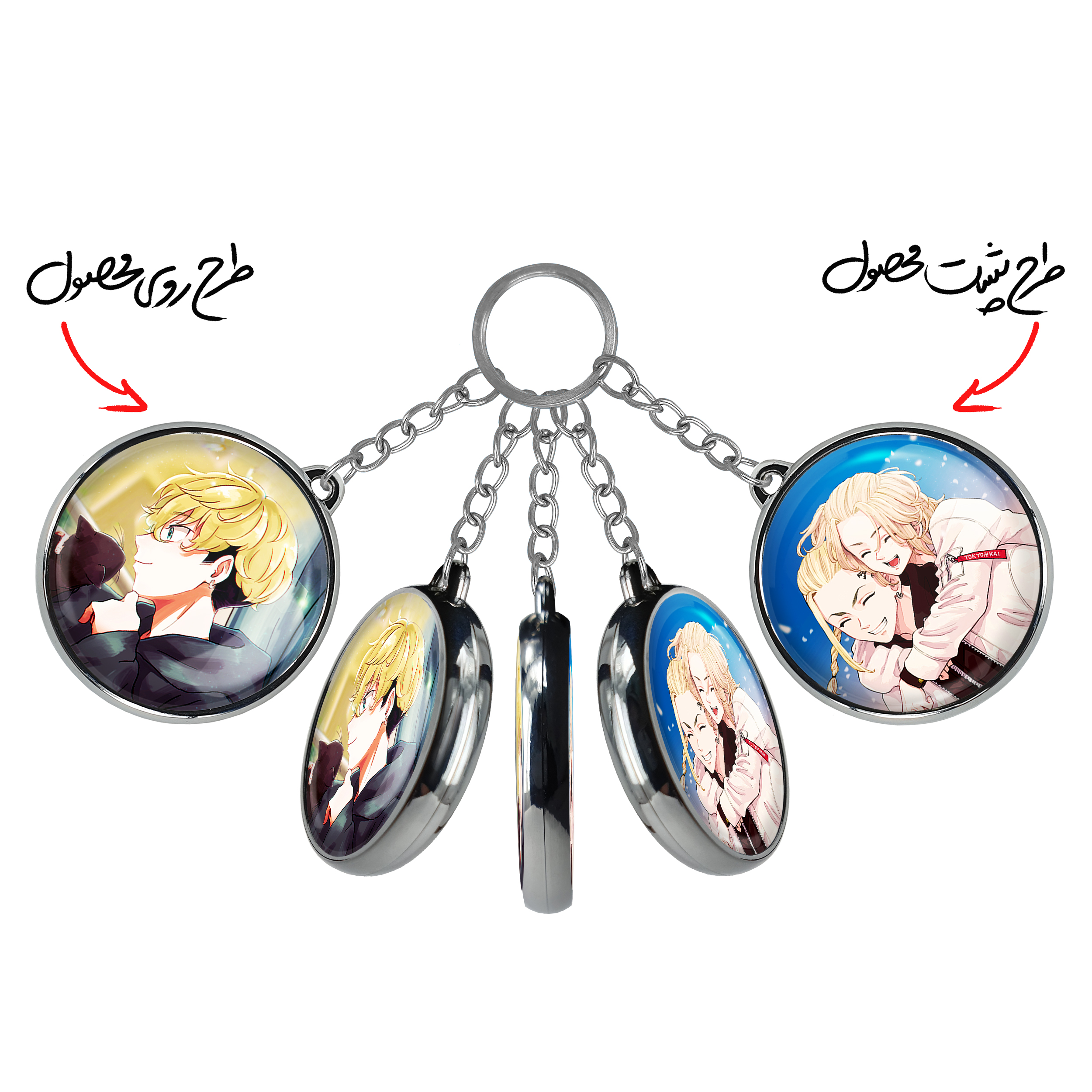 جاکلیدی دوطرفه ماتسونو چیفویو انیمه توکیو ریونجرز خندالو محصولی کاربردی و جدید است که در هر دو سمت محصول، تصویری متفاوت اما از یک موضوع چاپ شده و تفاوت اصلی آن با جاکلیدی های یک طرفه در همین است که هر دو سمت پشت و روی جاکلیدی، طرحی دیدنی و جذاب دارد. همچنین رینگ بکار برده شده برای دور طرح ها آبکاری کروم درجه یک و رنگ ثابت است و برخلاف سایر محصولات مشابه، از رنگ های متفرقه و یا سفید استفاده نشده، که این مهم، زیبایی محصول نهایی را چند برابر کرده است. جاکلیدی های دوطرفه ماتسونو چیفویو انیمه توکیو ریونجرز با استفاده از روکش سلفون براق ضدخش تولید شده که خاصیت ضدخش بودن آن عمر مفید استفاده از جاکلیدی ها را افزایش میدهد. چاپ جاکلیدی ها با دستگاه های استاندارد و با بهترین سطح کیفیت صورت گرفته و طرح با شفافیتی مثال زدنی و با سلفون چسبی تولید شده است که باعث شده محصول نهایی بدون شکست نور دیده شود. همچنین بسته بندی جذاب و مینیمال جاکلیدی دوطرفه ماتسونو چیفویو انیمه توکیو ریونجرز ، آنها را محصولی مناسب هدیه کرده است. زنجیر و حلقه بکار برده شده در جاکلیدی خندالو از نوع حلقه ضخیم و محکم بوده و حین استفاده آسیب نمی بیند.
