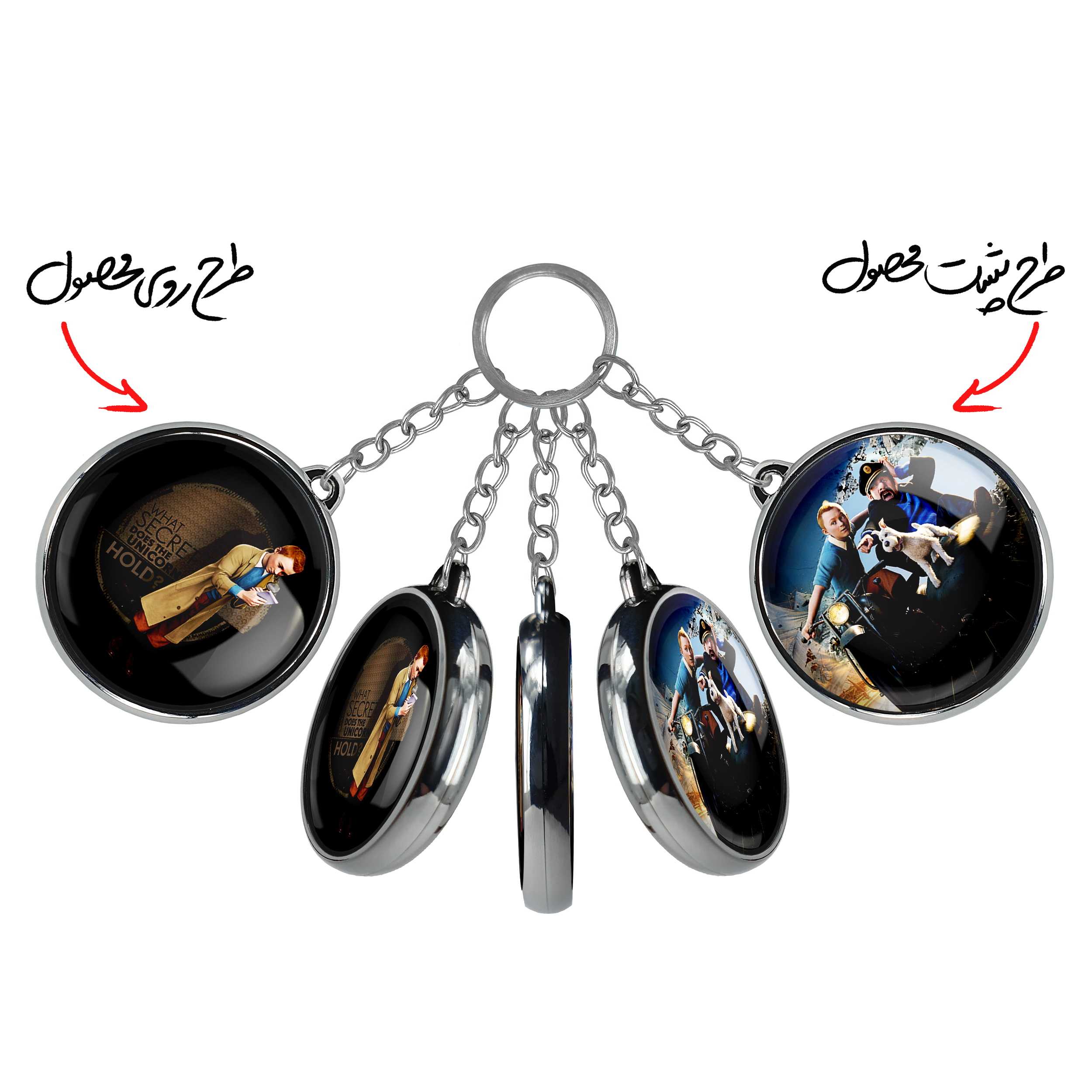 جاکلیدی دوطرفه ماجراهای تن تنخندالو محصولی کاربردی و جدید است که در هر دو سمت محصول، تصویری متفاوت اما از یک موضوع چاپ شده و تفاوت اصلی آن با جاکلیدی های یک طرفه در همین است که هر دو سمت پشت و روی جاکلیدی، طرحی دیدنی و جذاب دارد.