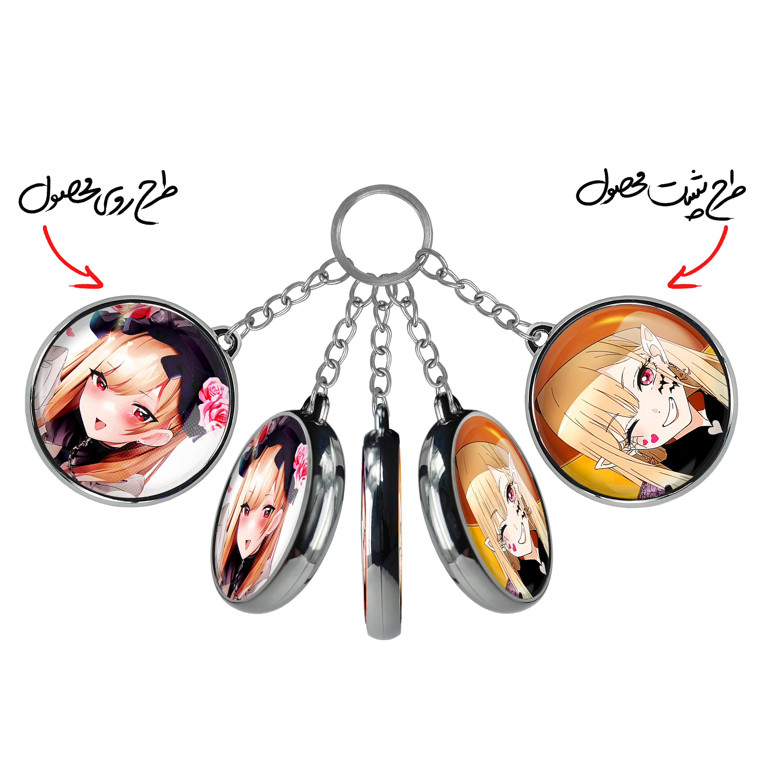 جاکلیدی دوطرفه مارین کیتاگاوا انیمه دارلینگ در فرنکس خندالو محصولی کاربردی و جدید است که در هر دو سمت محصول، تصویری متفاوت اما از یک موضوع چاپ شده و تفاوت اصلی آن با جاکلیدی های یک طرفه در همین است که هر دو سمت پشت و روی جاکلیدی، طرحی دیدنی و جذاب دارد.