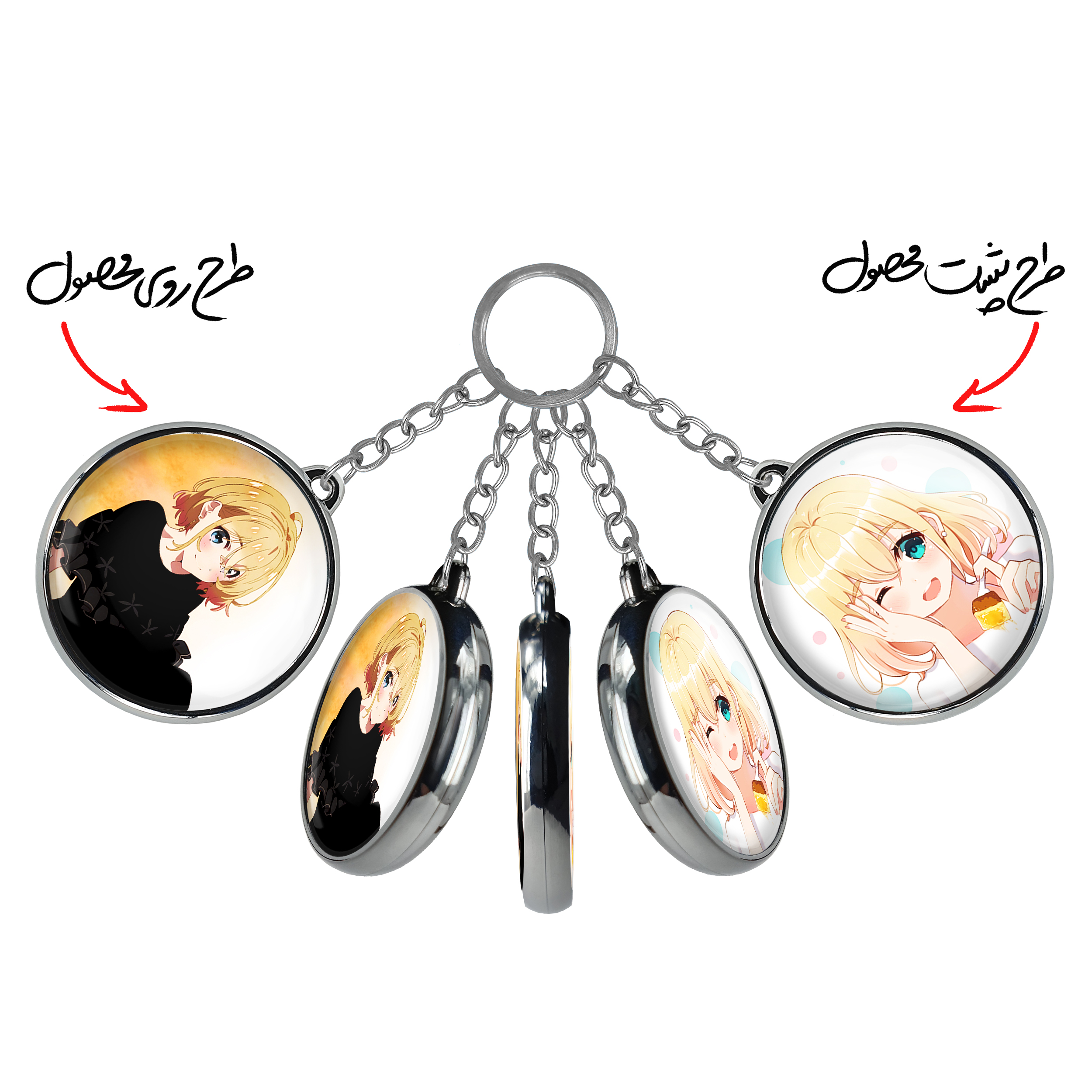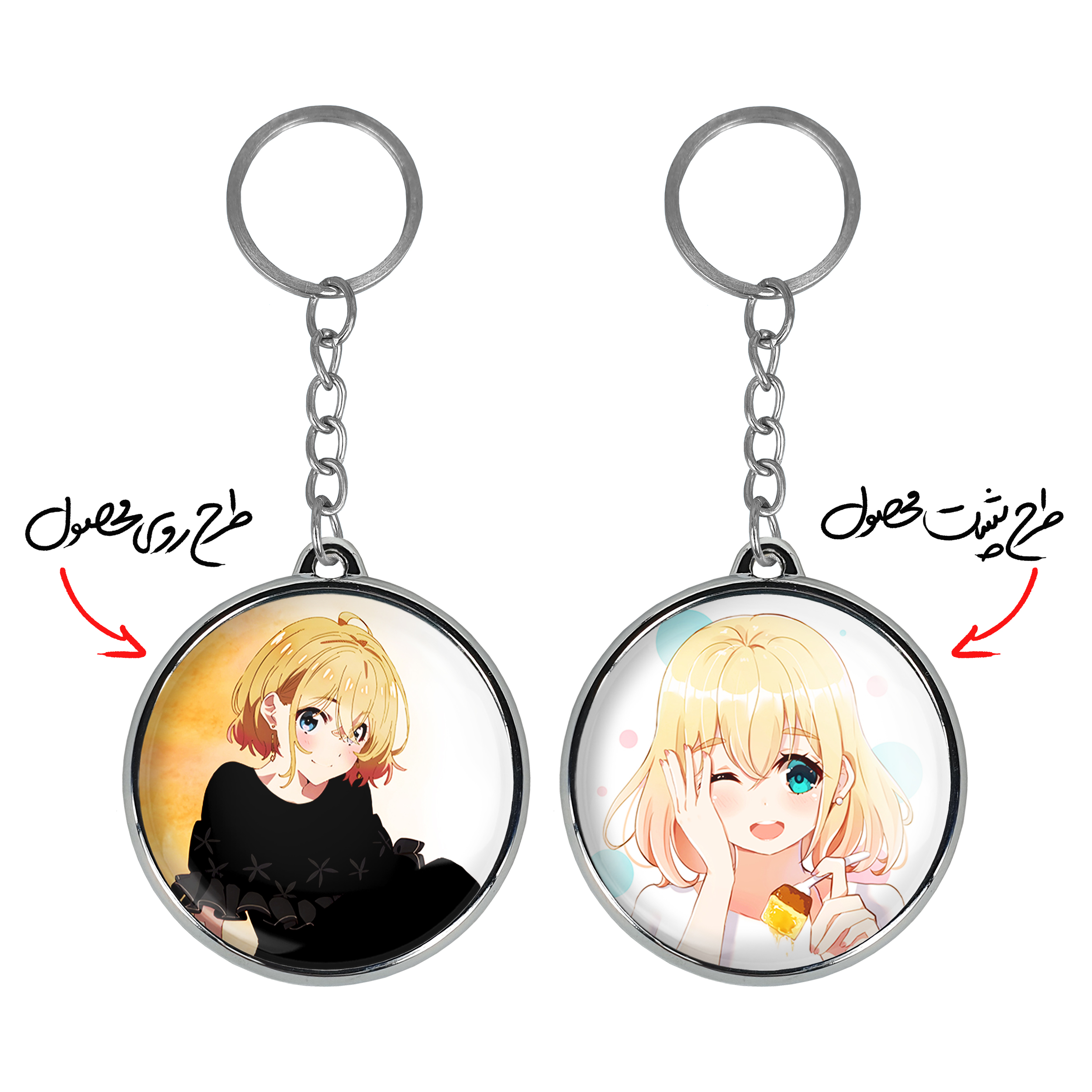 جاکلیدی دوطرفه مامی نانامی انیمه کانوجواوکاری خندالو محصولی کاربردی و جدید است که در هر دو سمت محصول، تصویری متفاوت اما از یک موضوع چاپ شده و تفاوت اصلی آن با جاکلیدی های یک طرفه در همین است که هر دو سمت پشت و روی جاکلیدی، طرحی دیدنی و جذاب دارد.