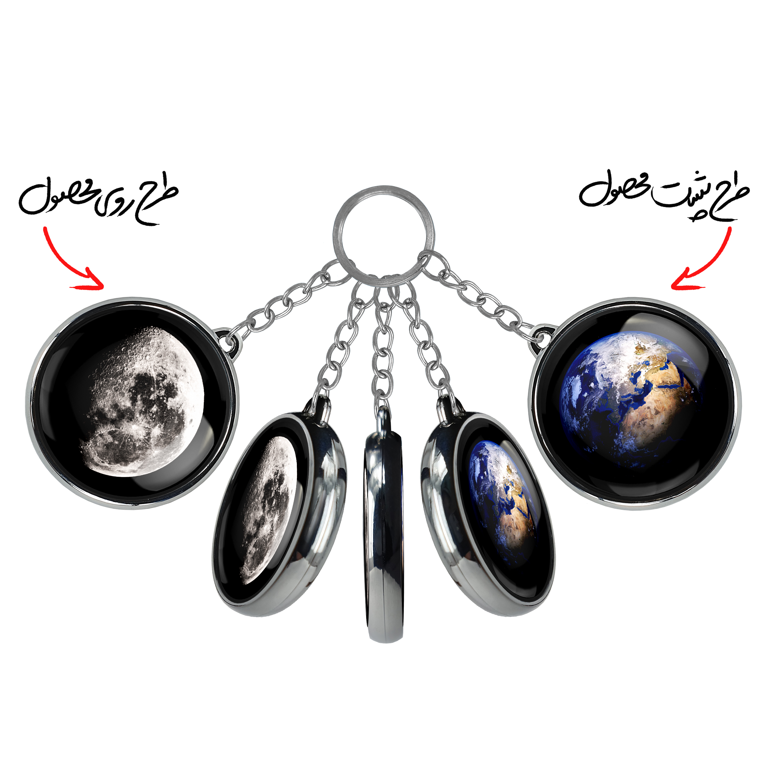 جاکلیدی دوطرفه ماهخندالو محصولی کاربردی و جدید است که در هر دو سمت محصول، تصویری متفاوت اما از یک موضوع چاپ شده و تفاوت اصلی آن با جاکلیدی های یک طرفه در همین است که هر دو سمت پشت و روی جاکلیدی، طرحی دیدنی و جذاب دارد. همچنین رینگ بکار برده شده برای دور طرح ها آبکاری کروم درجه یک و رنگ ثابت است و برخلاف سایر محصولات مشابه، از رنگ های متفرقه و یا سفید استفاده نشده، که این مهم، زیبایی محصول نهایی را چند برابر کرده است. جاکلیدی های دوطرفه ماهبا استفاده از روکش سلفون براق ضدخش تولید شده که خاصیت ضدخش بودن آن عمر مفید استفاده از جاکلیدی ها را افزایش میدهد. چاپ جاکلیدی ها با دستگاه های استاندارد و با بهترین سطح کیفیت صورت گرفته و طرح با شفافیتی مثال زدنی و با سلفون چسبی تولید شده است که باعث شده محصول نهایی بدون شکست نور دیده شود. همچنین بسته بندی جذاب و مینیمال جاکلیدی دوطرفه ماه، آنها را محصولی مناسب هدیه کرده است. زنجیر و حلقه بکار برده شده در جاکلیدی خندالو از نوع حلقه ضخیم و محکم بوده و حین استفاده آسیب نمی بیند.