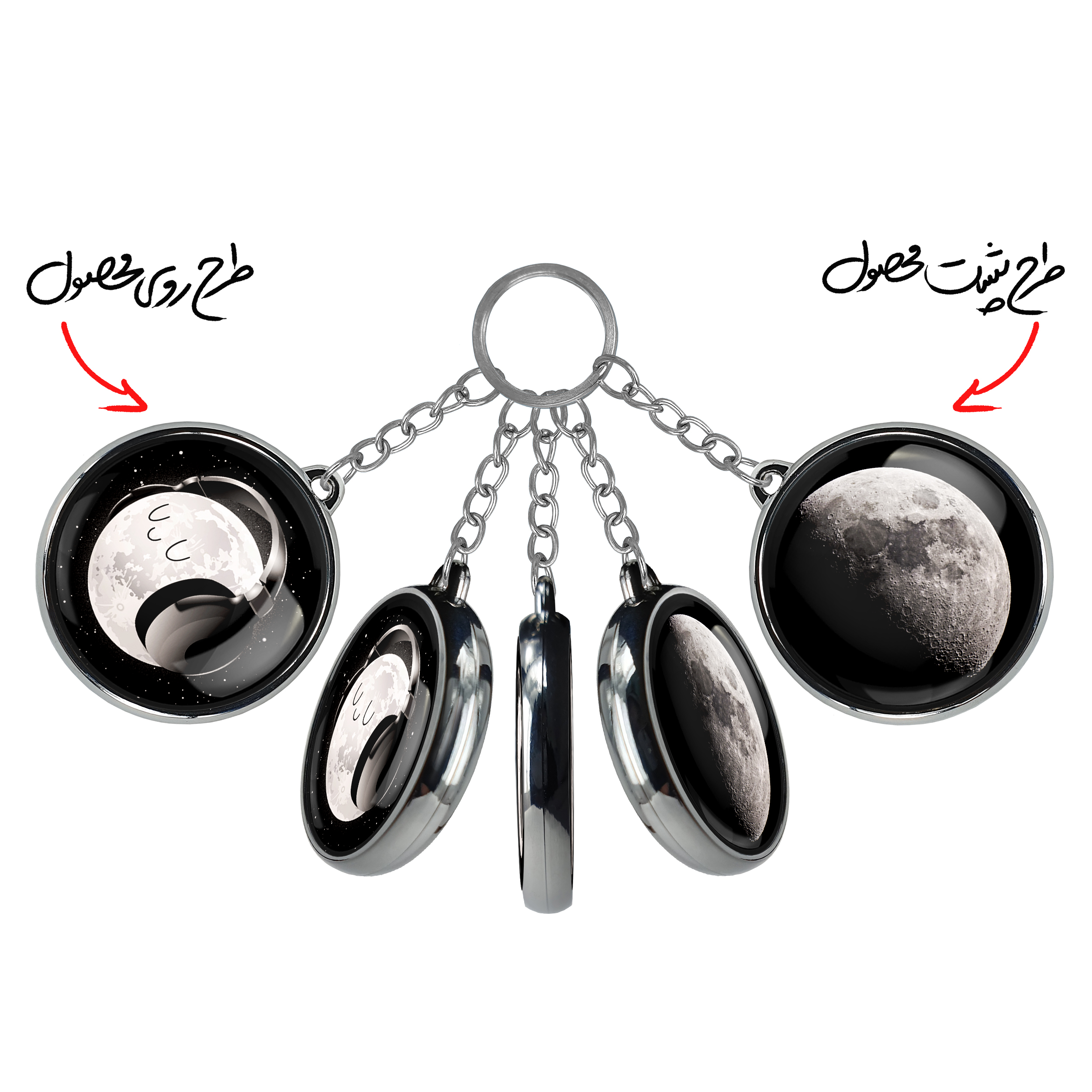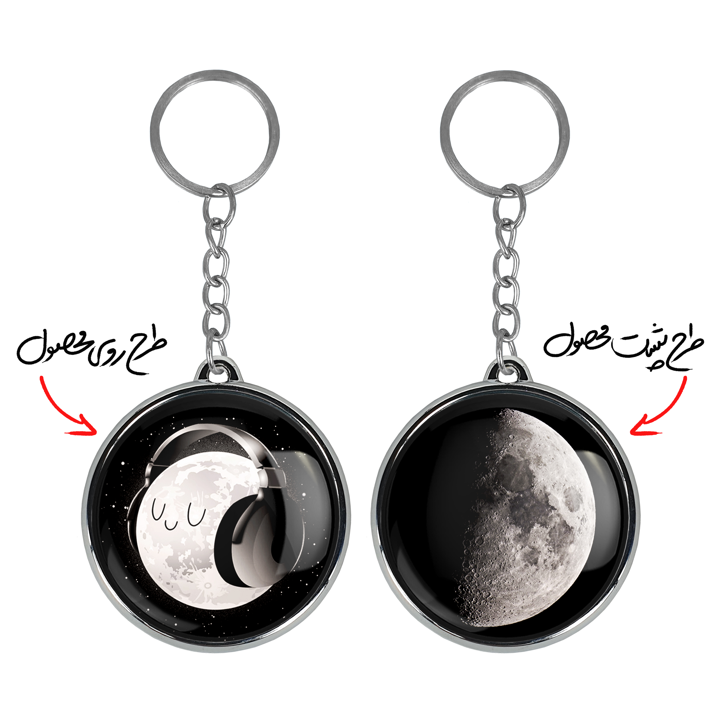 جاکلیدی دوطرفه ماهخندالو محصولی کاربردی و جدید است که در هر دو سمت محصول، تصویری متفاوت اما از یک موضوع چاپ شده و تفاوت اصلی آن با جاکلیدی های یک طرفه در همین است که هر دو سمت پشت و روی جاکلیدی، طرحی دیدنی و جذاب دارد. همچنین رینگ بکار برده شده برای دور طرح ها آبکاری کروم درجه یک و رنگ ثابت است و برخلاف سایر محصولات مشابه، از رنگ های متفرقه و یا سفید استفاده نشده، که این مهم، زیبایی محصول نهایی را چند برابر کرده است. جاکلیدی های دوطرفه ماهبا استفاده از روکش سلفون براق ضدخش تولید شده که خاصیت ضدخش بودن آن عمر مفید استفاده از جاکلیدی ها را افزایش میدهد. چاپ جاکلیدی ها با دستگاه های استاندارد و با بهترین سطح کیفیت صورت گرفته و طرح با شفافیتی مثال زدنی و با سلفون چسبی تولید شده است که باعث شده محصول نهایی بدون شکست نور دیده شود. همچنین بسته بندی جذاب و مینیمال جاکلیدی دوطرفه ماه، آنها را محصولی مناسب هدیه کرده است. زنجیر و حلقه بکار برده شده در جاکلیدی خندالو از نوع حلقه ضخیم و محکم بوده و حین استفاده آسیب نمی بیند.