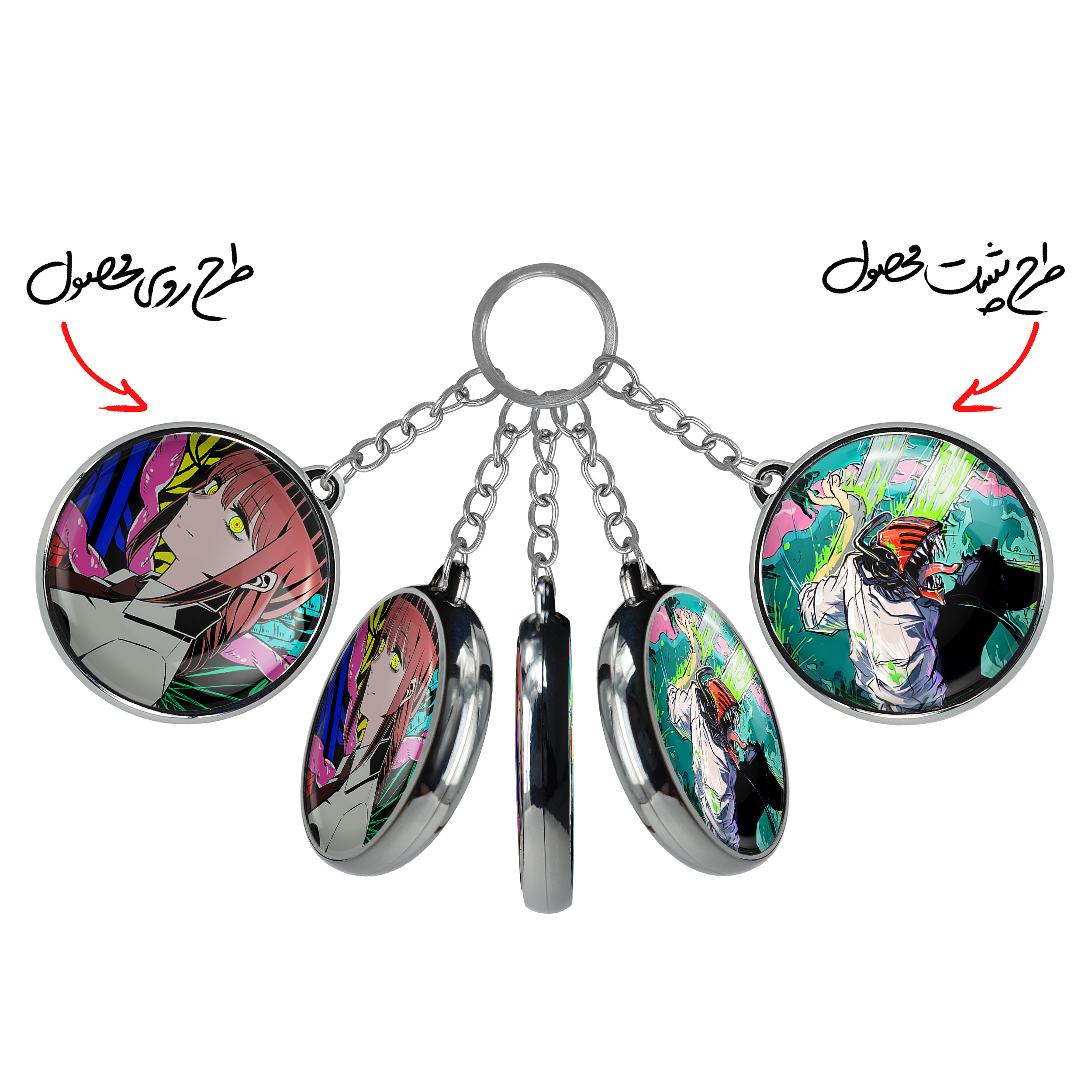 جاکلیدی دوطرفه ماکیما انیمه مرد اره ای Chainsaw Man خندالو محصولی کاربردی و جدید است که در هر دو سمت محصول، تصویری متفاوت اما از یک موضوع چاپ شده و تفاوت اصلی آن با جاکلیدی های یک طرفه در همین است که هر دو سمت پشت و روی جاکلیدی، طرحی دیدنی و جذاب دارد.