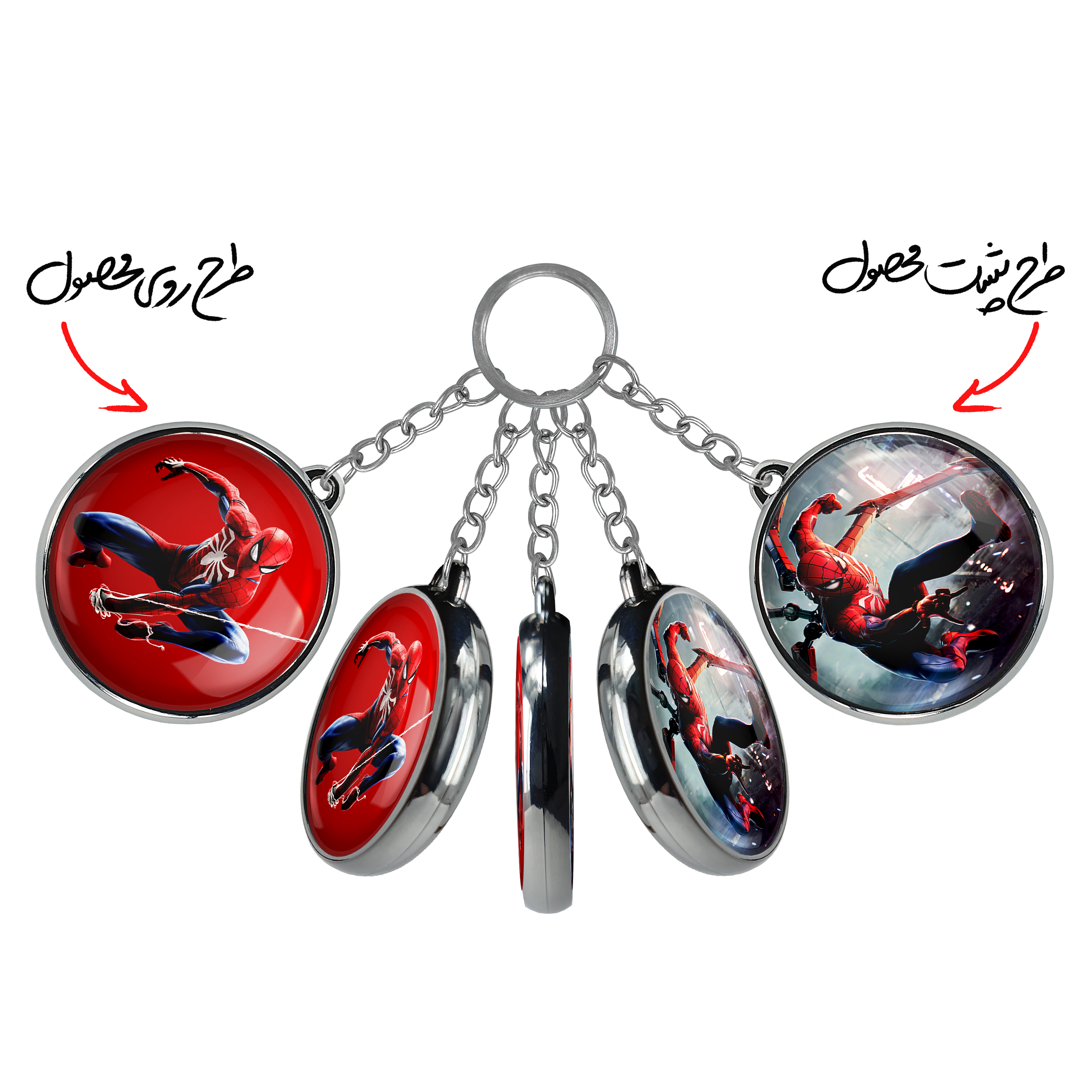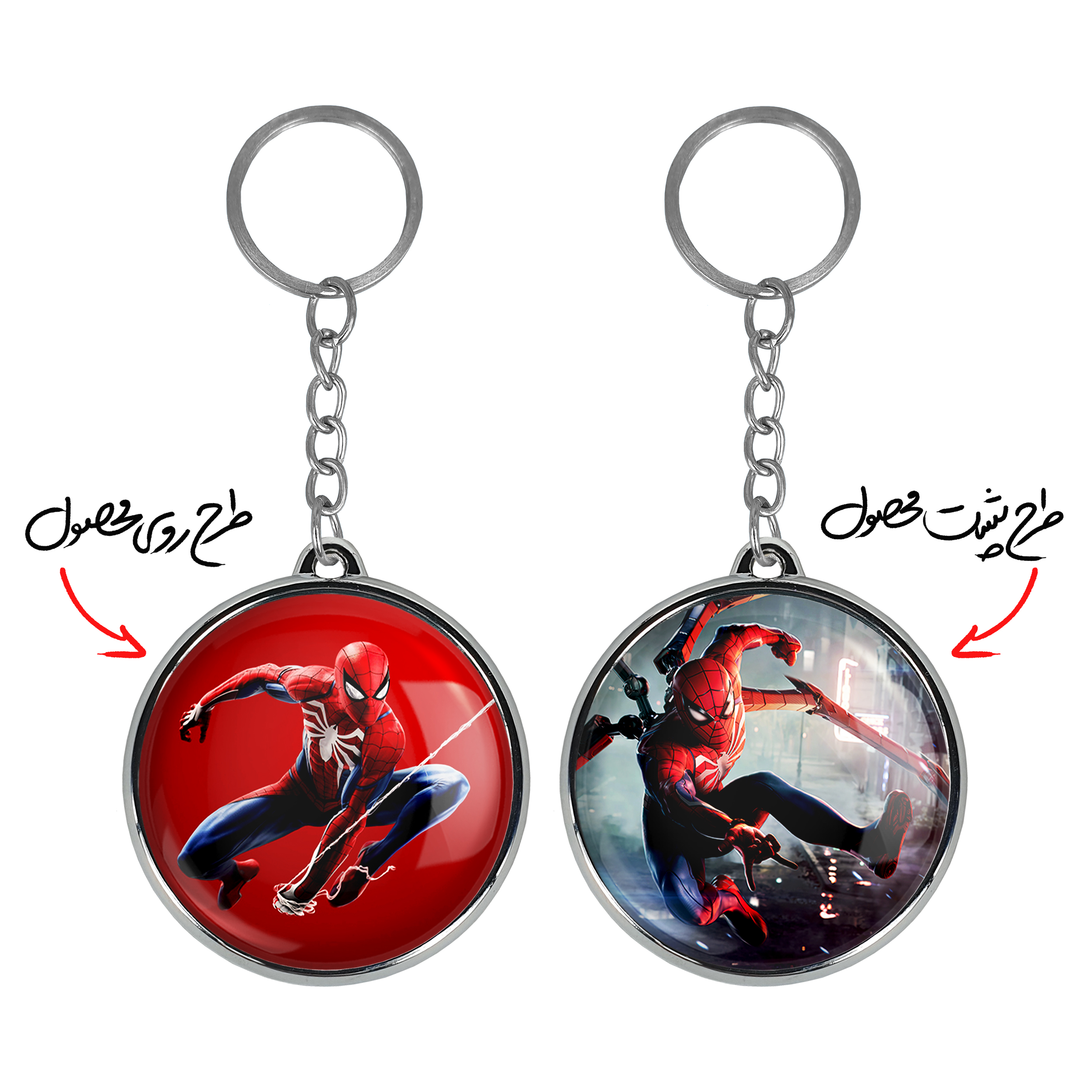 جاکلیدی دوطرفه مایلز مورالز مردعنکبوتیخندالو محصولی کاربردی و جدید است که در هر دو سمت محصول، تصویری متفاوت اما از یک موضوع چاپ شده و تفاوت اصلی آن با جاکلیدی های یک طرفه در همین است که هر دو سمت پشت و روی جاکلیدی، طرحی دیدنی و جذاب دارد.