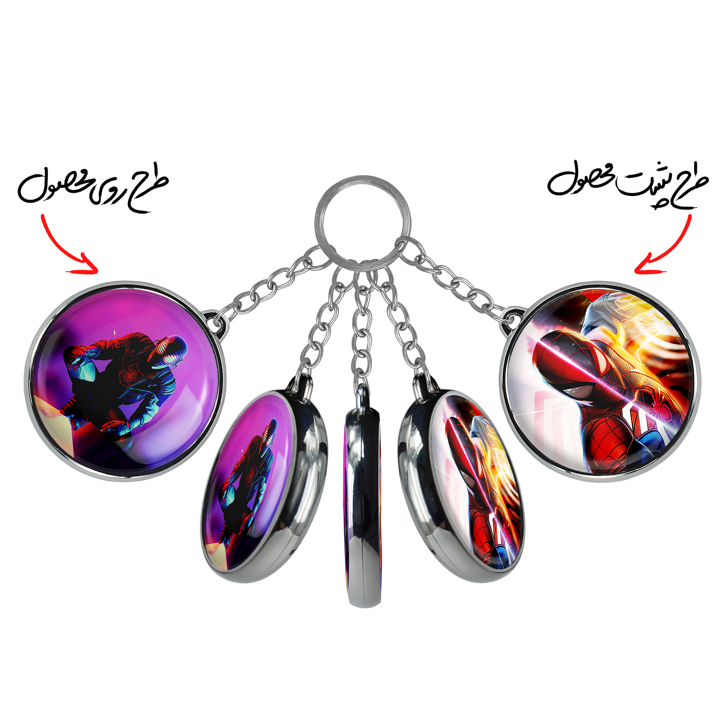 جاکلیدی دوطرفه مایلز مورالز مردعنکبوتیخندالو محصولی کاربردی و جدید است که در هر دو سمت محصول، تصویری متفاوت اما از یک موضوع چاپ شده و تفاوت اصلی آن با جاکلیدی های یک طرفه در همین است که هر دو سمت پشت و روی جاکلیدی، طرحی دیدنی و جذاب دارد.