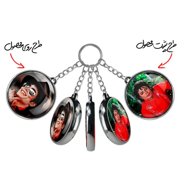 جاکلیدی دوطرفه مایکل جکسون Michael Jackson خندالو محصولی کاربردی و جدید است که در هر دو سمت محصول، تصویری متفاوت اما از یک موضوع چاپ شده و تفاوت اصلی آن با جاکلیدی های یک طرفه در همین است که هر دو سمت پشت و روی جاکلیدی، طرحی دیدنی و جذاب دارد.