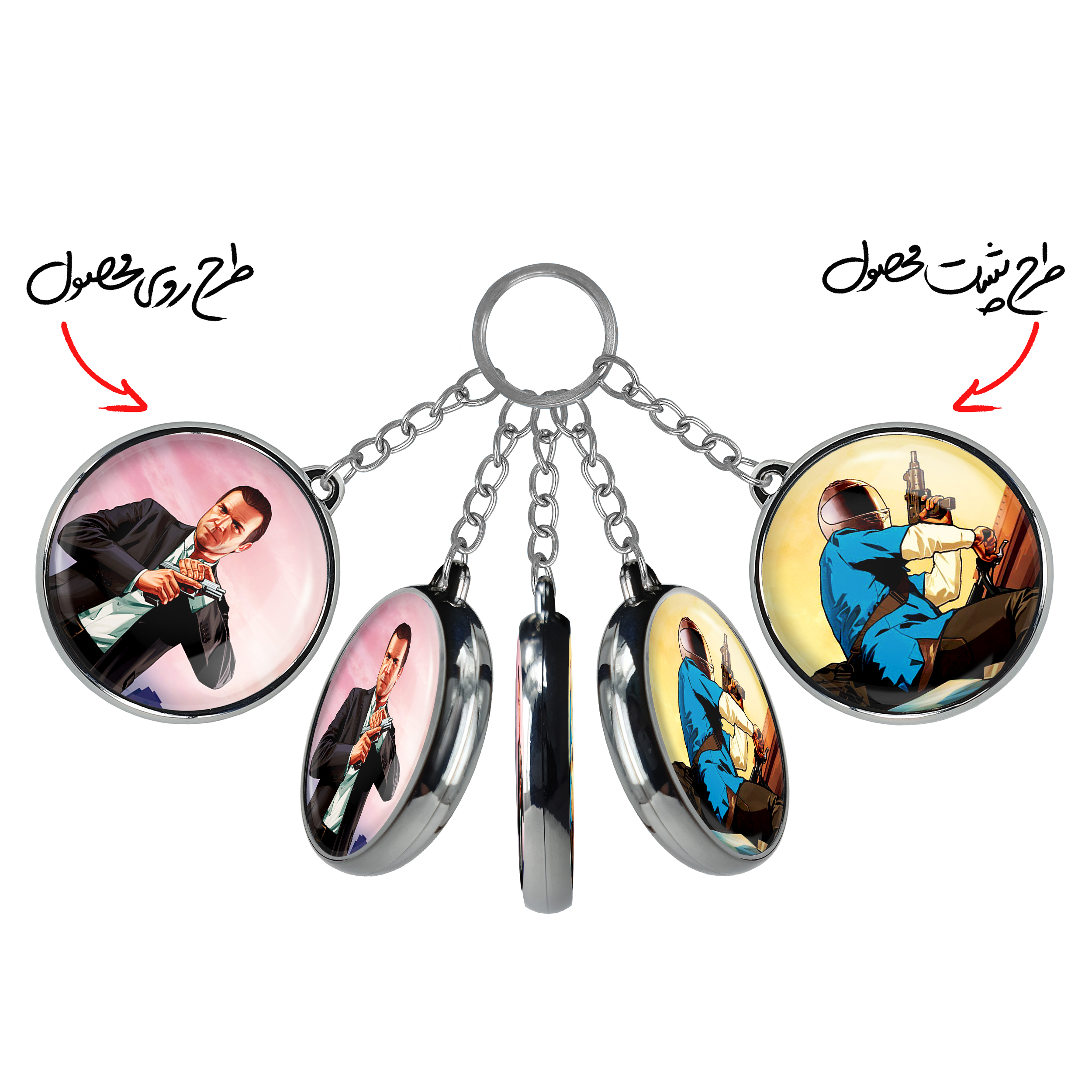 جاکلیدی دوطرفه مایکل جی تی ای GTAخندالو محصولی کاربردی و جدید است که در هر دو سمت محصول، تصویری متفاوت اما از یک موضوع چاپ شده و تفاوت اصلی آن با جاکلیدی های یک طرفه در همین است که هر دو سمت پشت و روی جاکلیدی، طرحی دیدنی و جذاب دارد.