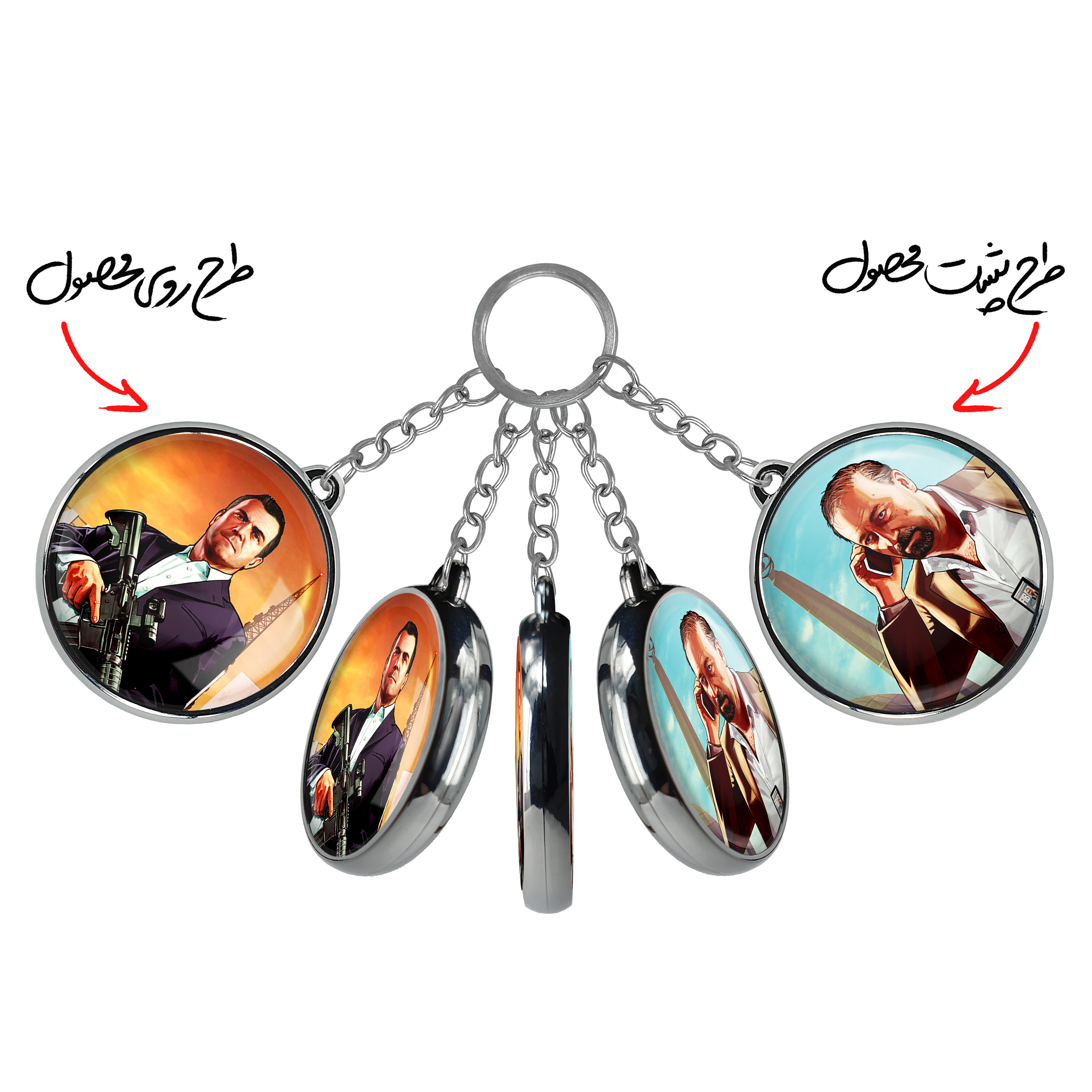 جاکلیدی دوطرفه مایکل جی تی ای GTAخندالو محصولی کاربردی و جدید است که در هر دو سمت محصول، تصویری متفاوت اما از یک موضوع چاپ شده و تفاوت اصلی آن با جاکلیدی های یک طرفه در همین است که هر دو سمت پشت و روی جاکلیدی، طرحی دیدنی و جذاب دارد.