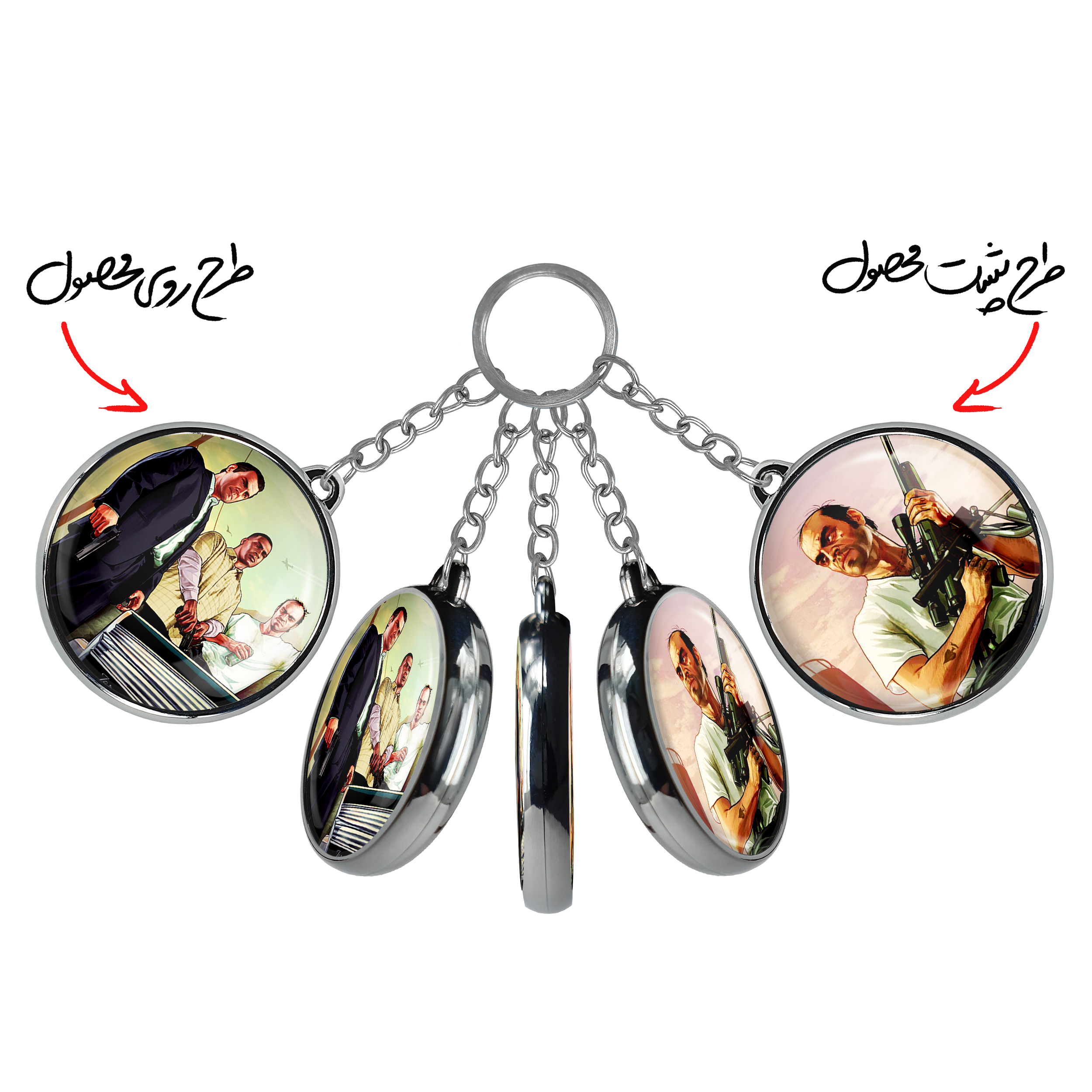 جاکلیدی دوطرفه مایکل و ترور فرانکلین جی تی ای GTAخندالو محصولی کاربردی و جدید است که در هر دو سمت محصول، تصویری متفاوت اما از یک موضوع چاپ شده و تفاوت اصلی آن با جاکلیدی های یک طرفه در همین است که هر دو سمت پشت و روی جاکلیدی، طرحی دیدنی و جذاب دارد. همچنین رینگ بکار برده شده برای دور طرح ها آبکاری کروم درجه یک و رنگ ثابت است و برخلاف سایر محصولات مشابه، از رنگ های متفرقه و یا سفید استفاده نشده، که این مهم، زیبایی محصول نهایی را چند برابر کرده است. جاکلیدی های دوطرفه مایکل و ترور فرانکلین جی تی ای GTAبا استفاده از روکش سلفون براق ضدخش تولید شده که خاصیت ضدخش بودن آن عمر مفید استفاده از جاکلیدی ها را افزایش میدهد. چاپ جاکلیدی ها با دستگاه های استاندارد و با بهترین سطح کیفیت صورت گرفته و طرح با شفافیتی مثال زدنی و با سلفون چسبی تولید شده است که باعث شده محصول نهایی بدون شکست نور دیده شود. همچنین بسته بندی جذاب و مینیمال جاکلیدی دوطرفه مایکل و ترور فرانکلین جی تی ای GTA، آنها را محصولی مناسب هدیه کرده است. زنجیر و حلقه بکار برده شده در جاکلیدی خندالو از نوع حلقه ضخیم و محکم بوده و حین استفاده آسیب نمی بیند.