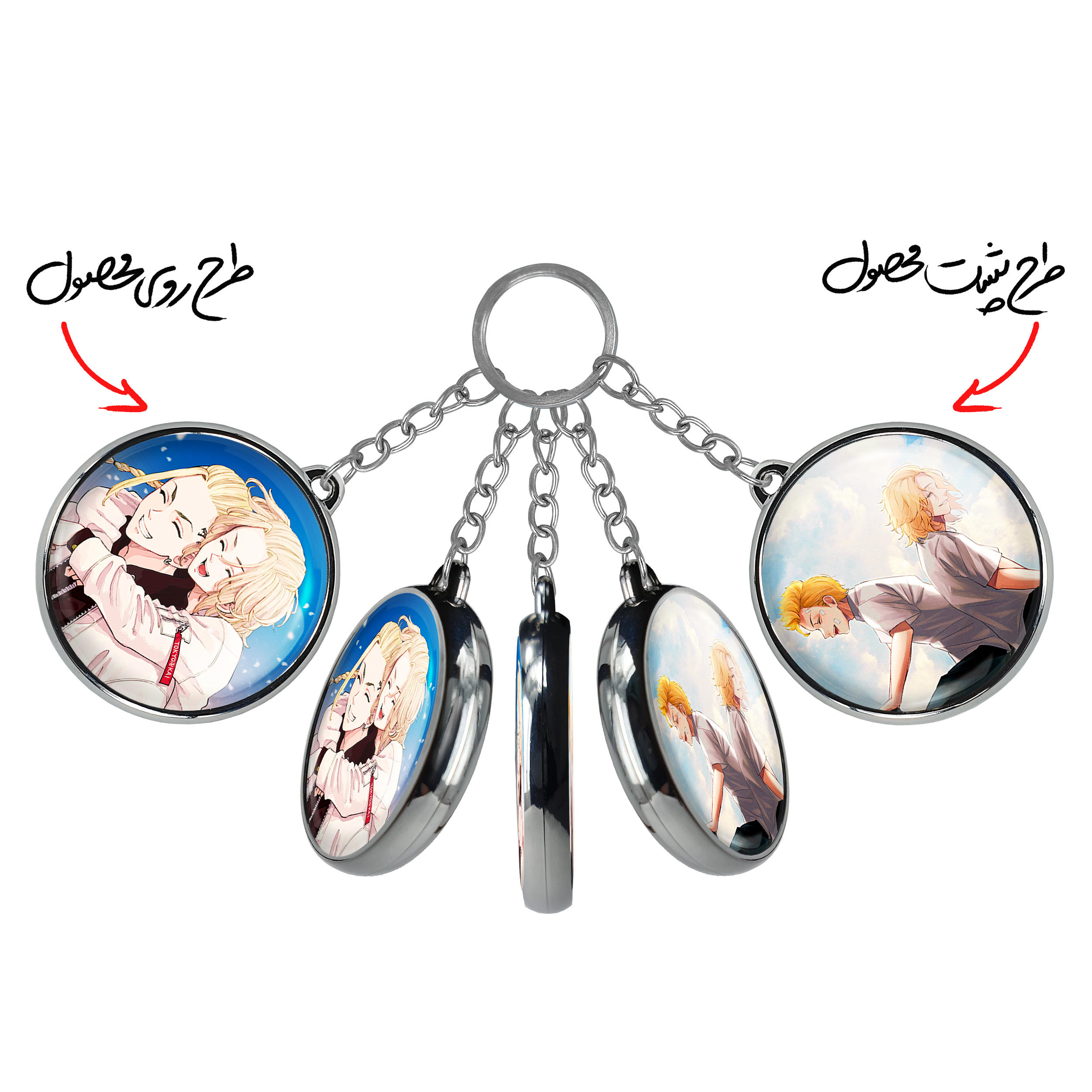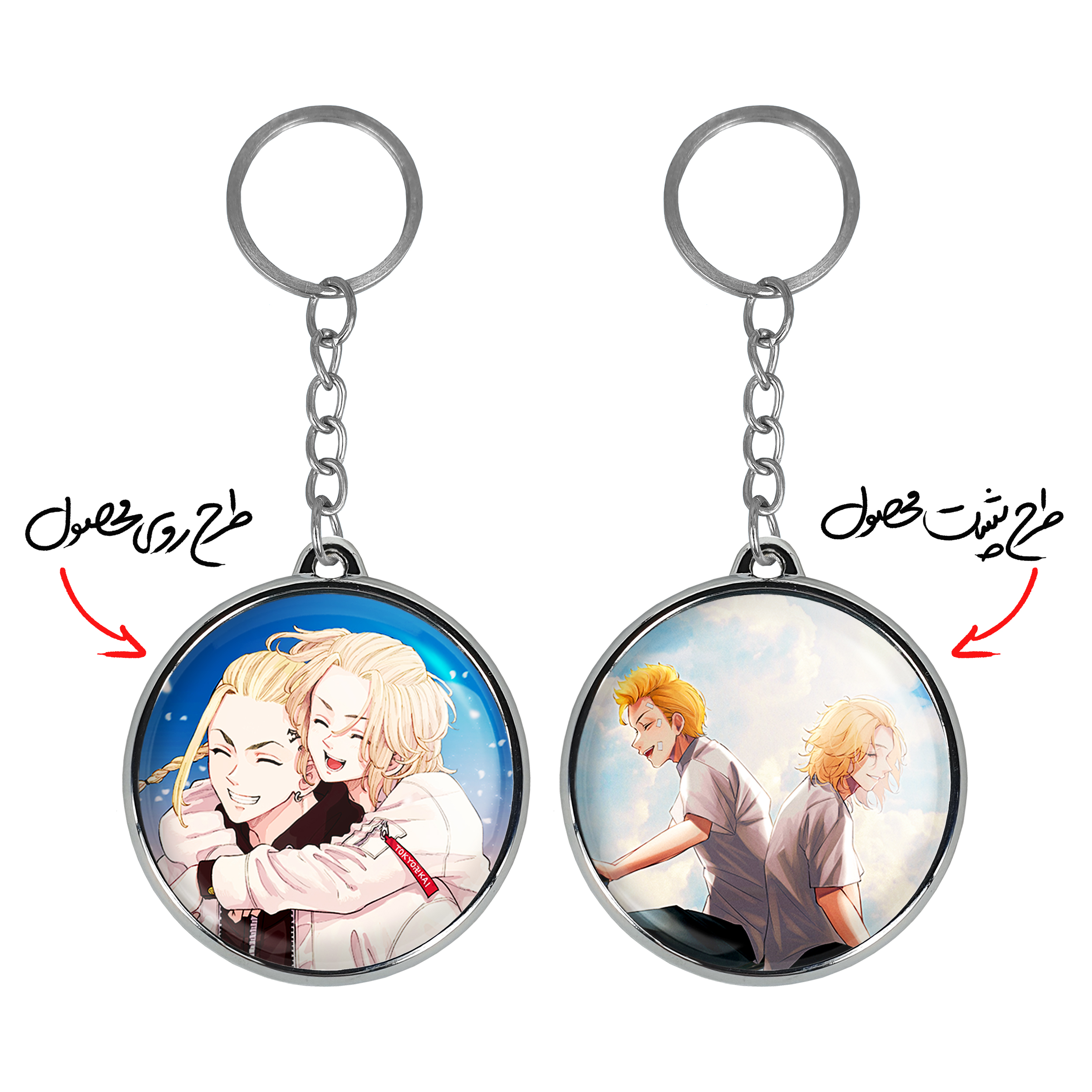 جاکلیدی دوطرفه مایکی و دراکن انیمه توکیو ریونجرز خندالو محصولی کاربردی و جدید است که در هر دو سمت محصول، تصویری متفاوت اما از یک موضوع چاپ شده و تفاوت اصلی آن با جاکلیدی های یک طرفه در همین است که هر دو سمت پشت و روی جاکلیدی، طرحی دیدنی و جذاب دارد. همچنین رینگ بکار برده شده برای دور طرح ها آبکاری کروم درجه یک و رنگ ثابت است و برخلاف سایر محصولات مشابه، از رنگ های متفرقه و یا سفید استفاده نشده، که این مهم، زیبایی محصول نهایی را چند برابر کرده است. جاکلیدی های دوطرفه مایکی و دراکن انیمه توکیو ریونجرز با استفاده از روکش سلفون براق ضدخش تولید شده که خاصیت ضدخش بودن آن عمر مفید استفاده از جاکلیدی ها را افزایش میدهد. چاپ جاکلیدی ها با دستگاه های استاندارد و با بهترین سطح کیفیت صورت گرفته و طرح با شفافیتی مثال زدنی و با سلفون چسبی تولید شده است که باعث شده محصول نهایی بدون شکست نور دیده شود. همچنین بسته بندی جذاب و مینیمال جاکلیدی دوطرفه مایکی و دراکن انیمه توکیو ریونجرز ، آنها را محصولی مناسب هدیه کرده است. زنجیر و حلقه بکار برده شده در جاکلیدی خندالو از نوع حلقه ضخیم و محکم بوده و حین استفاده آسیب نمی بیند.