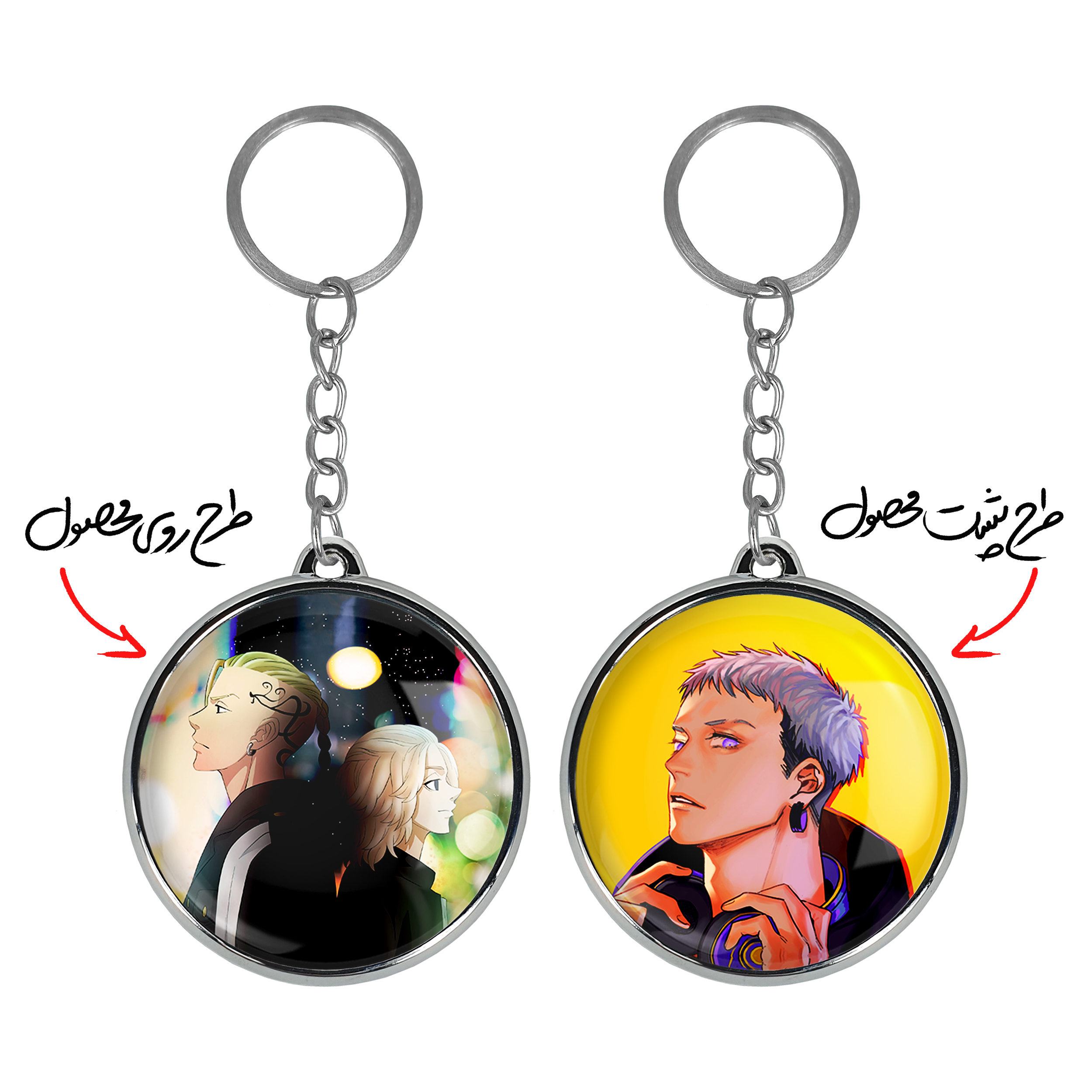 جاکلیدی دوطرفه مایکی و دراکن انیمه توکیو ریونجرز خندالو محصولی کاربردی و جدید است که در هر دو سمت محصول، تصویری متفاوت اما از یک موضوع چاپ شده و تفاوت اصلی آن با جاکلیدی های یک طرفه در همین است که هر دو سمت پشت و روی جاکلیدی، طرحی دیدنی و جذاب دارد. همچنین رینگ بکار برده شده برای دور طرح ها آبکاری کروم درجه یک و رنگ ثابت است و برخلاف سایر محصولات مشابه، از رنگ های متفرقه و یا سفید استفاده نشده، که این مهم، زیبایی محصول نهایی را چند برابر کرده است. جاکلیدی های دوطرفه مایکی و دراکن انیمه توکیو ریونجرز با استفاده از روکش سلفون براق ضدخش تولید شده که خاصیت ضدخش بودن آن عمر مفید استفاده از جاکلیدی ها را افزایش میدهد. چاپ جاکلیدی ها با دستگاه های استاندارد و با بهترین سطح کیفیت صورت گرفته و طرح با شفافیتی مثال زدنی و با سلفون چسبی تولید شده است که باعث شده محصول نهایی بدون شکست نور دیده شود. همچنین بسته بندی جذاب و مینیمال جاکلیدی دوطرفه مایکی و دراکن انیمه توکیو ریونجرز ، آنها را محصولی مناسب هدیه کرده است. زنجیر و حلقه بکار برده شده در جاکلیدی خندالو از نوع حلقه ضخیم و محکم بوده و حین استفاده آسیب نمی بیند.
