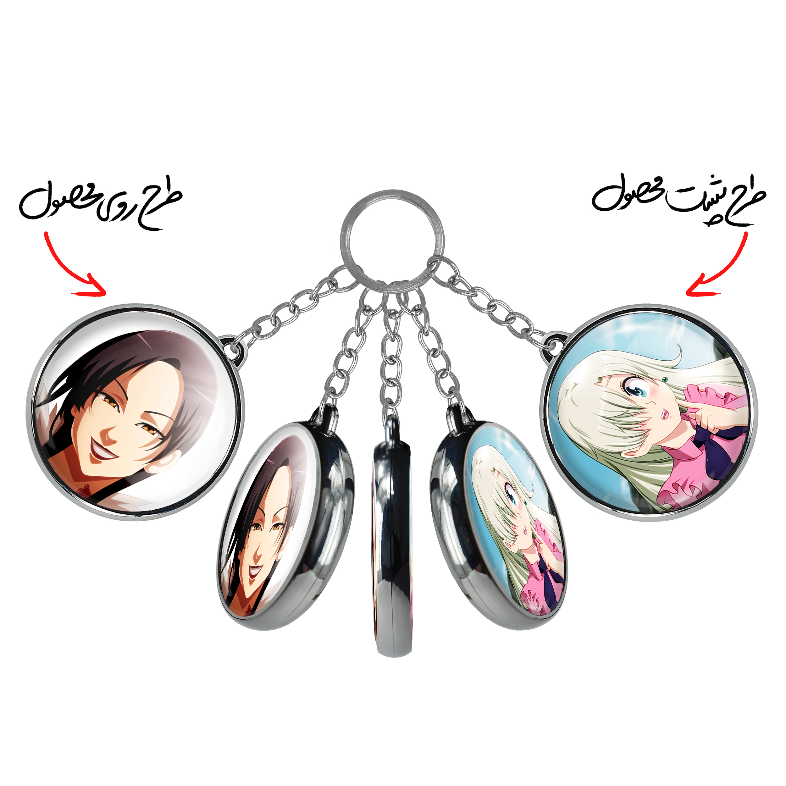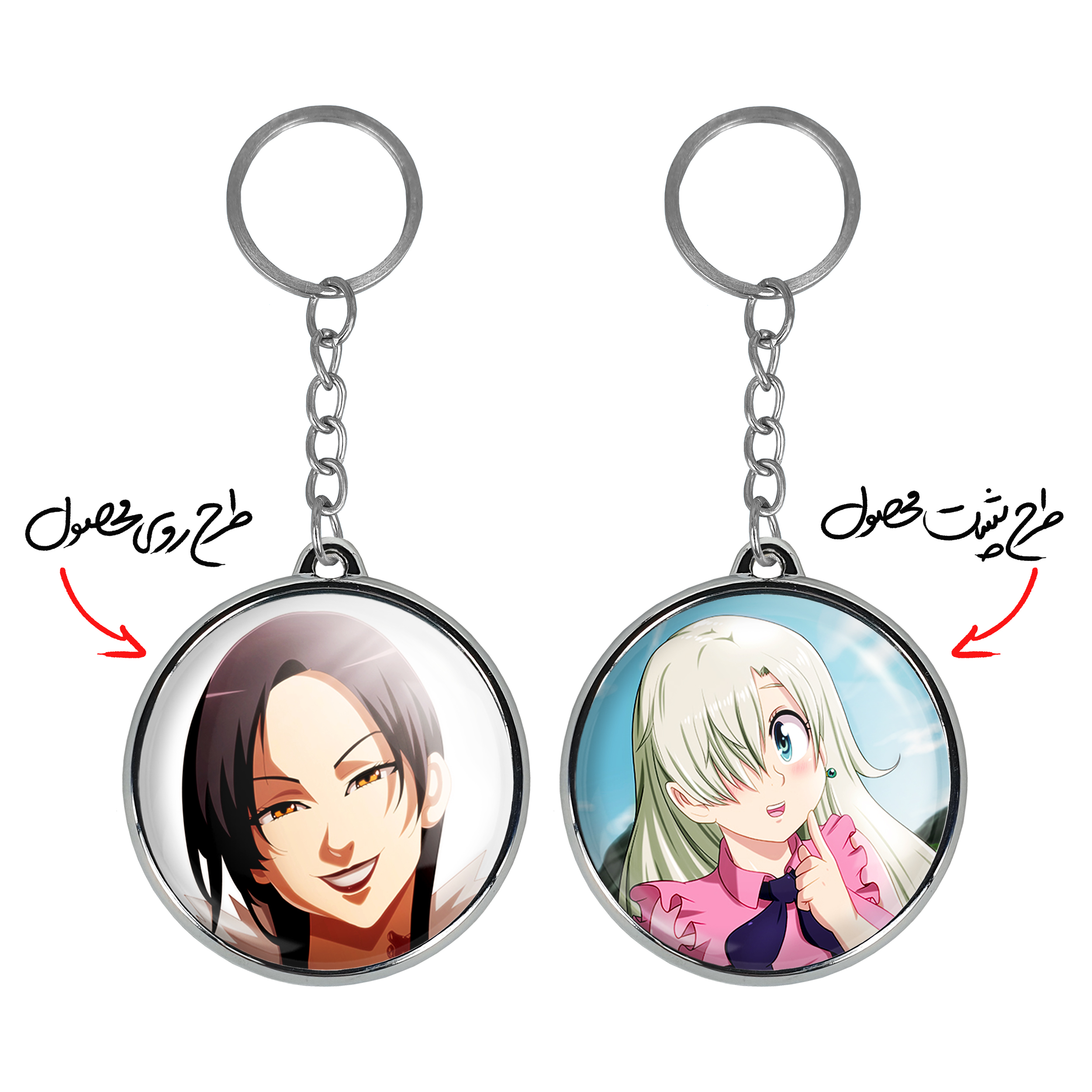 جاکلیدی دوطرفه مرلین انیمه هفت گناه کبیره خندالو محصولی کاربردی و جدید است که در هر دو سمت محصول، تصویری متفاوت اما از یک موضوع چاپ شده و تفاوت اصلی آن با جاکلیدی های یک طرفه در همین است که هر دو سمت پشت و روی جاکلیدی، طرحی دیدنی و جذاب دارد. همچنین رینگ بکار برده شده برای دور طرح ها آبکاری کروم درجه یک و رنگ ثابت است و برخلاف سایر محصولات مشابه، از رنگ های متفرقه و یا سفید استفاده نشده، که این مهم، زیبایی محصول نهایی را چند برابر کرده است. جاکلیدی های دوطرفه مرلین انیمه هفت گناه کبیره با استفاده از روکش سلفون براق ضدخش تولید شده که خاصیت ضدخش بودن آن عمر مفید استفاده از جاکلیدی ها را افزایش میدهد. چاپ جاکلیدی ها با دستگاه های استاندارد و با بهترین سطح کیفیت صورت گرفته و طرح با شفافیتی مثال زدنی و با سلفون چسبی تولید شده است که باعث شده محصول نهایی بدون شکست نور دیده شود. همچنین بسته بندی جذاب و مینیمال جاکلیدی دوطرفه مرلین انیمه هفت گناه کبیره ، آنها را محصولی مناسب هدیه کرده است. زنجیر و حلقه بکار برده شده در جاکلیدی خندالو از نوع حلقه ضخیم و محکم بوده و حین استفاده آسیب نمی بیند.