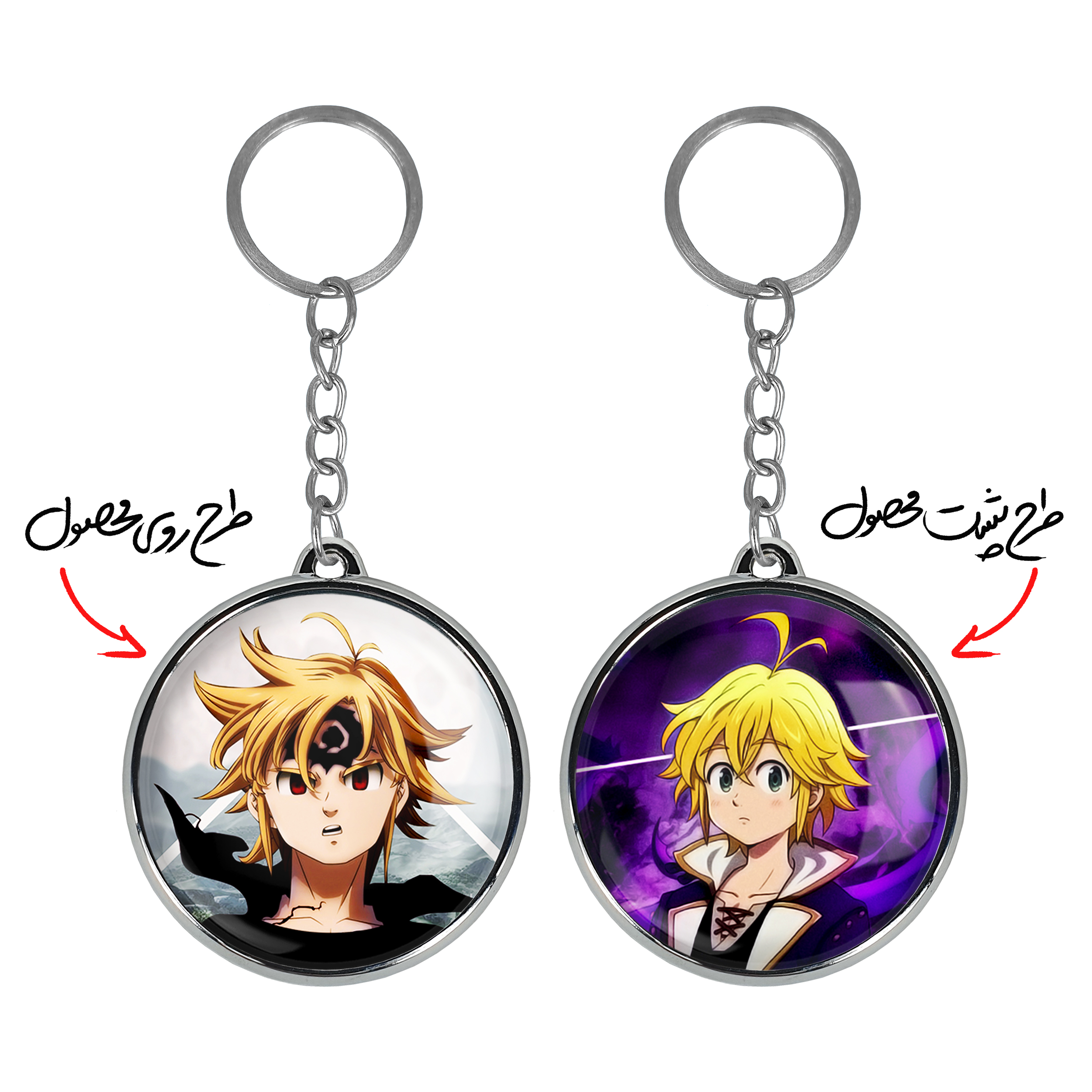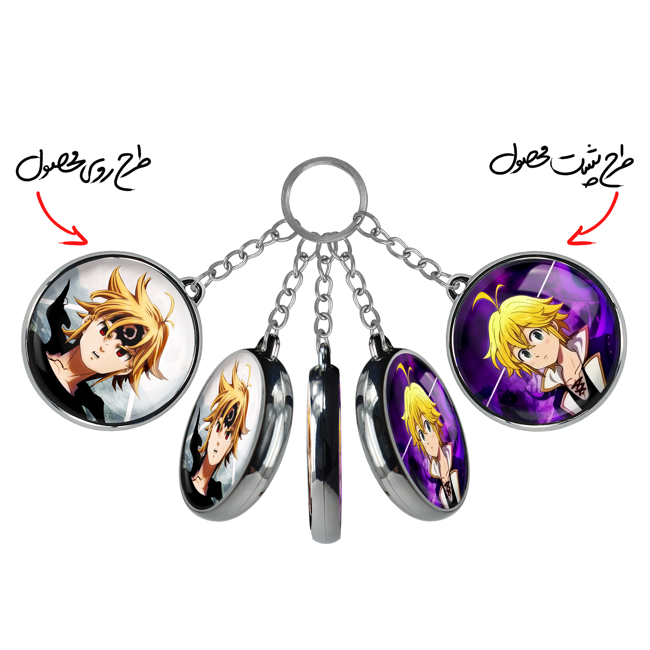 جاکلیدی دوطرفه ملیوداس انیمه هفت گناه کبیره خندالو محصولی کاربردی و جدید است که در هر دو سمت محصول، تصویری متفاوت اما از یک موضوع چاپ شده و تفاوت اصلی آن با جاکلیدی های یک طرفه در همین است که هر دو سمت پشت و روی جاکلیدی، طرحی دیدنی و جذاب دارد. همچنین رینگ بکار برده شده برای دور طرح ها آبکاری کروم درجه یک و رنگ ثابت است و برخلاف سایر محصولات مشابه، از رنگ های متفرقه و یا سفید استفاده نشده، که این مهم، زیبایی محصول نهایی را چند برابر کرده است. جاکلیدی های دوطرفه ملیوداس انیمه هفت گناه کبیره با استفاده از روکش سلفون براق ضدخش تولید شده که خاصیت ضدخش بودن آن عمر مفید استفاده از جاکلیدی ها را افزایش میدهد. چاپ جاکلیدی ها با دستگاه های استاندارد و با بهترین سطح کیفیت صورت گرفته و طرح با شفافیتی مثال زدنی و با سلفون چسبی تولید شده است که باعث شده محصول نهایی بدون شکست نور دیده شود. همچنین بسته بندی جذاب و مینیمال جاکلیدی دوطرفه ملیوداس انیمه هفت گناه کبیره ، آنها را محصولی مناسب هدیه کرده است. زنجیر و حلقه بکار برده شده در جاکلیدی خندالو از نوع حلقه ضخیم و محکم بوده و حین استفاده آسیب نمی بیند.