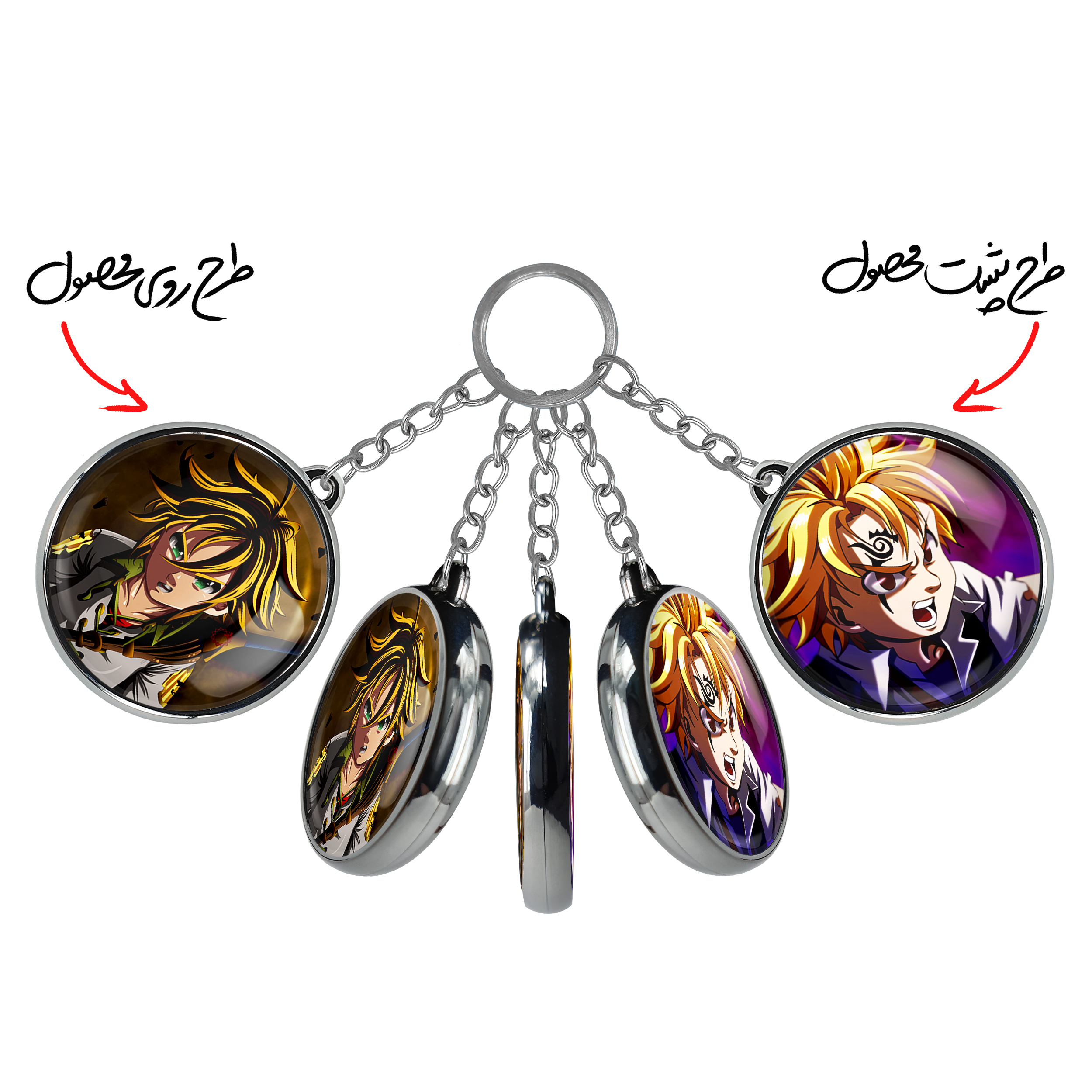 جاکلیدی دوطرفه ملیوداس انیمه هفت گناه کبیره خندالو محصولی کاربردی و جدید است که در هر دو سمت محصول، تصویری متفاوت اما از یک موضوع چاپ شده و تفاوت اصلی آن با جاکلیدی های یک طرفه در همین است که هر دو سمت پشت و روی جاکلیدی، طرحی دیدنی و جذاب دارد.