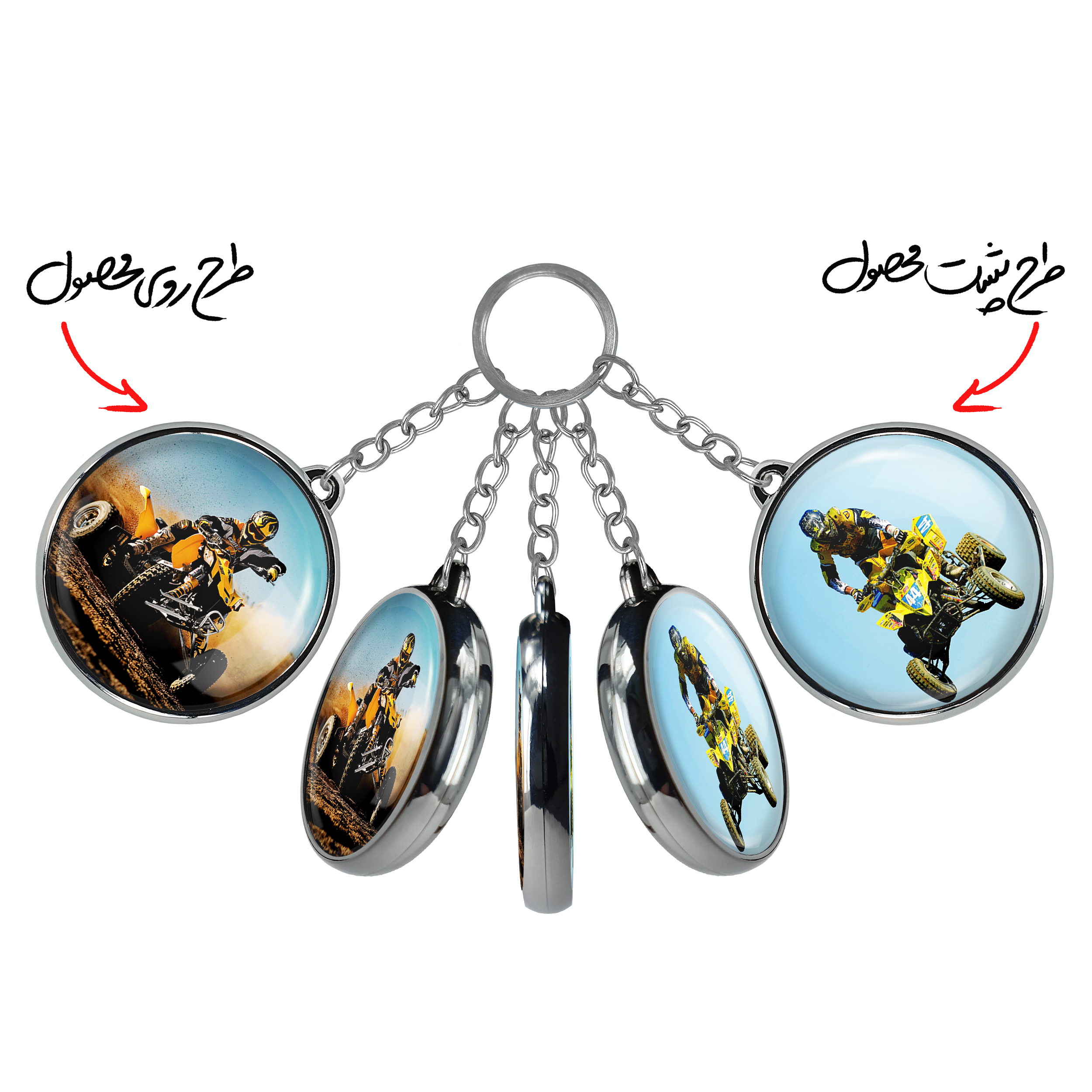 جاکلیدی دوطرفه موتور چهار چرخخندالو محصولی کاربردی و جدید است که در هر دو سمت محصول، تصویری متفاوت اما از یک موضوع چاپ شده و تفاوت اصلی آن با جاکلیدی های یک طرفه در همین است که هر دو سمت پشت و روی جاکلیدی، طرحی دیدنی و جذاب دارد.