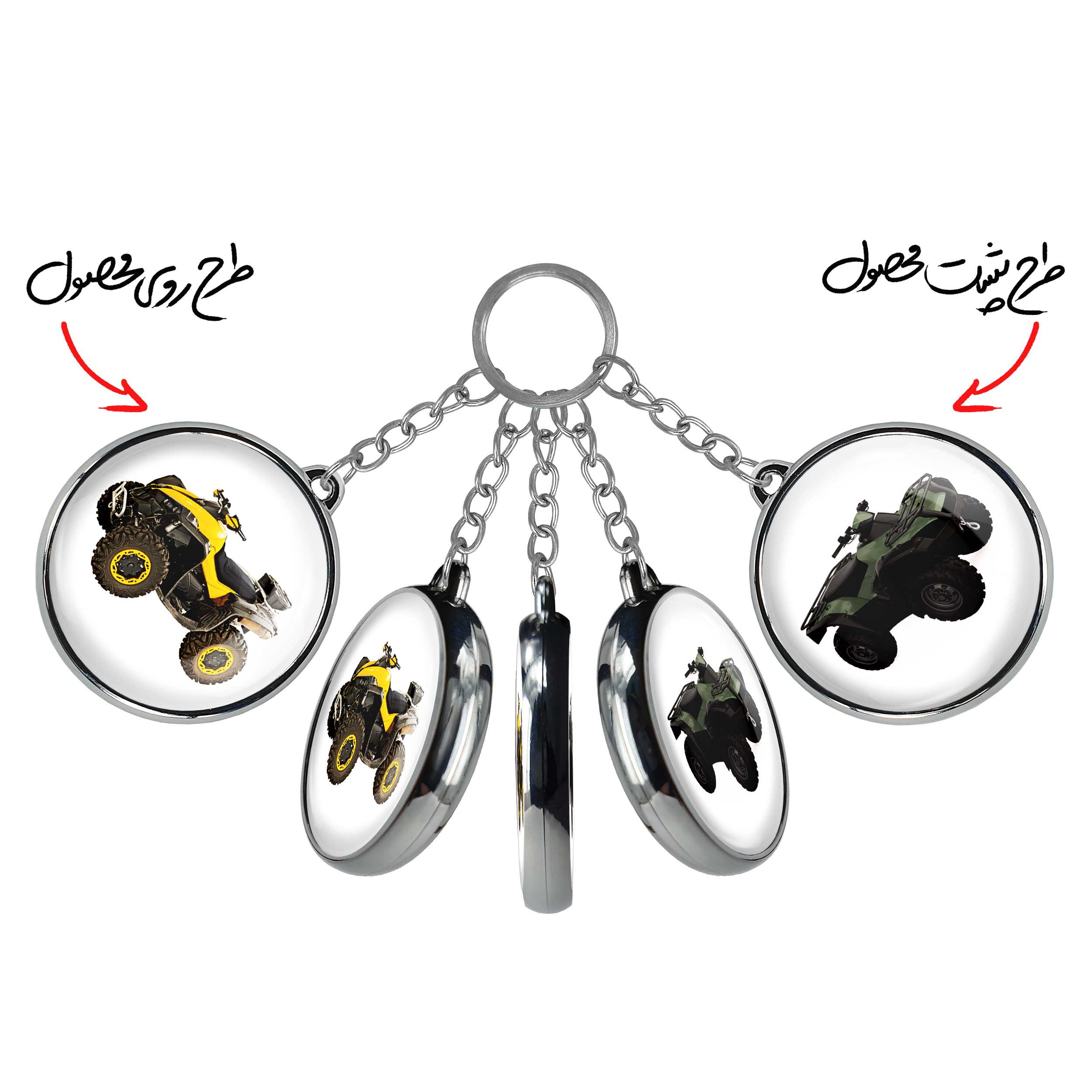 جاکلیدی دوطرفه موتور چهار چرخخندالو محصولی کاربردی و جدید است که در هر دو سمت محصول، تصویری متفاوت اما از یک موضوع چاپ شده و تفاوت اصلی آن با جاکلیدی های یک طرفه در همین است که هر دو سمت پشت و روی جاکلیدی، طرحی دیدنی و جذاب دارد.
