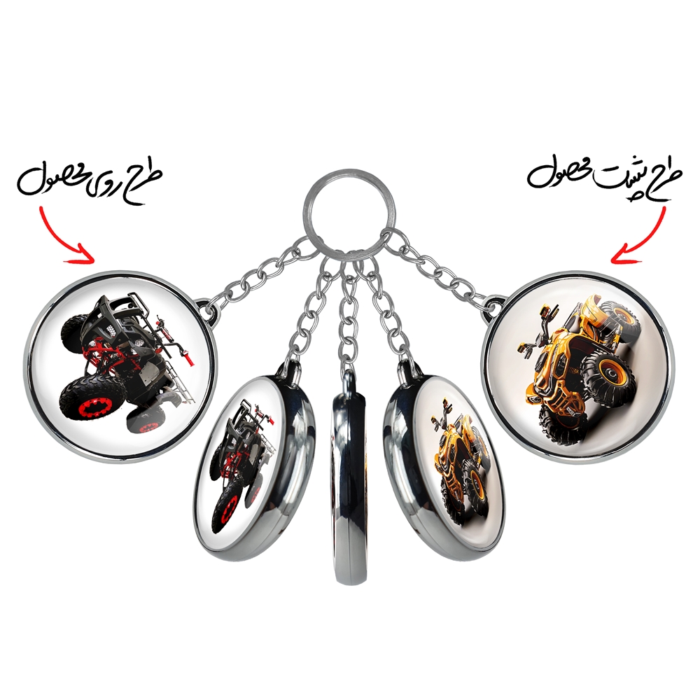 جاکلیدی دوطرفه موتور چهار چرخ خندالو محصولی کاربردی و جدید است که در هر دو سمت محصول، تصویری متفاوت اما از یک موضوع چاپ شده و تفاوت اصلی آن با جاکلیدی های یک طرفه در همین است که هر دو سمت پشت و روی جاکلیدی، طرحی دیدنی و جذاب دارد.