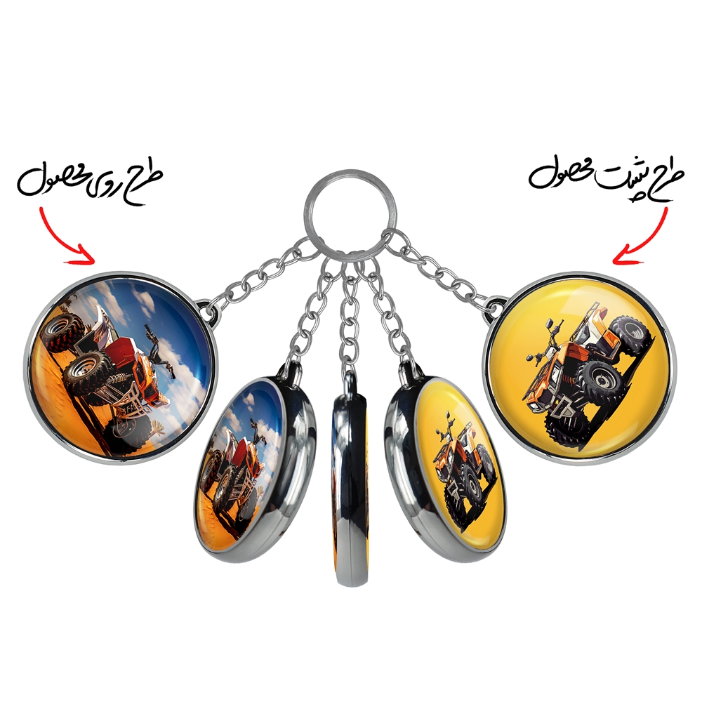 جاکلیدی دوطرفه موتور چهار چرخ خندالو محصولی کاربردی و جدید است که در هر دو سمت محصول، تصویری متفاوت اما از یک موضوع چاپ شده و تفاوت اصلی آن با جاکلیدی های یک طرفه در همین است که هر دو سمت پشت و روی جاکلیدی، طرحی دیدنی و جذاب دارد.