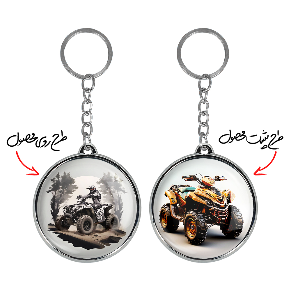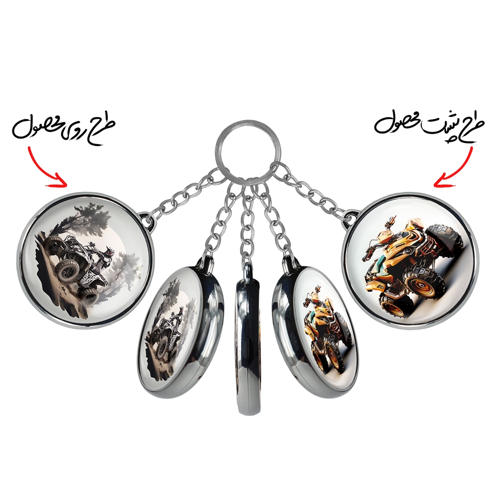 جاکلیدی دوطرفه موتور چهار چرخ خندالو محصولی کاربردی و جدید است که در هر دو سمت محصول، تصویری متفاوت اما از یک موضوع چاپ شده و تفاوت اصلی آن با جاکلیدی های یک طرفه در همین است که هر دو سمت پشت و روی جاکلیدی، طرحی دیدنی و جذاب دارد.