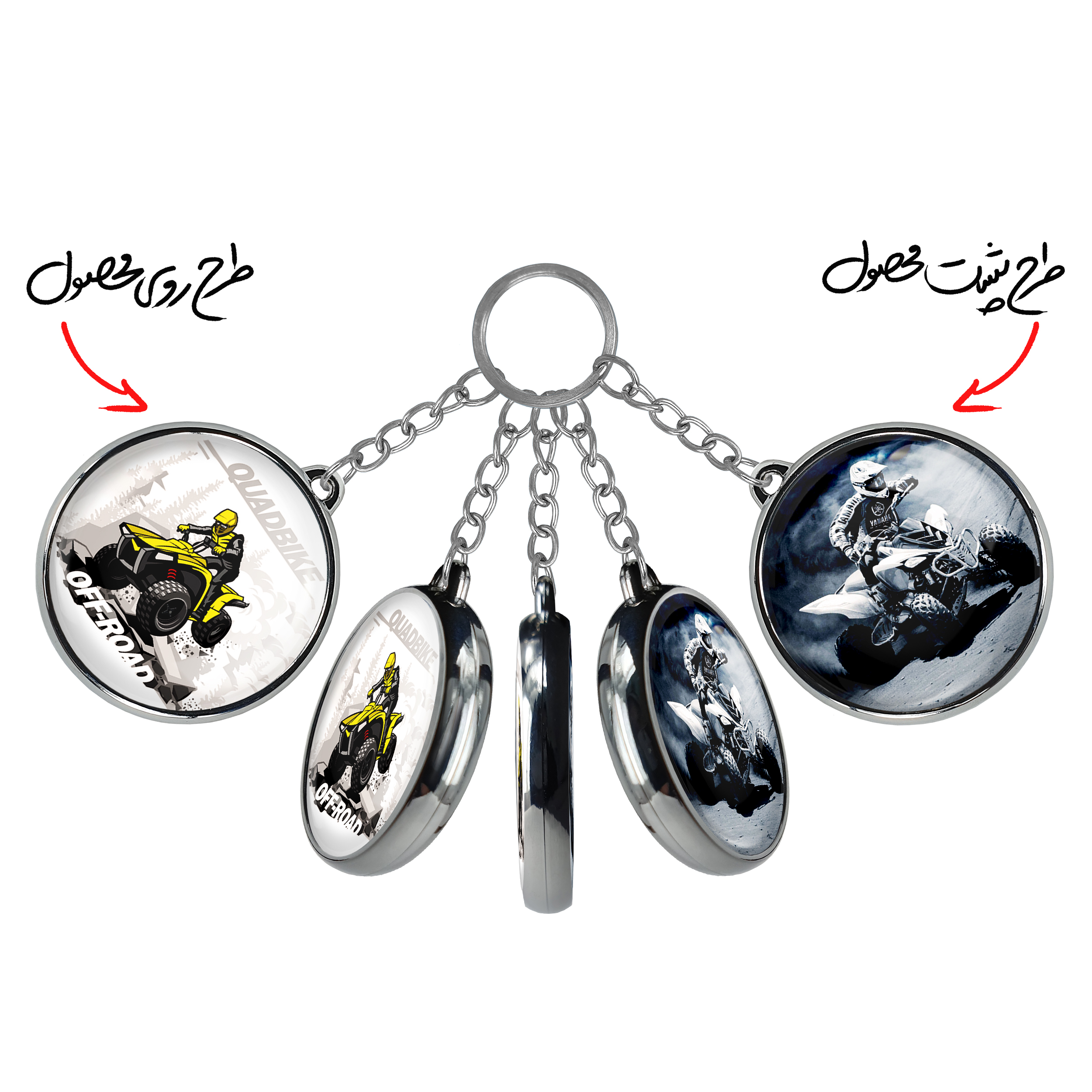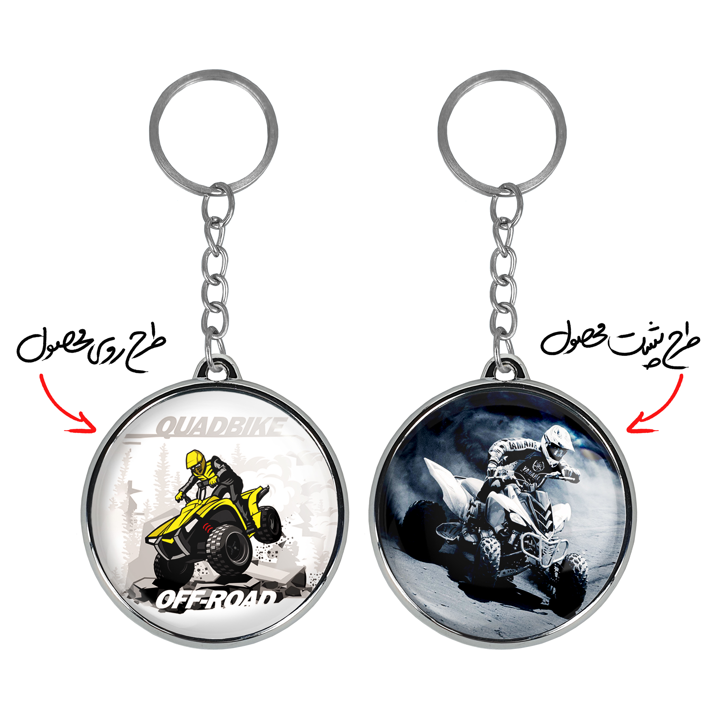 جاکلیدی دوطرفه موتور چهار چرخخندالو محصولی کاربردی و جدید است که در هر دو سمت محصول، تصویری متفاوت اما از یک موضوع چاپ شده و تفاوت اصلی آن با جاکلیدی های یک طرفه در همین است که هر دو سمت پشت و روی جاکلیدی، طرحی دیدنی و جذاب دارد.
