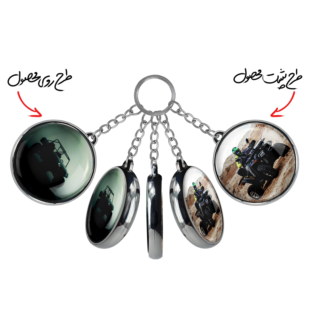 جاکلیدی دوطرفه موتور چهار چرخ خندالو محصولی کاربردی و جدید است که در هر دو سمت محصول، تصویری متفاوت اما از یک موضوع چاپ شده و تفاوت اصلی آن با جاکلیدی های یک طرفه در همین است که هر دو سمت پشت و روی جاکلیدی، طرحی دیدنی و جذاب دارد.
