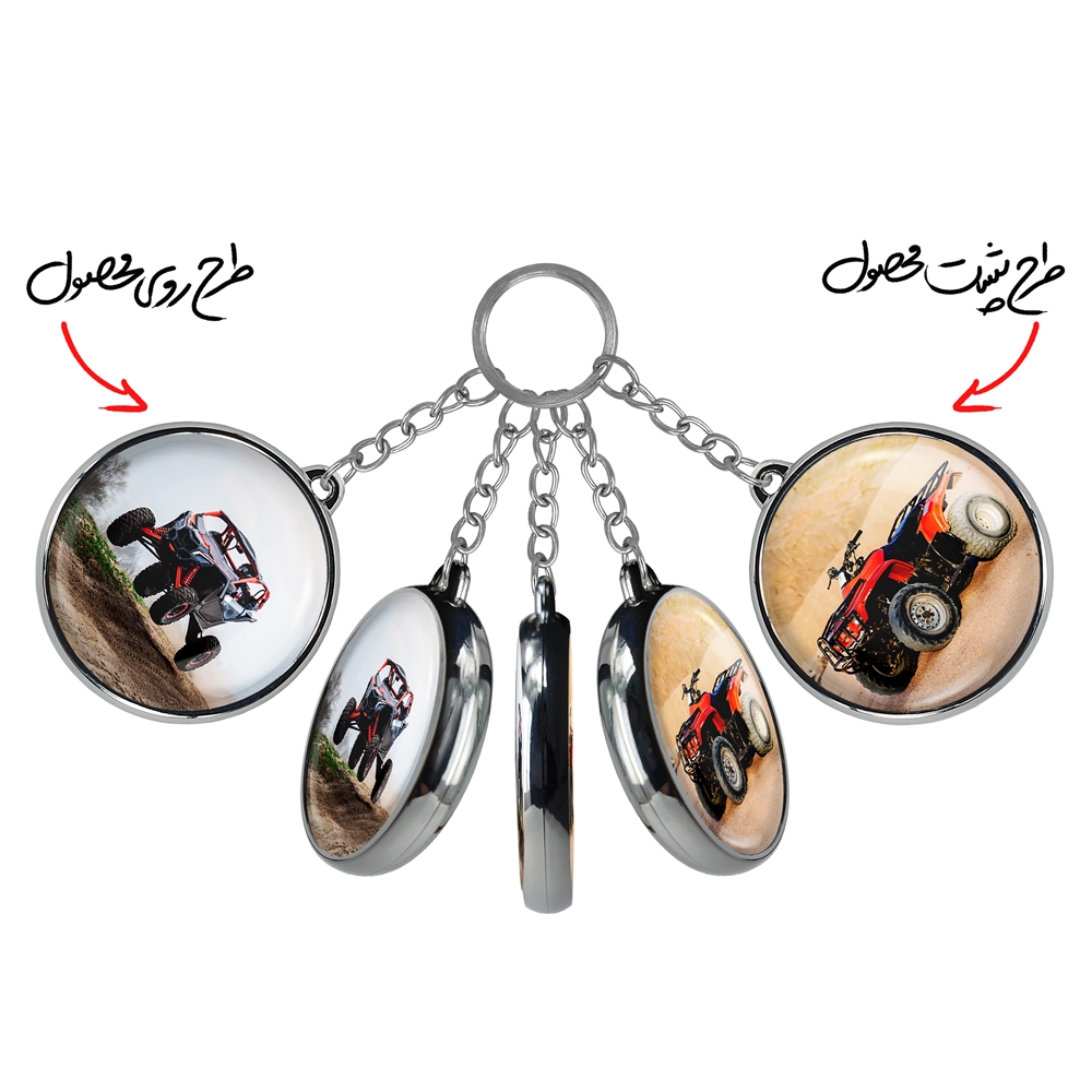 جاکلیدی دوطرفه موتور چهار چرخ خندالو محصولی کاربردی و جدید است که در هر دو سمت محصول، تصویری متفاوت اما از یک موضوع چاپ شده و تفاوت اصلی آن با جاکلیدی های یک طرفه در همین است که هر دو سمت پشت و روی جاکلیدی، طرحی دیدنی و جذاب دارد.