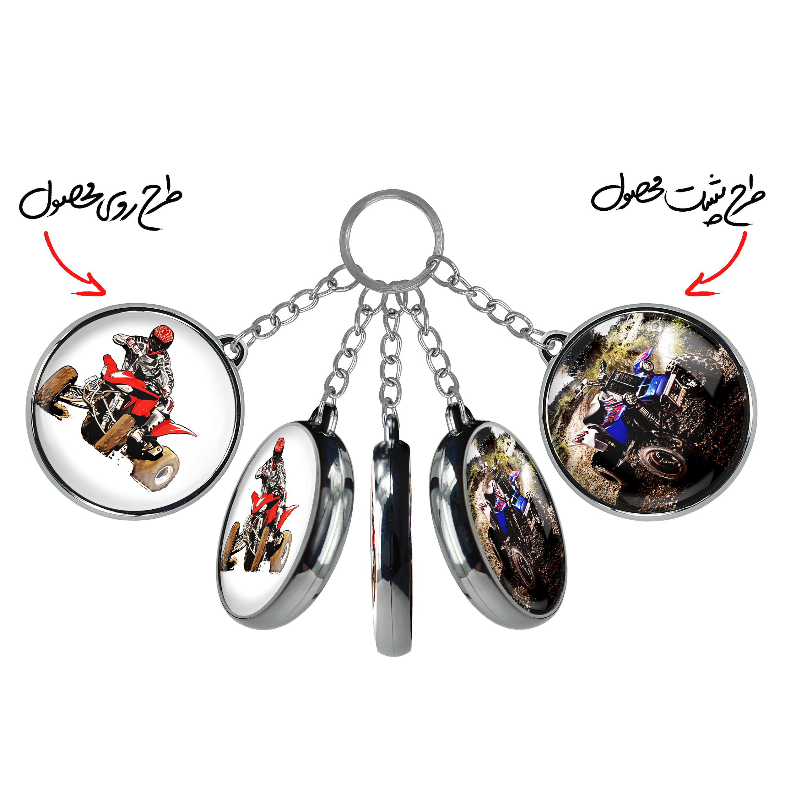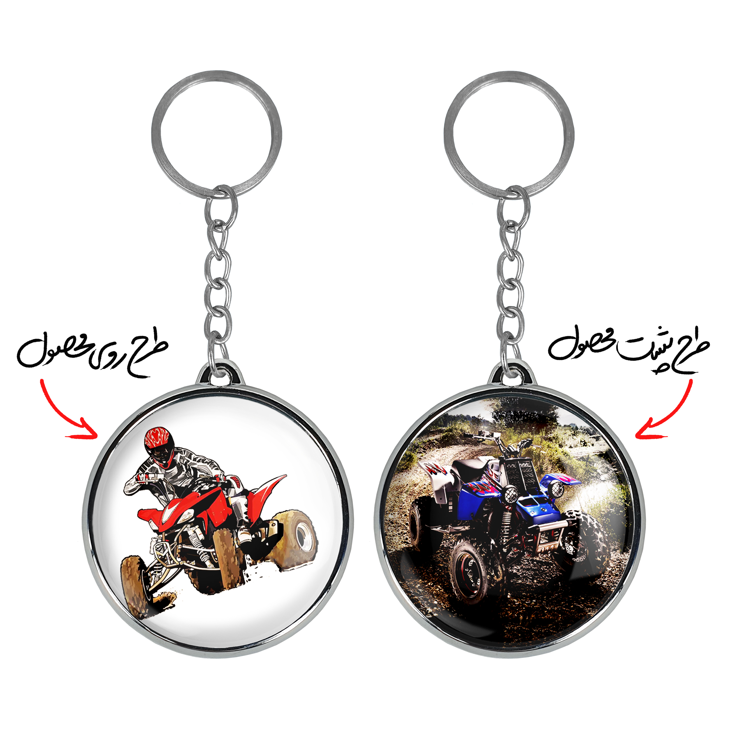 جاکلیدی دوطرفه موتور چهار چرخخندالو محصولی کاربردی و جدید است که در هر دو سمت محصول، تصویری متفاوت اما از یک موضوع چاپ شده و تفاوت اصلی آن با جاکلیدی های یک طرفه در همین است که هر دو سمت پشت و روی جاکلیدی، طرحی دیدنی و جذاب دارد.